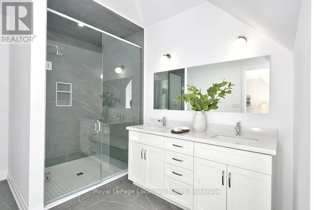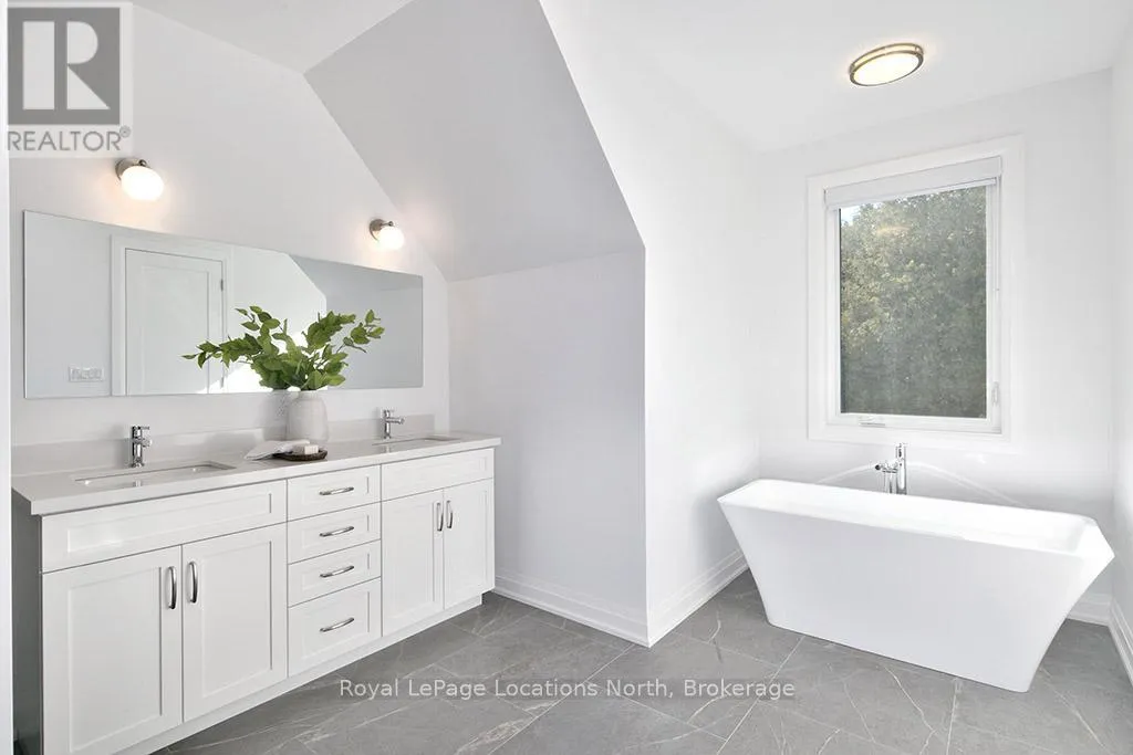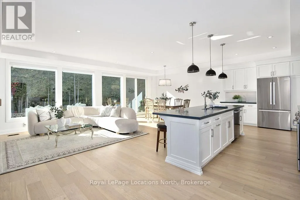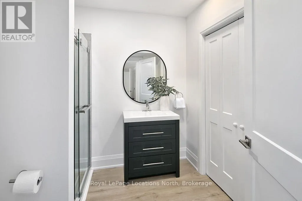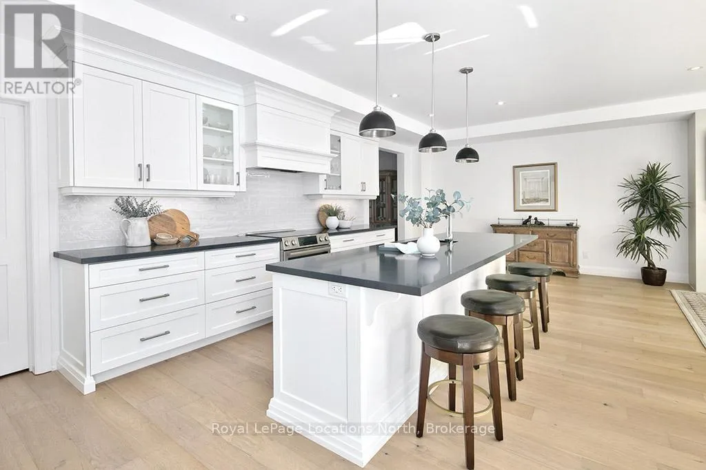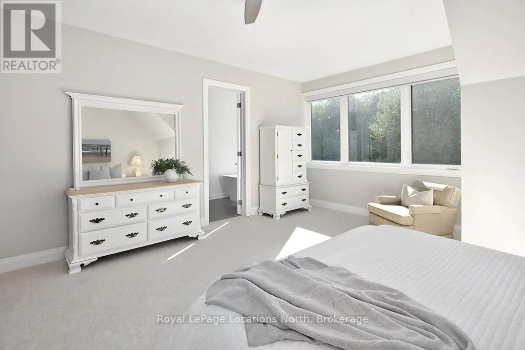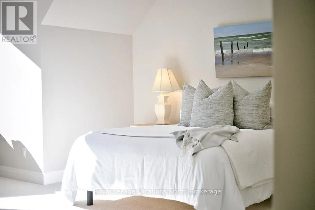 Off Hwy 26 Turn onto Lora Bay Drive, West Ridge Drive, Landry Lane, Property is on the Left. Beautifully finished end-unit townhome featuring 3+1 bedrooms and 3.5 bathrooms, combining luxury, comfort, and functionality in one of Thornbury's most desirable communities.Step inside to a bright, open-concept main level featuring large windows that frame views of mature trees, warm wood floors, and a modern gas fireplace that anchors the inviting living area. The chef-inspired kitchen has quartz countertops, a spacious island with seating, ample cabinetry, and a large walk-in pantry-perfect for everyday living and entertaining alike. The dining area opens to a private back patio, ideal for relaxing or dining al fresco. A 2pc bath and access to the oversized garage complete the main level.Upstairs, the spacious primary suite is a true retreat, featuring a walk-in closet and a spa-like 5pc ensuite with a freestanding tub, walk-in shower with niche and bench, and a double vanity. Two additional guest bedrooms, a 4pc guest bath, and convenient upper-level laundry offer comfort and convenience.The fully finished lower level expands your living space with a rec room, a bedroom or gym, and a 3pc bathroom-ideal for guests or a private workout zone.Nestled within the prestigious Lora Bay community, residents enjoy access to a championship golf course, 2 beaches, club amenities like a fitness room and restaurant and a lifestyle that embraces the outdoors-just minutes to skiing, boating, and downtown Thornbury's charming shops, restaurants, and cafés.Experience the luxury, comfort, and community of Lora Bay living-your next chapter begins here! (id:27476)