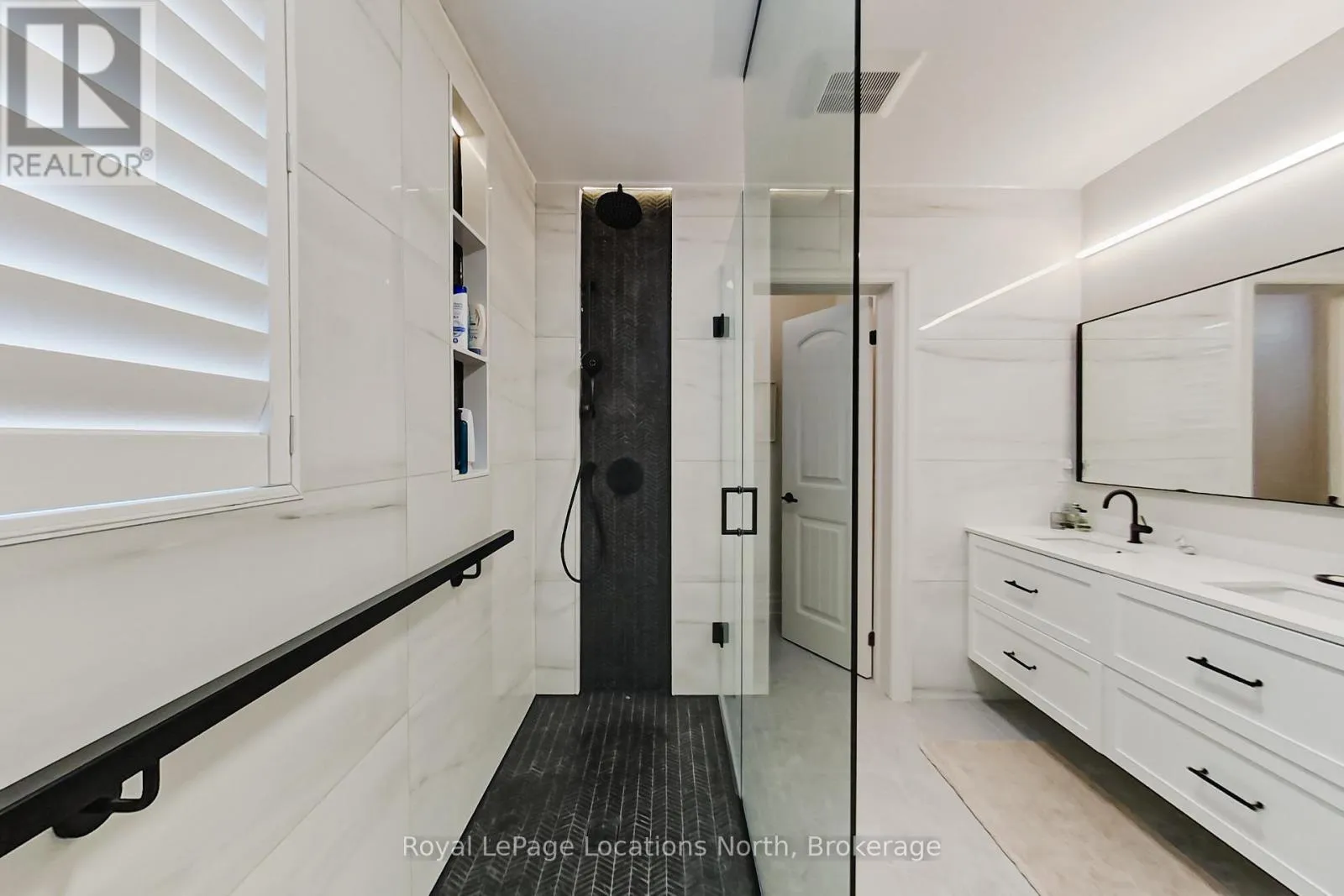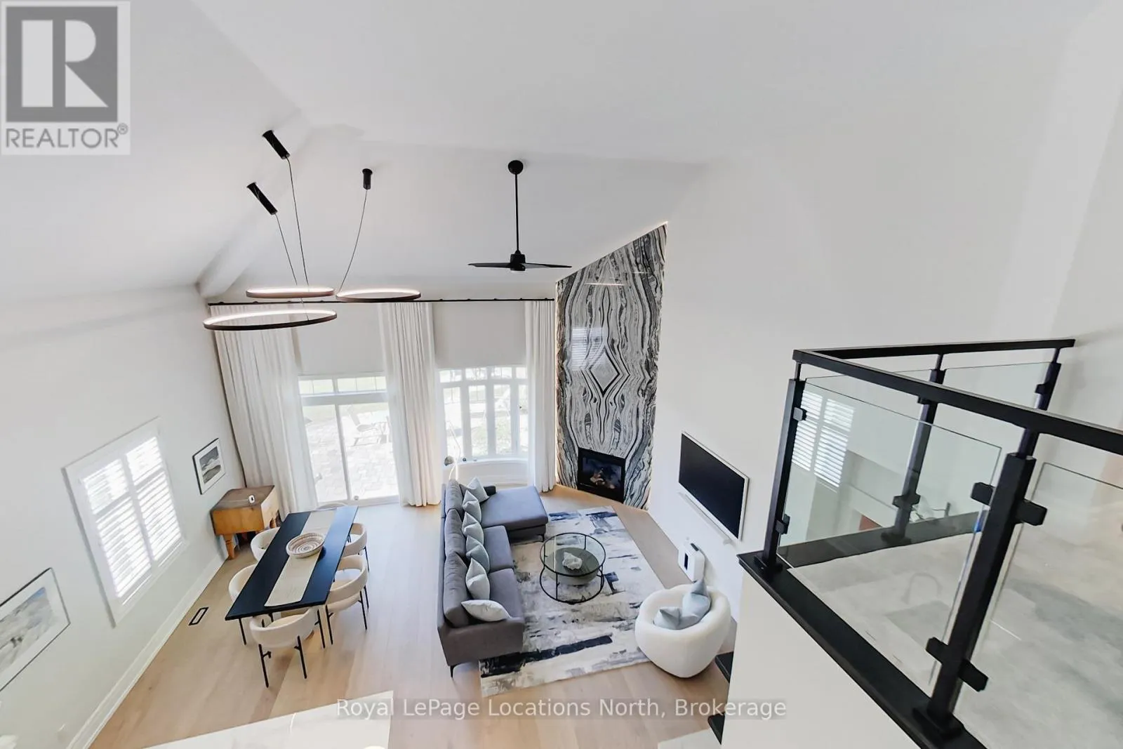 Cross Streets: Rankin's Cres between Stevens Crt and Hammond Crt. ** Directions: HWY 26 W to Lora Bay Dr to East Ridge Dr, then slight right to Rankin's Cres. Lora Bay - A stunning modern/contemporary home that backs onto the golf course. This one-and-a-half-story residence boasts an open-concept kitchen, living, and dining area, complete with elegant quartz countertops. The main floor features a spacious primary bedroom with a luxurious ensuite and a walk-in closet. Upstairs, you'll find a charming loft area, two additional bedrooms, and a well-appointed 4-piece bathroom. With a total of 4 bedrooms and 2.5 bathrooms, this home offers ample space for family and guests. Located only minutes from all the area's amenities, including golf, hiking, biking, skiing, restaurants, and much more. Additional Inclusion: Generac Generator. (id:27476)