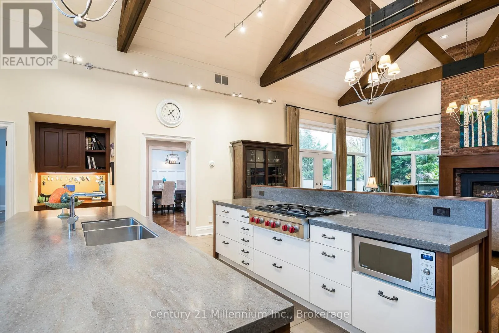 Grand Cypress Lane & Augusta Crescent Welcome to 160 Grand Cypress Lane, an extraordinary four-season retreat that is nestled in the heart of the Blue Mountains, this exquisite 4-bedroom, 5-bathroom residence offers over 4,900 sq. ft. of impeccably finished living space, designed to inspire relaxation and connection. From the moment you arrive, you'll sense the thoughtful craftsmanship and attention to detail that defines every inch of this home, from the vaulted ceilings and striking exposed beams to the sunlit great room that invites you to gather and unwind. The chef-inspired kitchen is the heart of the home, featuring high-end appliances, double islands, and a seamless flow that's ideal for both everyday living and elegant entertaining. Offering versatility and privacy, this property includes a separate loft-style apartment above the garage and a private wing for guests or extended family featuring 2 spacious bedrooms with private bathrooms and a charming loft with a storybook staircase leading up to a delightful little nook that is perfect for kids to read or enjoy their own secret hideaway. The serene primary suite is a sanctuary unto itself, with panoramic hilltop views. The professionally landscaped backyard was designed for year-round enjoyment. Lounge by the sparkling in-ground salt water pool, unwind in the hot tub, detox in the cedar barrel sauna, or sip cocktails at the Tiki bar while taking in the soothing sounds of the pond and waterfall. Every element of this property invites you to slow down,celebrate life, and make lasting memories. Set within one of the most coveted communities in the Blue Mountains, 160 Grand Cypress Lane offers the ultimate blend of tranquility and convenience steps from elite ski clubs, hiking and biking trails, award-winning golf, sandy beaches, and the charming Village at Blue, where dining, shops, and year-round entertainment await. (id:27476)