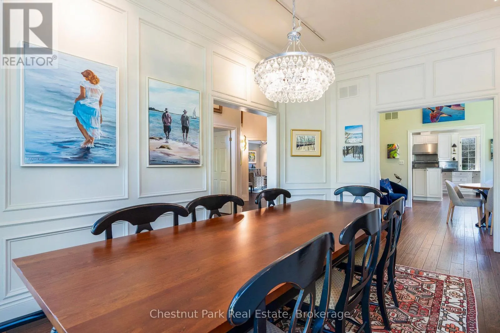 Cross Streets: Monterra Road and Grand Cypress Lane. ** Directions: From Collingwood take Hwy 26 west to County Rd 21, turn left and follow Cty Rd 21 to Monterra Road to Grand Cypress first house on the right (on pond). An Exceptional Golf Course Retreat - Where Luxury Meets Lifestyle. Discover this prime address on the Monterra Golf Course - a home that perfectly balances refined living with the tranquility of nature. Overlooking the pond and 5th and 6th fairways, this beautifully renovated residence is a rare opportunity to own a slice of paradise in Ontario's premier 4-season playground. From its professionally landscaped grounds, mature trees and spectacular sunset views, it is a mountain lifestyle without compromise. Tucked just minutes from the Village at Blue Mountain, TSC/Craigleith/Alpine Ski Clubs and the Georgian Trail, this home is at the heart of everything. Enjoy world-class skiing, golf, cycling, biking, water sports, shopping & dining in Collingwood and Thornbury. The open-concept layout flows seamlessly into the sunroom, dining, kitchen and living room with cozy gas fireplace. Expansive windows fill every corner with natural light and connect the indoors to the beauty beyond. Step through glass doors to a stone patio, an ideal setting for summer gatherings, morning coffee, or spaces for connection & reflection. A second gas fireplace in the dining area - flanked by custom built-in bookcases - creates a sophisticated backdrop for art, sculpture, or cherished collections. Upstairs, the primary suite offers a 5-pc ensuite and generous walk-in closet. Three additional guest bedrooms and 3-pc bath provide ample accommodation for visiting family/friends. The versatile lower-level basement crawlspace offers a finished landing and a cozy recreation area - perfect for visiting grandchildren. Nearly 1,000 sq. ft. of exceptional storage ensures there's room for everything. The triple garage is a dream for active homeowners - with space for golf gear, skis, kayaks, paddleboards, bikes and seasonal essentials. Whether you're hosting friends after a day of skiing, unwinding after golf, every moment here feels a little more elevated, designed for unforgettable living. (id:27476)