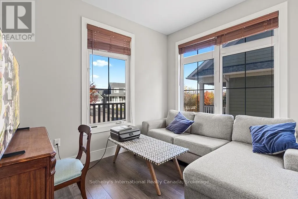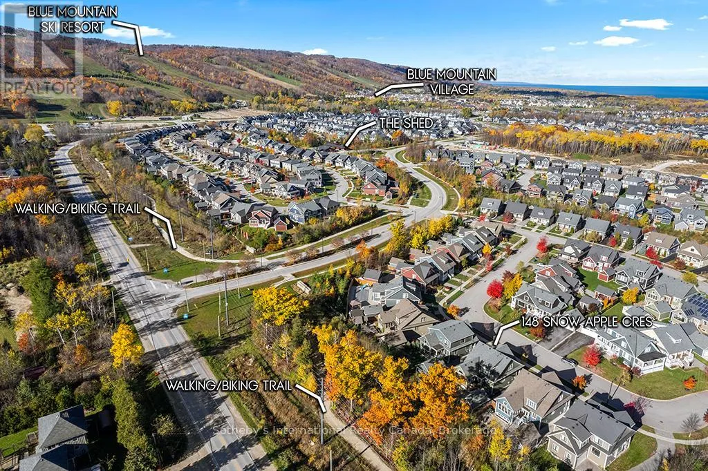 Cross Streets: West Mountain/Crossland Blvd. ** Directions: Mountain Road to Crosswinds Blvd to Snow Apple. WINDFALL ANNUAL RENTAL UNFURNISHED. Wonderful bright and spacious home on Snow Apple Crescent! This stunning 4+1 bed, 3.5 bath detached home is in the sought-after Windfall community, just minutes from Blue Mountain Resort and private ski clubs. Thoughtfully designed and filled with natural light, it offers a warm, inviting atmosphere perfect for four-season living. The gourmet kitchen features high-end appliances, ample counter space, and a functional layout flowing into the open-concept living and dining areas. The fully fenced backyard is an outdoor retreat with a large covered deck for year-round enjoyment. Detached single-car garage and two-car driveway. Finished basement with family/media room, extra bedroom, and full bath-ideal for guests. Tenants enjoy access to "The Shed" with hot and cold pools, sauna, fitness center, and lounge. Backs onto a scenic walking trail in a quiet crescent of 37 homes. Minimum one-year lease. Utilities, snow removal, lawn care maintenance extra. Pets considered. No short-term rentals. (id:27476)