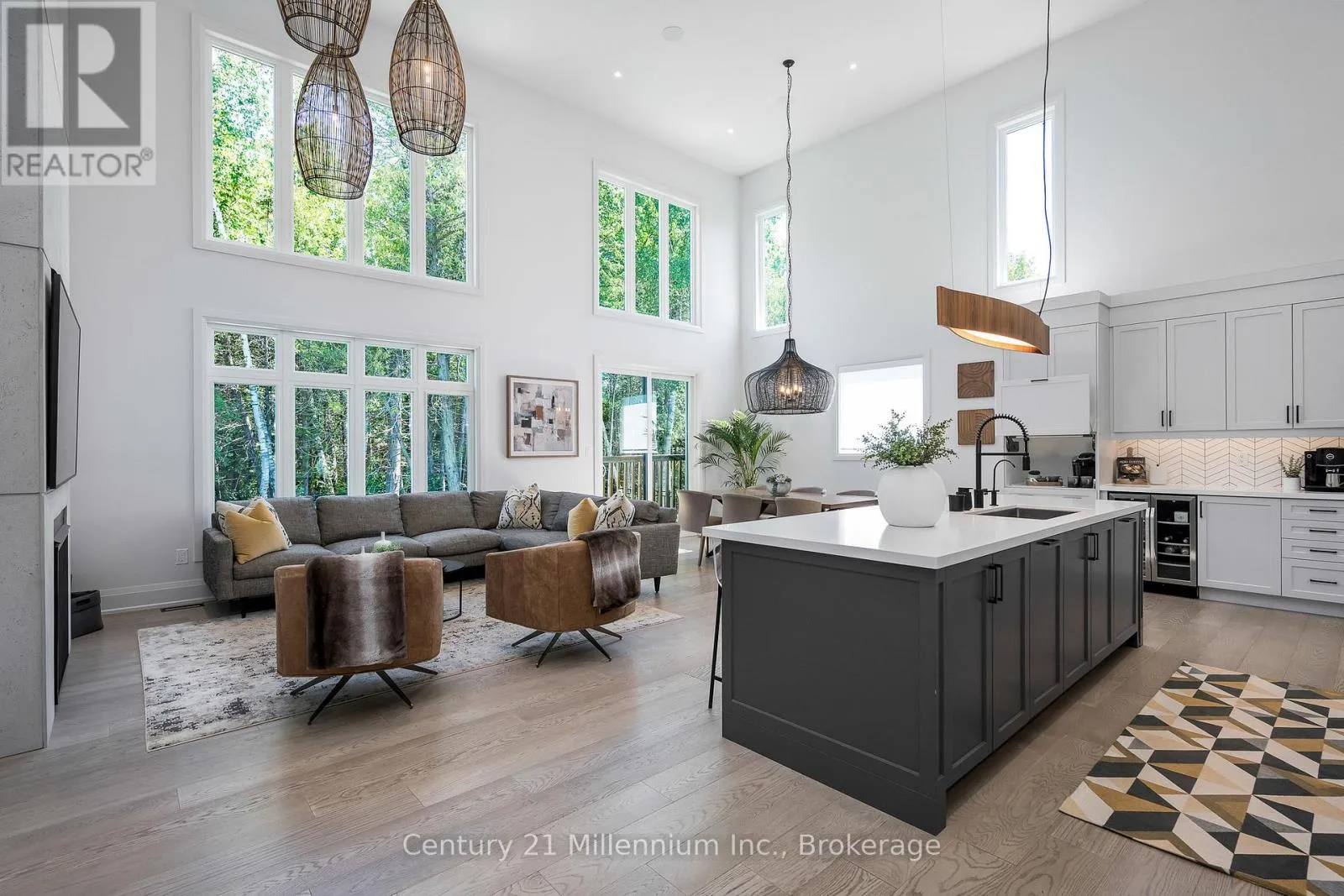 Cross Streets: Grey Rd 40 and Tekiah Road. ** Directions: Hwy 26 West from Collingwood, Left on Grey Road 40, Right onto Tekiah, house is on the right. THE PRESTIGOUS BAYSIDE COMMUNITY is where you want to reside. This beautifully appointed ALTA model consist of 2287 square feet above grade plus another 1393 Square feet below grade, includes an open concept kitchen dining area with soaring ceilings and fireplace, it has a main floor primary bedroom as well as a main floor guest room that could also be used as a den or office. The laundry mud room entrance from the garage is a wonderful asset to have. The upper floors consist of two more bedrooms and loft area. The finished lower level adds another two bedrooms to the home and a large family room with fireplace. The six bedroom 4 bathroom home has many upgrades! The home backs onto green space allowing privacy in the back yard. The home is located steps from Council Beach and Georgian Bay as well as the Georgian Trail and you are only minutes from Georgian Peaks Ski Club. Bike along the Georgian Trail or drive to the charming Town of Thornbury which offers many fine dining establishments as well as all the amenities for your immediate needs. Great opportunity to get into this brand new community and enjoy its location and all it has to offer. **EXTRAS** Golf simulator parts including screen, projector and mat. Reverse osmosis water treatment in kitchen (id:27476)
