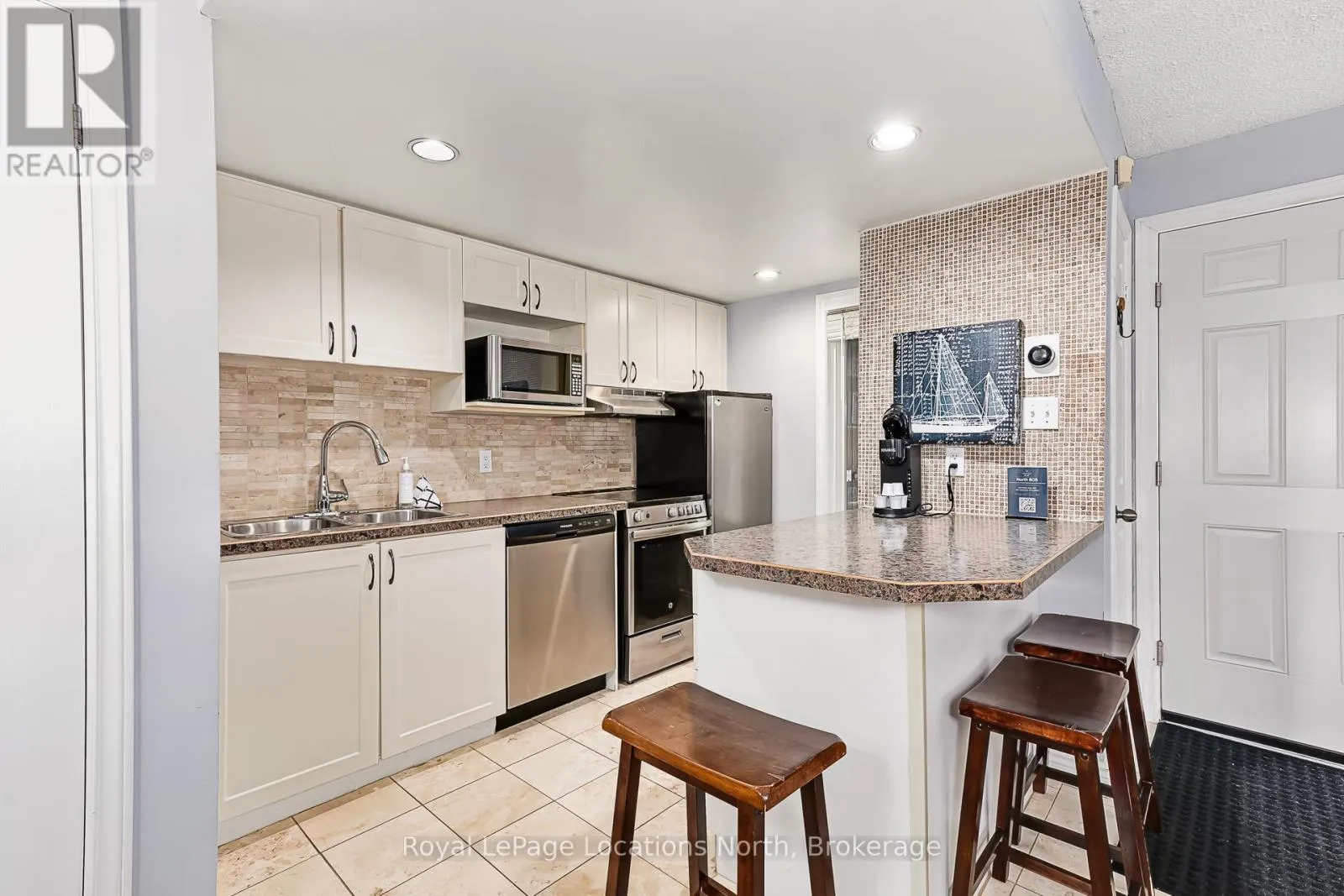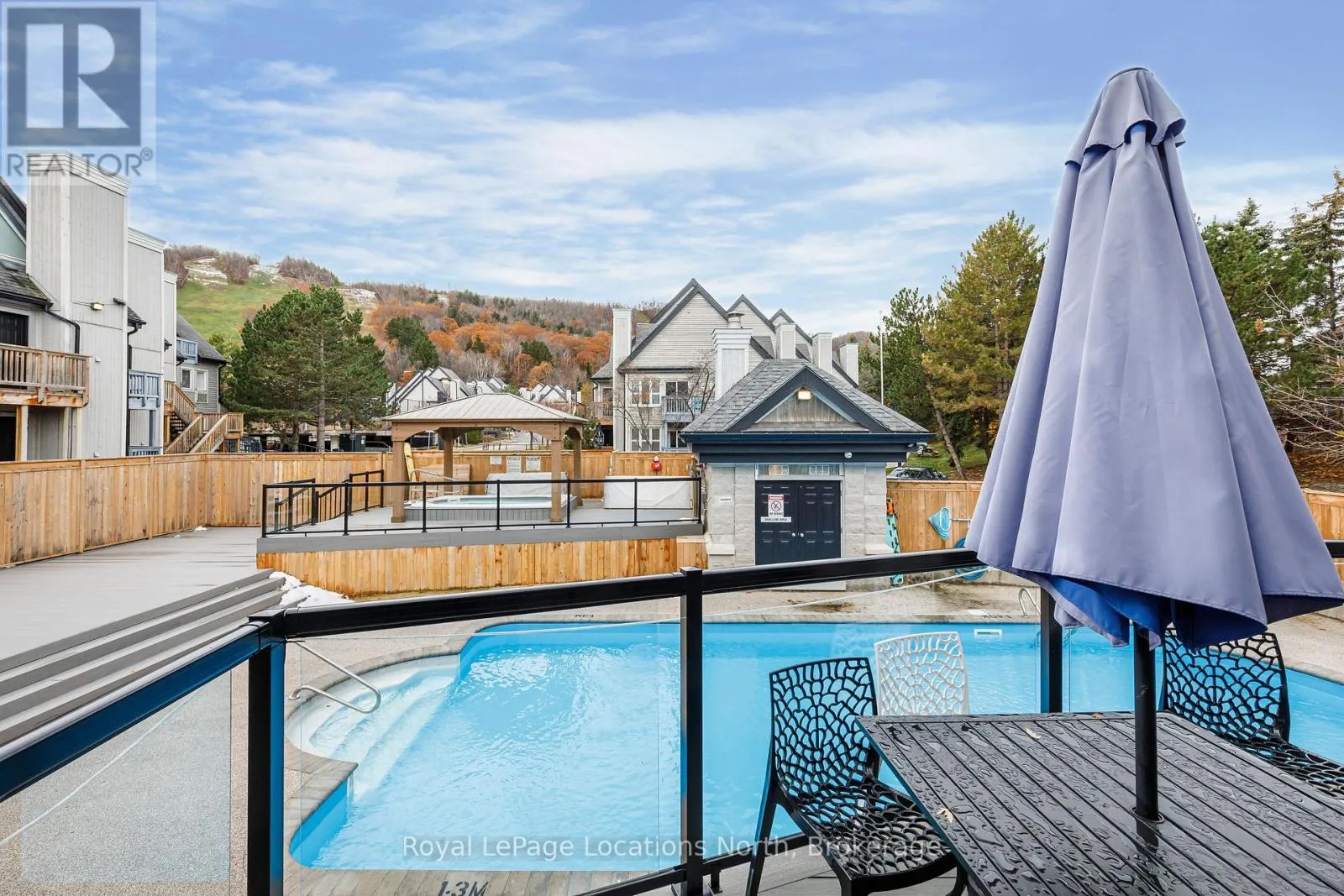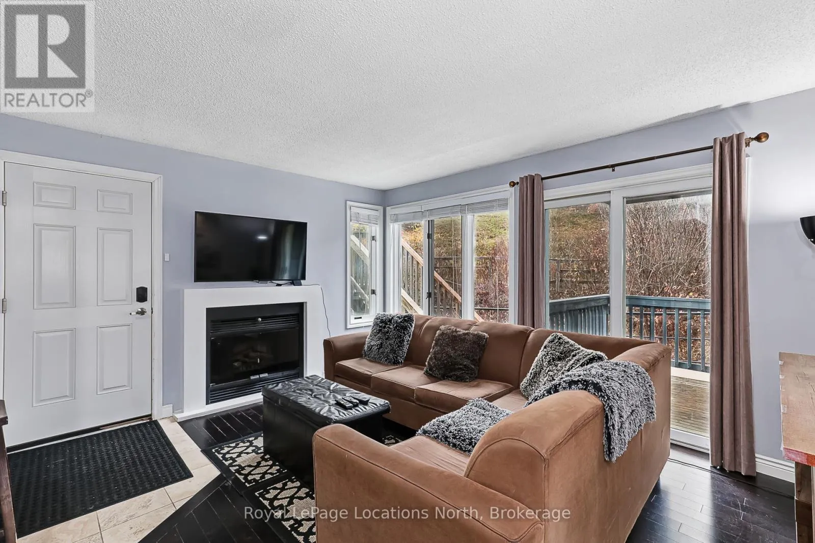 Cross Streets: Grey Rd 19 & Craigmore Cres. ** Directions: Grey Rd 19 & Craigmore Cres (at North Creek Resort). Set in one of Ontario's most desirable resort destinations, this rare corner suite at North Creek Resort pairs sweeping mountain views with proven investment appeal. Fully furnished and STA-approved (subject to Town licensing), this slope-side retreat offers a strong record of rental income and effortless, turnkey ownership in the heart of Blue Mountain's four-season playground. Perfectly positioned beside the Toronto Ski Club, the one-bedroom, one-bath layout delivers unobstructed views, exceptional privacy, and direct access to the slopes. Inside, a bright open plan invites you to unwind fireside after a day on the hill. The living room features an electric fireplace and sliding doors to an oversized covered deck - ideal for morning coffee or après-ski evenings overlooking the runs. The kitchen includes an island breakfast bar with seating for three and flows seamlessly into the living area, while the bedroom offers a queen bed, double windows, and two generous closets. A five-piece bathroom and an exclusive ski locker located just outside the unit add convenience to this mountain-chic escape. Owners enjoy resort amenities including a seasonal outdoor pool, year-round hot tubs, tennis/pickleball courts, and a shuttle connecting directly to the Village. As part of the Blue Mountain Village Association (BMVA), ownership includes access to community events and exclusive discounts. A true income property and getaway in one, this slope-side sanctuary offers unmatched views, reliable returns, and the authentic Blue Mountain lifestyle. (id:27476)