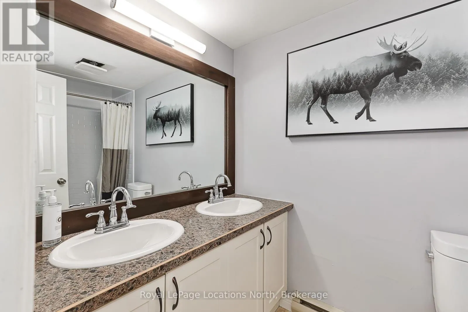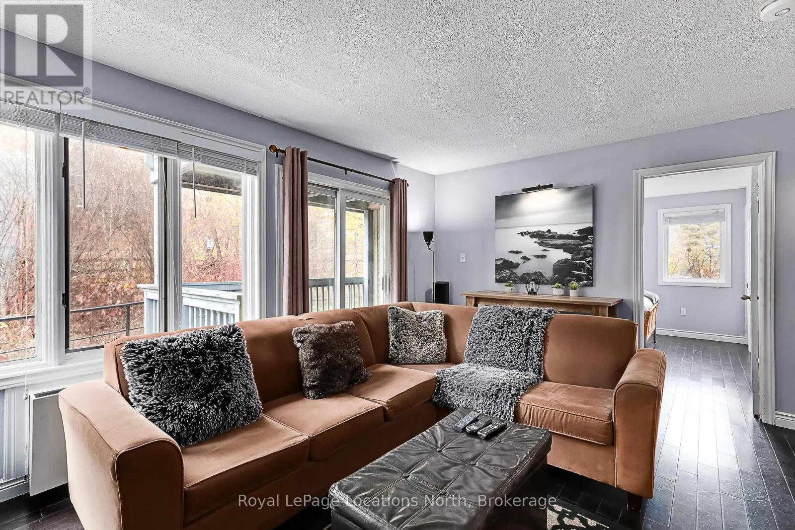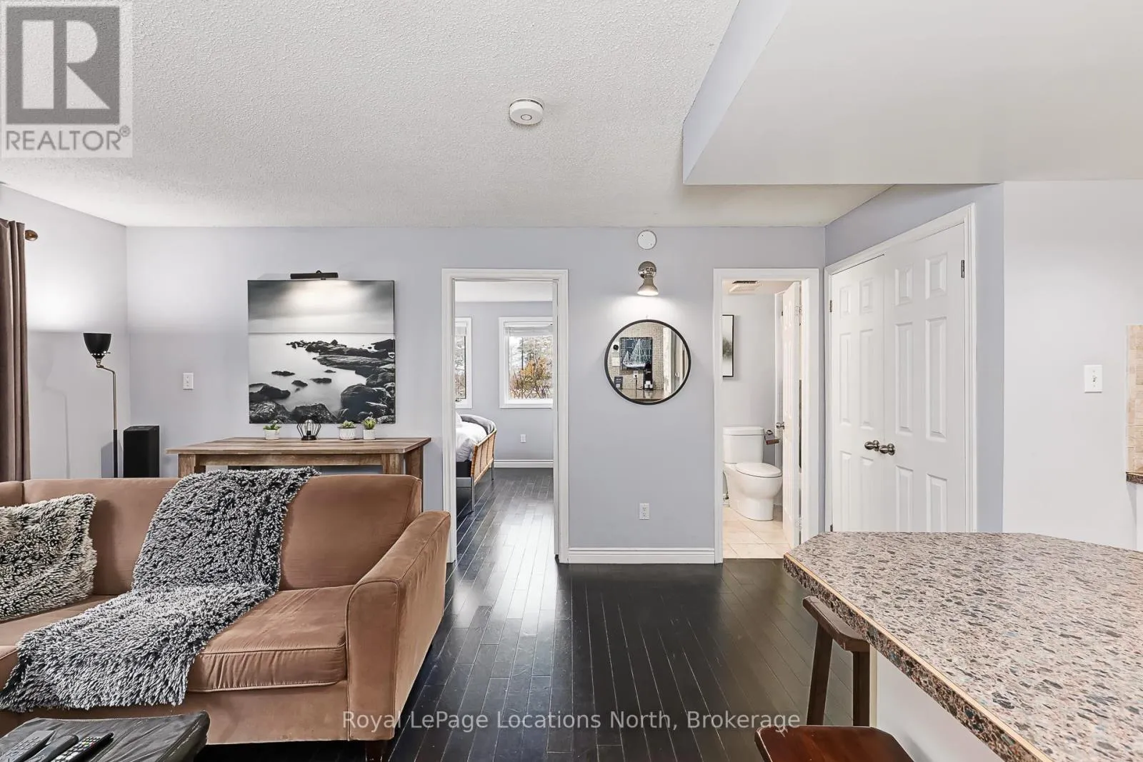 Cross Streets: Grey Rd 19 & Craigmore Cres. ** Directions: Grey Rd 19 & Craigmore Cres (at North Creek Resort). Set in one of Ontario's most desirable resort destinations, this rare corner suite at North Creek Resort pairs sweeping mountain views with proven investment appeal. Fully furnished and STA-approved (subject to Town licensing), this slope-side retreat offers a strong record of rental income and effortless, turnkey ownership in the heart of Blue Mountain's four-season playground. Perfectly positioned beside the Toronto Ski Club, the one-bedroom, one-bath layout delivers unobstructed views, exceptional privacy, and direct access to the slopes. Inside, a bright open plan invites you to unwind fireside after a day on the hill. The living room features an electric fireplace and sliding doors to an oversized covered deck - ideal for morning coffee or après-ski evenings overlooking the runs. The kitchen includes an island breakfast bar with seating for three and flows seamlessly into the living area, while the bedroom offers a queen bed, double windows, and two generous closets. A five-piece bathroom and an exclusive ski locker located just outside the unit add convenience to this mountain-chic escape. Owners enjoy resort amenities including a seasonal outdoor pool, year-round hot tubs, tennis/pickleball courts, and a shuttle connecting directly to the Village. As part of the Blue Mountain Village Association (BMVA), ownership includes access to community events and exclusive discounts. A true income property and getaway in one, this slope-side sanctuary offers unmatched views, reliable returns, and the authentic Blue Mountain lifestyle. (id:27476)