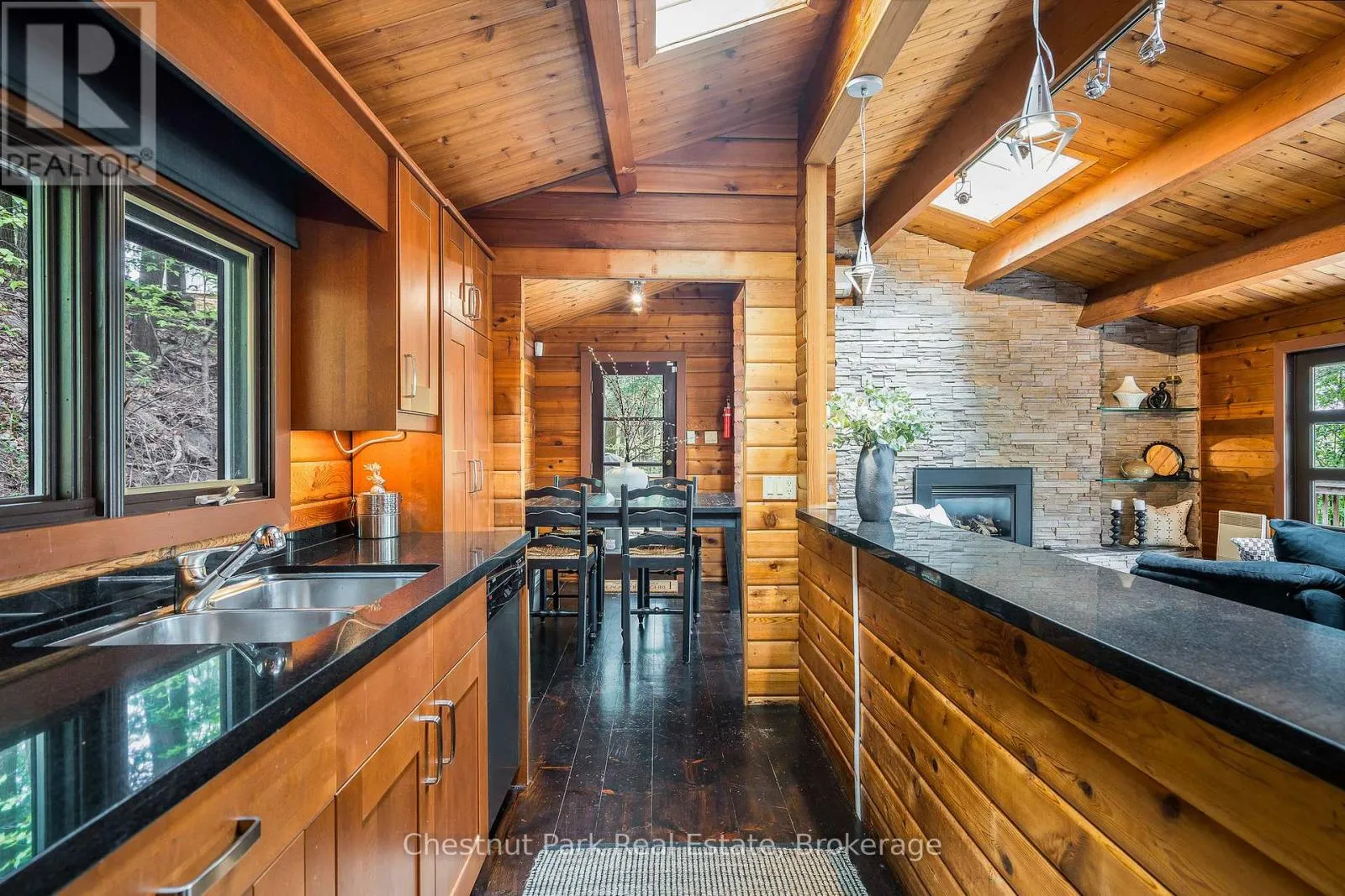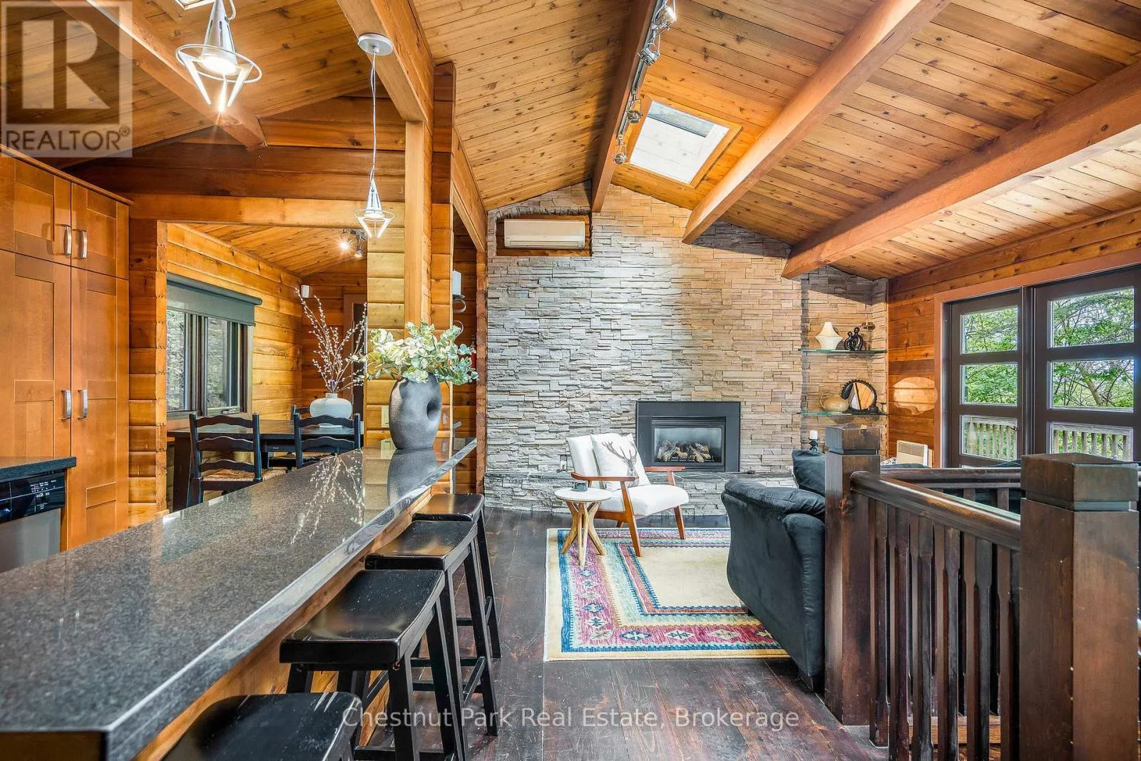 Cross Streets: Grey 19 and Hwy 26. ** Directions: From Hwy 26, south on Grey Rd. 19 to Kitzbuhl Cres to Lakeshore Rd W to Chamonix Cres. TURN KEY OPPORTUNITY IN CRAIGLEITH. This charming and warm chalet located in the sought after Craigleith nieghbourhood in the Blue Mountains offers year round recreational enjoyment. Move into this fully furnished chalet for thanksgiving. A short walk to Northwinds Beach, minutes to Blue Mountain village, local ski clubs, golfing, and just up the road from the Georgian Trail. The thoughtfully designed 3 bedroom and 2.5 bath chalet is offered FULLY FURNISHED including all housewares (some exclusions). The open concept upper level offers a large gourmet kitchen, living room with stone gas fireplace, vaulted ceilings plus a walkout to the deck overlooking the property. The primary bedroom is just off the main living area offering a 4 piece ensuite. The lower/entry level includes the cozy family room with gas fireplace, 2 bedrooms, and a spa like 4 piece bath with an immaculate sauna. This amazing opportunity awaits you! (id:27476)