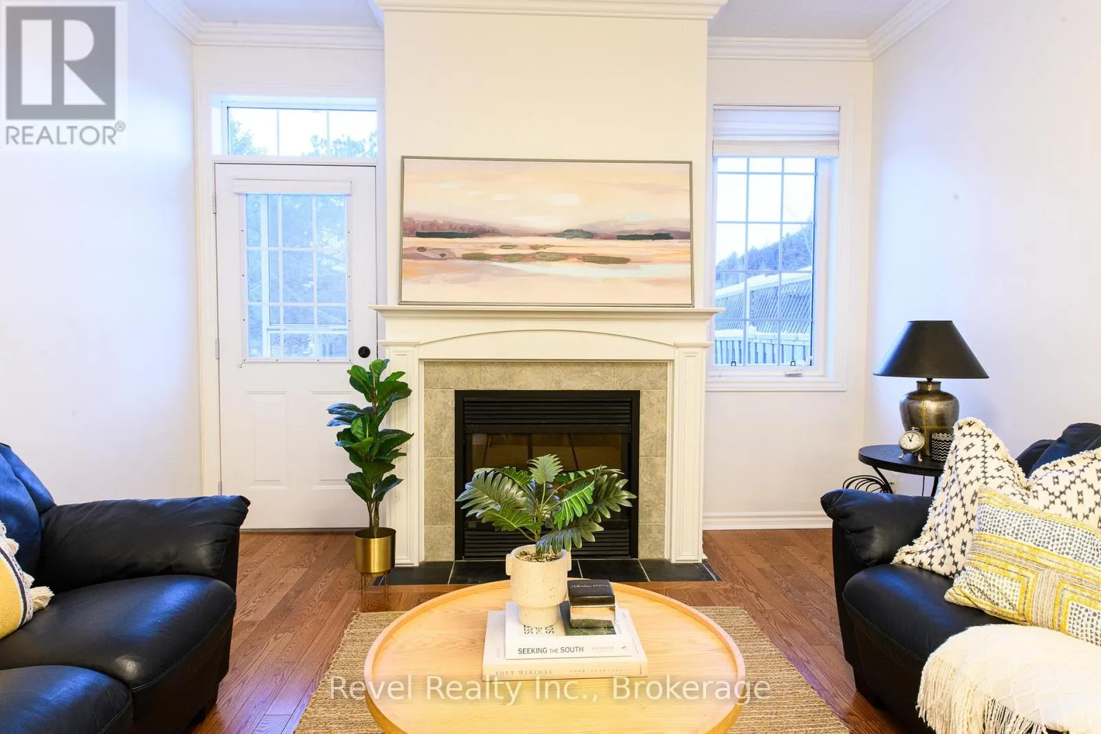 Napier St. West to the Woods at Applejack. Welcome to The Woods at Applejack Thornbury Living at Its Best. Discover effortless living in this beautifully appointed bungalow townhome with over 1800 sqft of living space located in the coveted community of The Woods at Applejack. Perfect for downsizers, weekenders, or those seeking a year-round retreat, this 3-bedroom, 3 update bathrooms residence offers a seamless blend of comfort, functionality, and style. Beautifully renovated kitchen with white cabinets, quartz countertops, stainless steel range and microwave. Thoughtfully upgraded with wood flooring and a neutral colour palette, the open-concept main floor is bright and welcoming. The living and dining areas, anchored by a cozy gas fireplace, flow seamlessly to a private composite deck, perfect for morning coffee or evening entertaining in a peaceful, natural setting. The spacious main-floor primary bedroom offers a walk-in closet and a generous ensuite with a quartz countertop, creating a private sanctuary. The finished lower level expands your living space with a large recreation room, a third bedroom, an updated full bathroom, and ample storage, ideal for hosting family and friends. Practical touches like a single attached garage and main-floor laundry make everyday living easy and efficient. Enjoy access to a full suite of community amenities, including two swimming pools, tennis and pickleball courts, and a vibrant recreation centre. Step outside your door to explore Thornbury's boutique shops, acclaimed restaurants, the waterfront park, and the harbour, or jump on the Georgian Trail for year-round adventures. Golf courses, farmers' markets, ski resorts, and more are all within easy reach. This is more than a home it's a gateway to the relaxed, active lifestyle Thornbury is known for. ***Condo Fees include cable and internet*** (id:27476)
