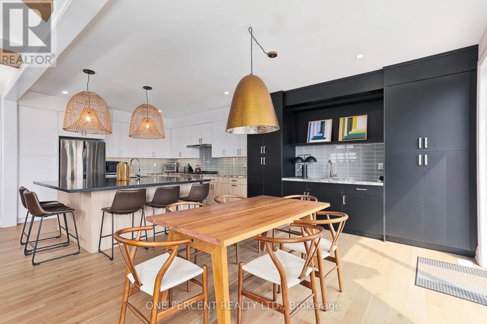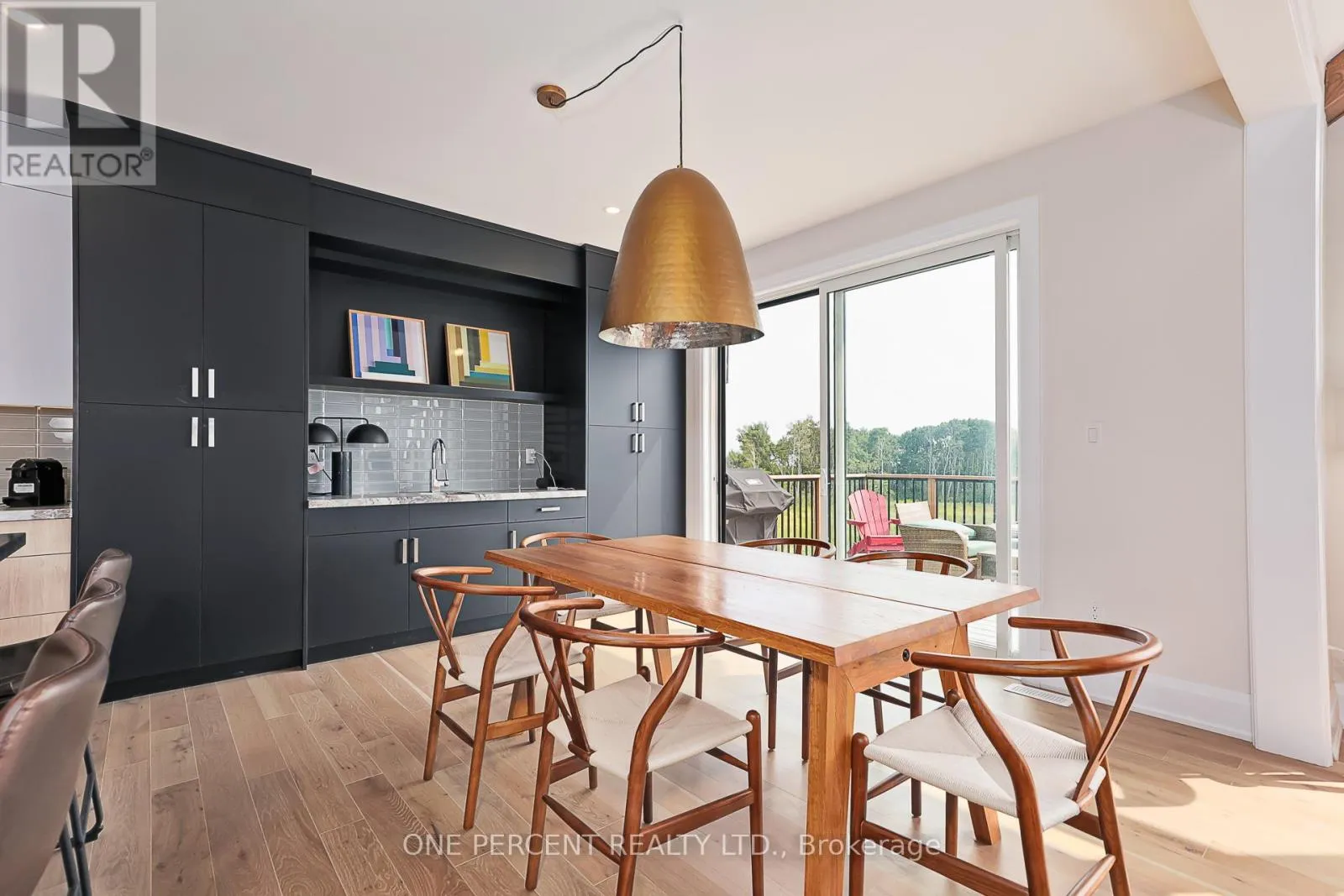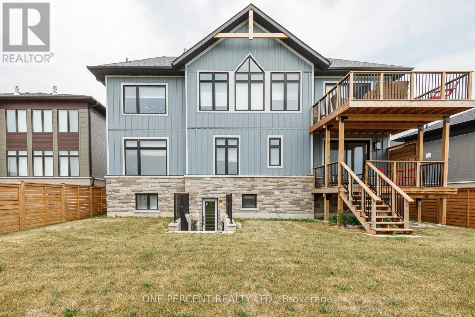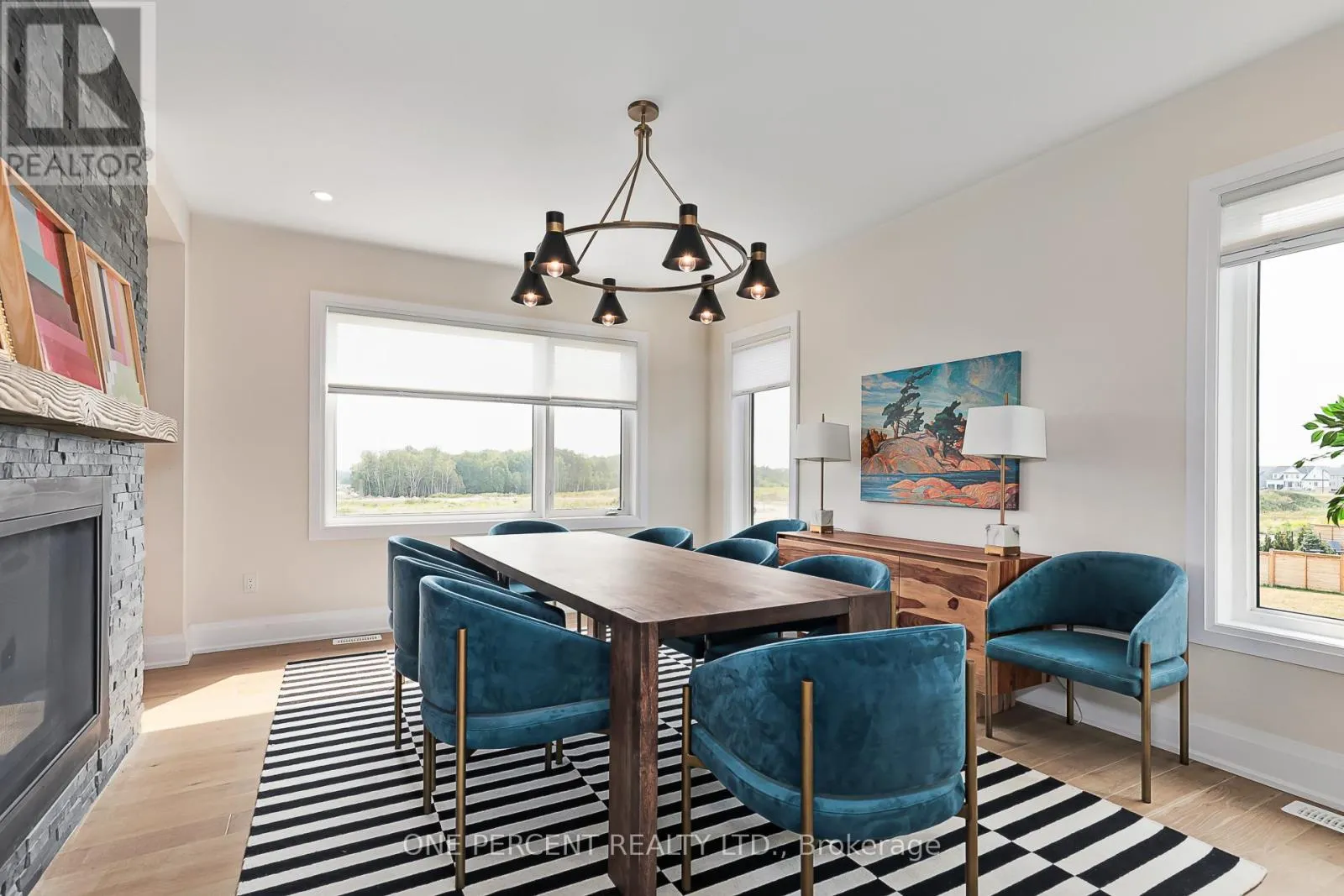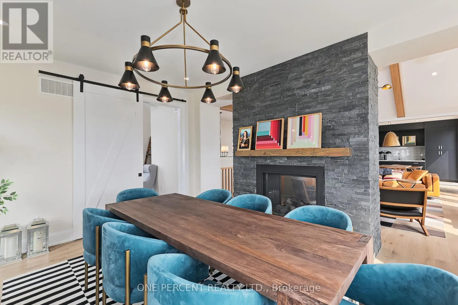 Stoneleigh and Cattail Welcome to 114 Cattail Crescent, a 4,558 sqft mountain house, boasting elegant architectural upgrades, unique stone, fibre cement, and wood grain siding, along with ornamental wood details. A 50-foot wide, side-facing garage creates an impressive street presence, with plenty of parking.This layout features a primary living space (1,883 sqft) on the second floor, additional primary living space on the first floor (1,548 sqft), plus a fully finished walkout basement (1,127sqft). The open second floor, with high ceilings and windows, offers impressive views and features a large deck, custom kitchen, servery, eating area, faux beam covered lodge room, formal dining room, and den, divided by a slate-clad floor-to-ceiling gas fireplace. The expansive owners suite includes cathedral ceilings, a private loggia, spacious walk-in closet, and a beautifully decorated ensuite with standalone tub and a large glass shower enclosure. The main level entrance leads to the main floor with a large bar/kitchen, a family room with a deck, backyard access and beautifully decorated rooms with custom light fixtures. There are also three good-sized bedrooms and two full bathrooms on this level. A separate side door and a garage entrance, leads to a spacious storage room and laundry room. The self-contained basement with glass door walkout, offers a large open space, wet bar, two bedrooms with egress windows, and a full bathroom.The house is beautifully located within a short walking distance to Blue Mountain Village and a complimentary shuttle to many amenities, including the private Blue Mountain Beach. This professionally decorated house with great street presence and exceptional floor plan includes all light fixtures and furniture. (id:27476)