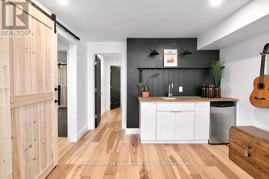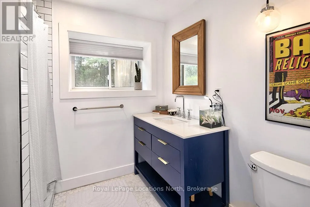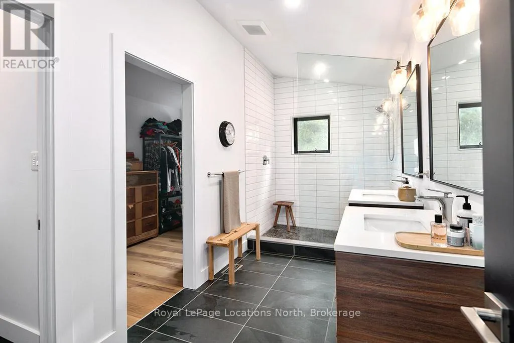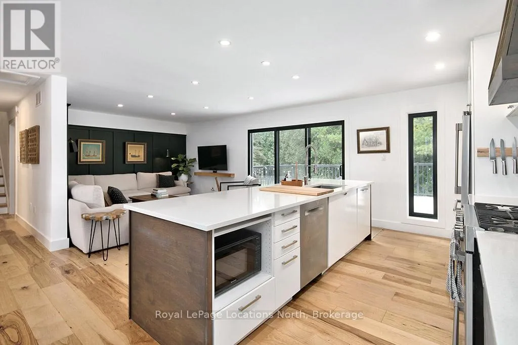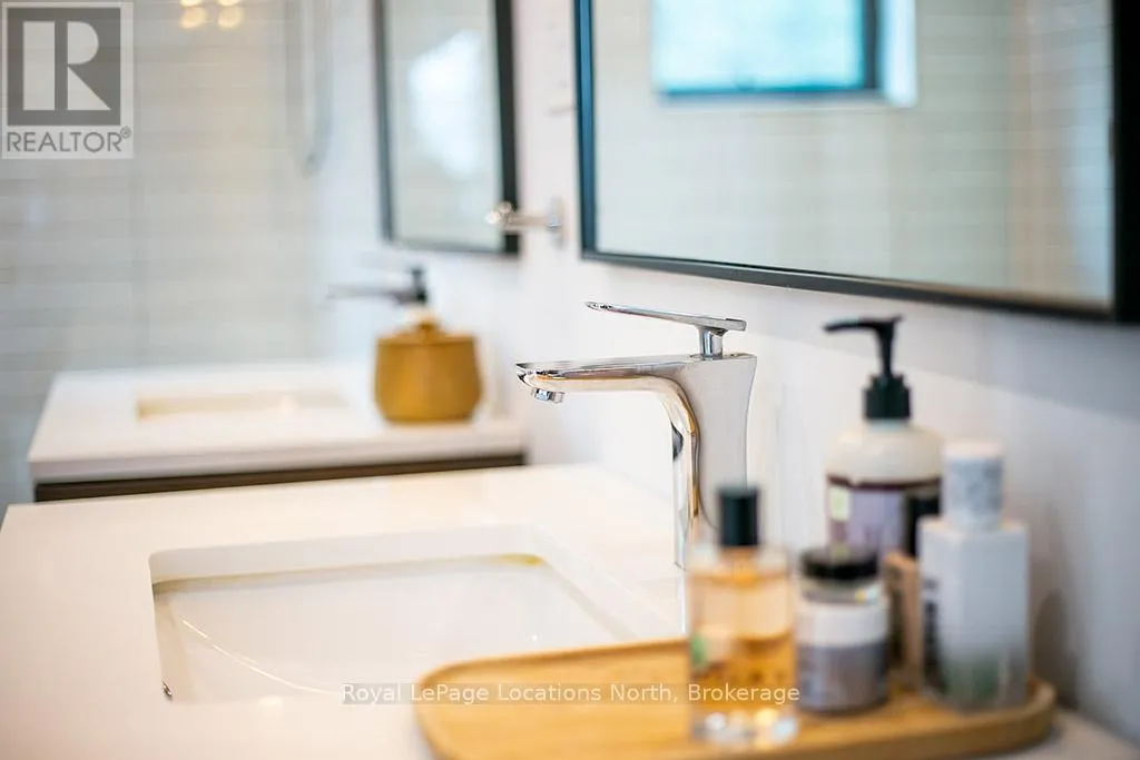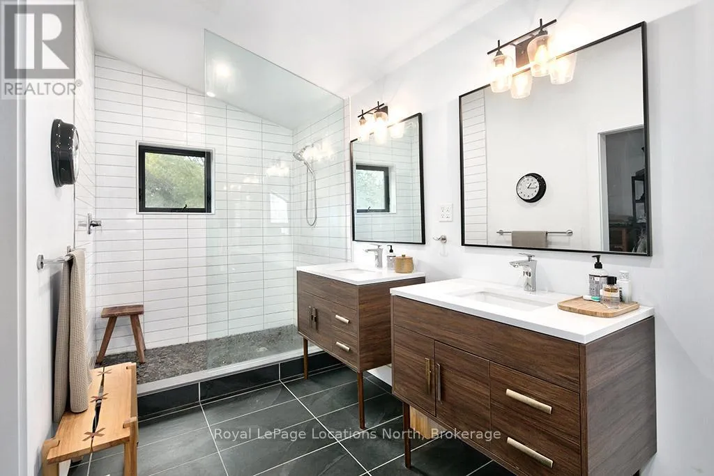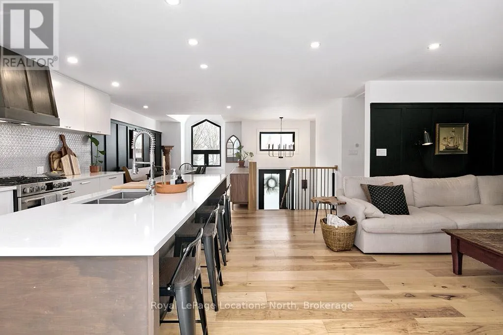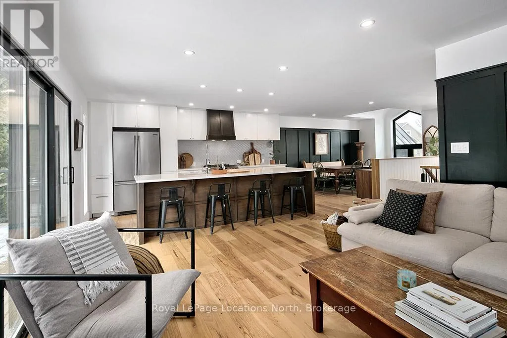 Cross Streets: Pyatt St & Shirley Crt. ** Directions: Victoria St South to Pyatt St To Shirley Court To Sign. 9 Shirley Court - An exceptional home tucked away on a quiet, family-friendly court in the heart of Thornbury. From this coveted location, you can walk to BVCS, the library, community centre, downtown, & the shores of Georgian Bay. Exquisitely transformed with a comprehensive addition/renovation in 2021, this property now offers a truly unique living experience. The pie-shaped, south-facing backyard is a standout feature, with mature trees that create a natural sense of privacy. Inside, no detail was overlooked. Thoughtful modern design fills the home, beginning with the striking staircase in warm natural tones contrasted with sleek black accents-a theme carried throughout. The main floor features engineered hardwood & an open-concept layout anchored by an oversized slider that extends your living space outdoors. The kitchen, is the heart of the home with an impressive island perfect for family gatherings, opening to both the formal dining room & the cozy living room. Two bright & spacious bedrooms on the main level share a stylishly renovated 4-piece bathroom. The newly created primary suite occupies the upper level, offering a private retreat with cathedral ceilings, a beautiful ensuite, & a generous walk-in closet. The lower level provides even more functional space, including a cozy second living room with a wet bar, a workout area, and a fourth bedroom with its own private bathroom-ideal for teenagers, guests, or a potential in-law suite. A well-designed mudroom/laundry room complete this level. Car enthusiasts & hobbyists will appreciate the original two-car garage with interior access, complemented by a newly added third bay that provides direct access to both the backyard and the lower level. Recent upgrades include a new furnace, AC, windows, roof, siding, and more. The property is fully landscaped and features a brand-new asphalt driveway (2025). This home truly has it all-modern design, thoughtful functionality, and an unbeatable Thornbury location. (id:27476)