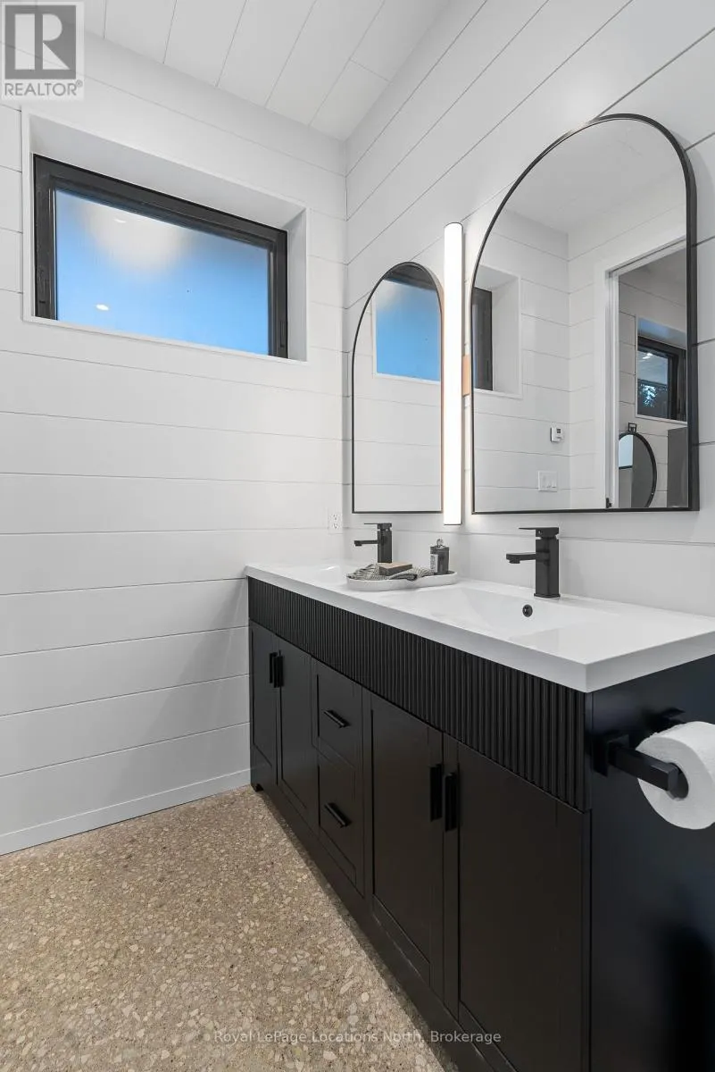 Cross Streets: Grey Rd 13 & Slabtown Rd. ** Directions: West on Slabtown Rd from Grey Road 13 to #111. Where Heritage Meets Modern Luxury. Redefining what a contemporary chalet can be, the DiTrani Chalet blends modern alpine design with enduring comfort and four-season functionality. Built in 2025, this one-of-a-kind home features 3 bedrooms, 2.5 bathrooms, and approx. 2,600 sq. ft. of thoughtfully crafted living space. Designed with a reverse floorplan, the main living areas are positioned on the upper level to maximize natural light. This level showcases a custom Swede-designed kitchen with double islands, Café appliances, Bosch dishwasher, and extensive built-in millwork. White oak flooring, shiplap by Ready Pine ceilings, a propane fireplace, a propane bbq outlet on the deck, and Euro+Glasshaus hybrid windows with Cardinal Low-E 366 glass frame serene views that bring the outdoors into every gathering space. A powder room and mechanical room are also located here. The lower level features polished concrete floors, a spacious mudroom entry, three bedrooms, two bathrooms (including the primary ensuite), and laundry, kept consistently warm with radiant in-floor heat throughout. Built with an 12" ICF foundation, full spray-foam insulation, and zoned hydronic heating, this home offers exceptional efficiency and durability. Additional features include Sonos sound, Ring cameras, Tedee Pro smart lock, EV charger, landscape lighting rough-in, Maibec siding, Ready Pine interior walls, and an electric Neptune sauna from Toronto Sauna. Cistern equipped with wi-fi monitoring. A rare opportunity to own a modern, design-forward chalet steps to the Beaver River, and minutes to Ski Hills, Georgian Bay, Thornbury, trails, and year-round recreation. (id:27476)