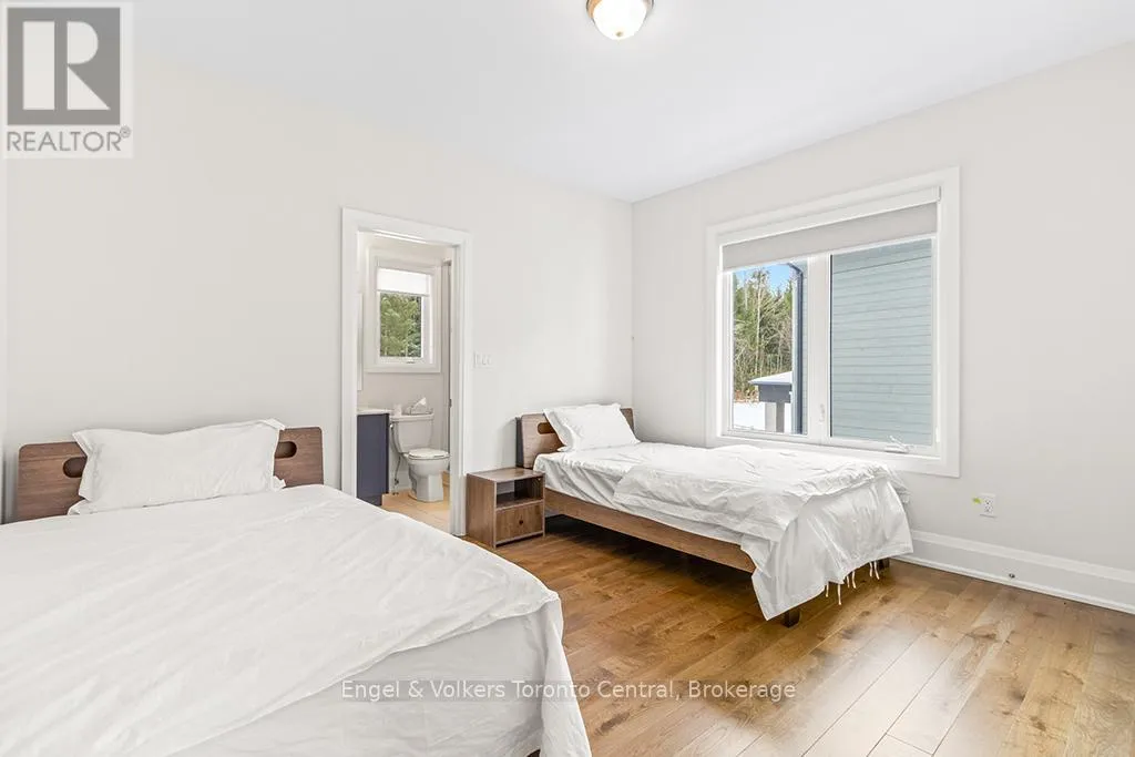 Hwy 26 & Camperdown Welcome to this exceptional four-bedroom home, thoughtfully designed for both full-time living and the perfect ski-chalet getaway. The main level features a luxurious primary suite complete with a spa-inspired ensuite offering double vanities, a large glass shower, and a separate soaker tub. A second bedroom includes its own private three-piece ensuite, while the remaining two bedrooms share a convenient Jack-and-Jill bathroom. The heart of the home is the stunning gourmet kitchen, ideal for any chef, complete with a butler's area and spacious walk-in pantry. The dining room offers lots of windows for bright natural light, creating a warm and inviting atmosphere. Beautiful hardwood flooring runs throughout, enhancing the elegance of every space. The living room features a two-sided fireplace, creating a seamless flow into the dining area and setting the tone for cozy, memorable gatherings. A well-appointed laundry area includes custom storage cubbies and direct access to the garage for added convenience. Enjoy breathtaking escarpment views, offering a serene and picturesque backdrop year-round. The impressive loggia, a covered outdoor deck with a gas fireplace, provides the perfect setting for warm, relaxing summer evenings. The lower level extends your living space with two generous bedrooms, a full bathroom, and a huge recreational room-an ideal spot for kids to hang out, play, and make lifelong memories. Book your private viewing today and experience the charm and comfort this incredible home has to offer. (id:27476)