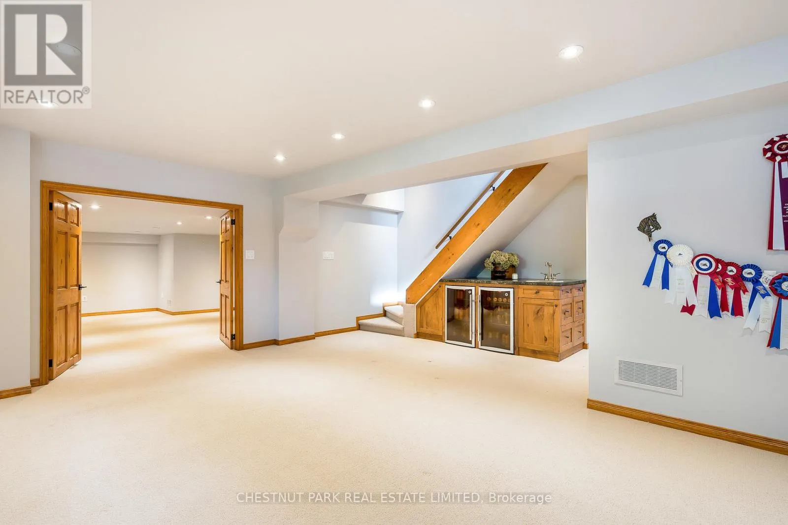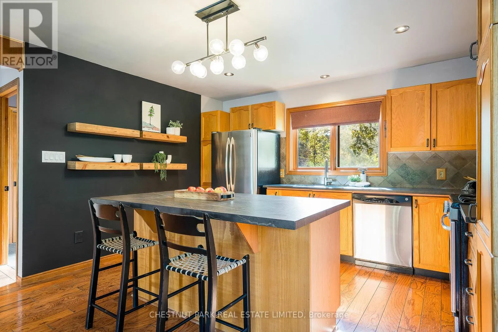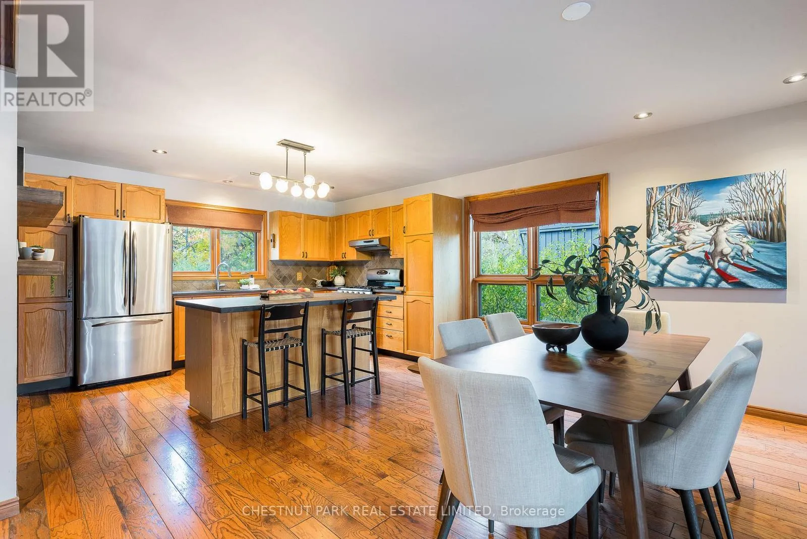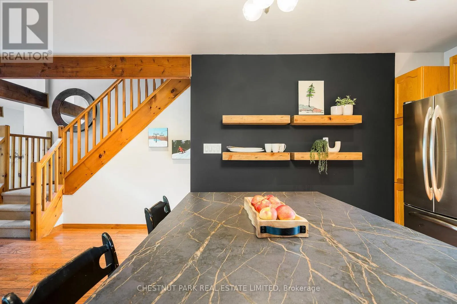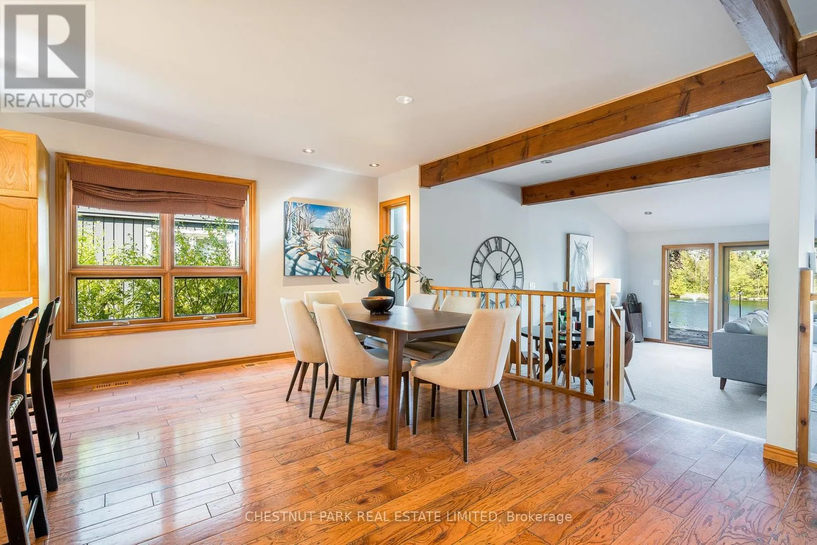 Cross Streets: Hidden Lake Rd / Hwy 26. ** Directions: West of Arrowhead Rd on Hwy 26 across fromCraigleigh Provincial Park. Set within the natural beauty of the Town of The Blue Mountains, and nestled between the ski hills and Georgian Bay, the private 12-home enclave of Hidden Lake is a sought-after haven for those who value peace, recreation, and elegant living. Residents enjoy an exclusive tennis and pickleball court, a sun-filled pool, a wide-open playing field, and a serene swimming pond, complete with a floating dock and diving tower - the perfect setting for four-season enjoyment. A private gate provides direct access to the Georgian Trail, perfect for biking, hiking, & x-country skiing, with a short stroll to the Bay. Chalet 9 offers almost 3000 sq ft of living space over 3 levels, 4 beds & 4 baths. Inside, the sunken great room showcases soaring ceilings, solid Fir beams, and views over the private 1-acre lake. A large kitchen with custom counters & breakfast bar opens seamlessly to the main living area - perfect for hosting family and friends. There is also a versatile main floor bedroom/ office tucked away, with a powder room across the hall. Two of three upstairs bedrooms feature sliding doors to private porches, offering peaceful views of Hidden Lake and peekaboo glimpses of Georgian Bay. The bright lower level offers a rec room, wet bar, media room, and bunk room. Outside, enjoy beautiful gardens, a front deck with a gas BBQ, and a back deck with pond views and a retractable awning. Homeowners share costs for grounds and amenities as a common elements condo. Close to Thornbury's renowned cideries, restaurants, bakeries, & shops, Scandinave Spa, & Blue Mountain resort - this is an exceptional location and a rare opportunity. This property is attractively priced for immediate sale - come play this winter! (id:27476)