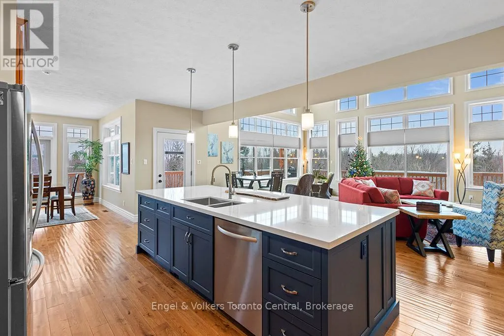From Hwy 26 in Collingwood, take Grey Rd 19 south, turn right onto Alta Rd to #193. Exceptional custom-built multi-generational residence offering five bedrooms and five bathrooms, thoughtfully designed for comfort, privacy, and upscale living. This wide, oversized property features expansive premium windows that capture breathtaking ravine views, filling the home with natural light.Located directly across from the Alpine Ski Club hills, this home delivers a rare lifestyle combining luxury and year-round recreation. The main floor features a private office, ideal for remote work or a quiet study, along with a primary bedroom retreat offering a large, bright ensuite bathroom and a huge walk-in closet, perfectly suited for main-level living or multi-generational arrangements.A stunning wrap-around balcony spans the main floor, providing an exceptional space for entertaining or relaxing while overlooking the natural surroundings.The walkout basement serves as a private spa-inspired retreat, complete with a hot tub and a luxury indoor dry sauna. An oversized garage offers generous space for vehicles, sports equipment, and storage. Just minutes from scenic walking trails and the shores of Georgian Bay, this remarkable home blends tranquility, functionality, and refined living in a highly sought-after location (id:27476)