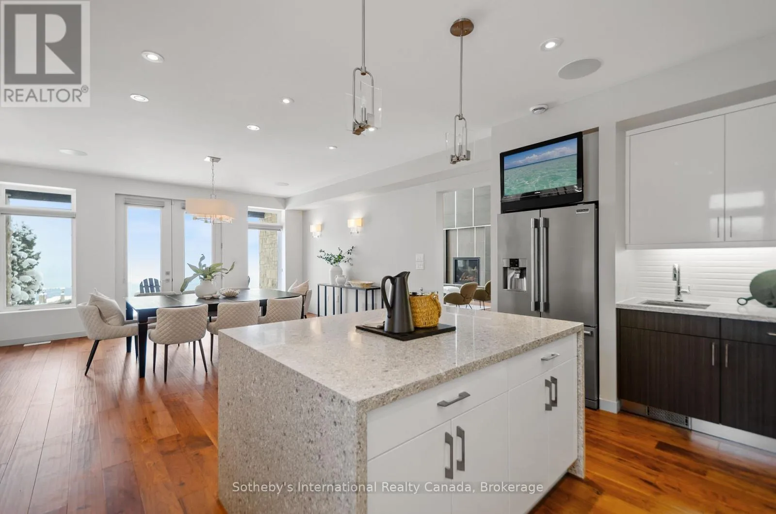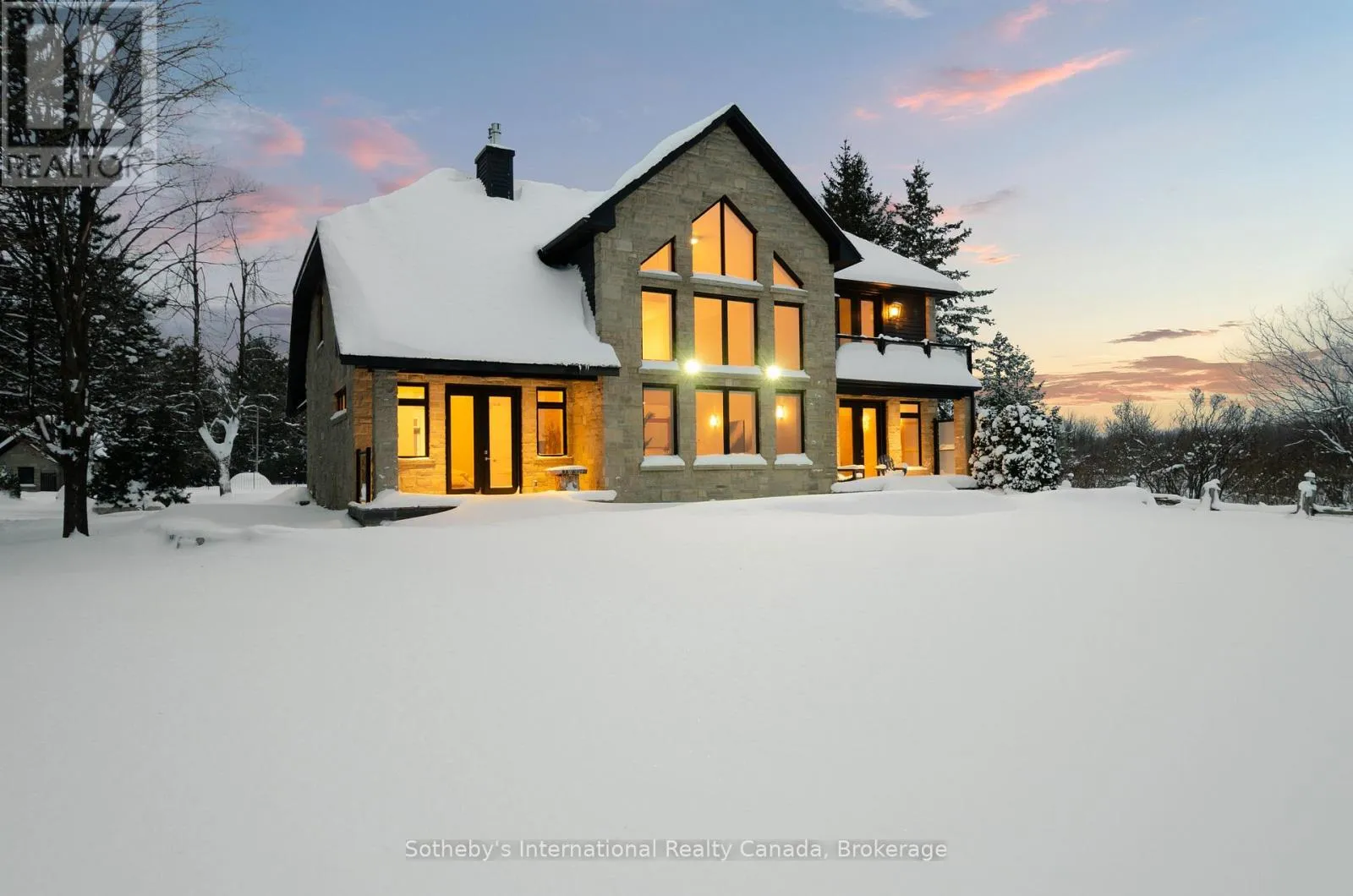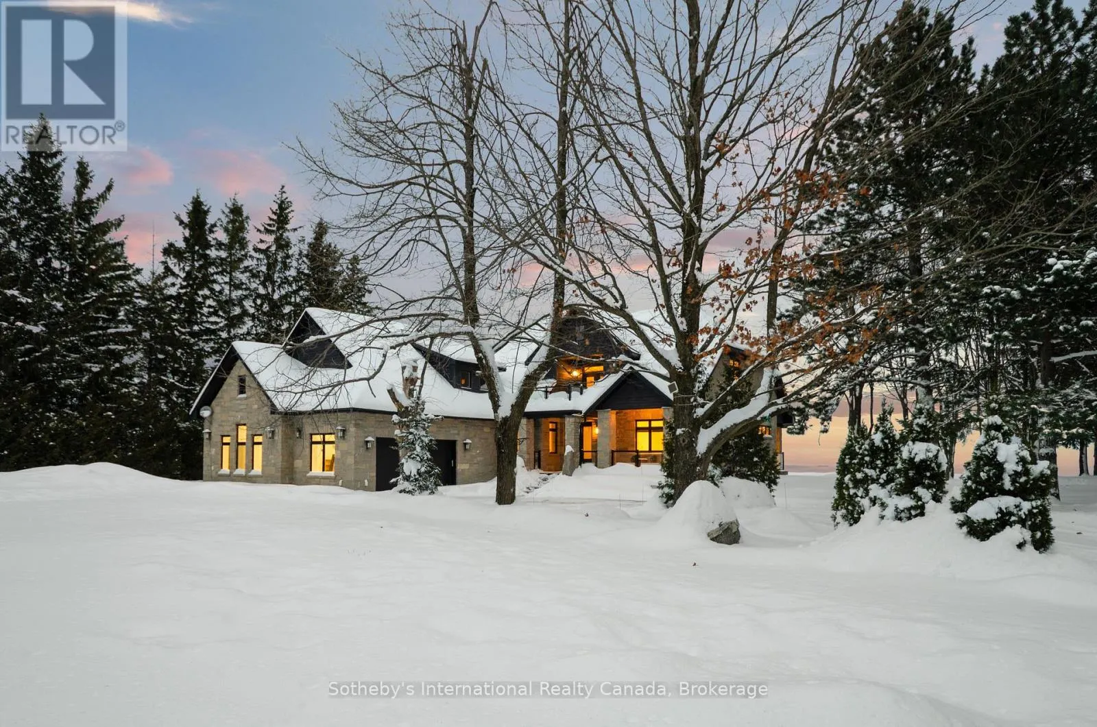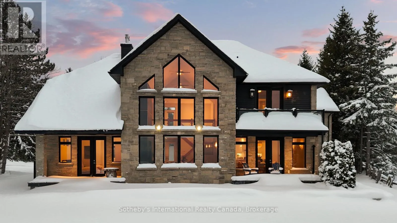 Scenic Caves Rd to Swiss Meadows Blvd to Maple Lane / Swiss Meadows Spectacular estate perched atop Blue Mountain, offering breathtaking panoramic views of the ski hills, Georgian Bay, and the town of Collingwood. This custom-built residence features advanced ICF R- 24 construction providing exceptional insulation, strength, and energy efficiency. The interior showcases the finest craftsmanship and premium finishes throughout, flooded with natural light and stunning vistas from every window. The home offers four bedrooms, including two luxurious principal suites-one conveniently located on the main floor with patio access, and a second-floor suite featuring a private balcony. The dramatic great room is highlighted by a two-storey, tile-fronted fireplace, creating a striking focal point. The custom kitchen is designed for both beauty and function, complete with a Caesar stone waterfall island and a climate-controlled wine cellar. Outdoors, enjoy a custom-built saltwater pool with pool house, an attached three-car garage, and meticulously manicured grounds featuring flagstone patios and mature maple and pine trees. The property spans 10.66 exceptionally private acres with a gated stone entrance, offering both seclusion and prestige. Additional features include Geo Thermal HVAC, backup propane generator, underground hydro service, hand-honed local limestone exterior cladding, and a durable Enviroshake roof. A true four-season retreat, ideally suited for outdoor enthusiasts with skiing, hiking, and biking at your doorstep, and direct access to the renowned Bruce Trail at the edge of the property. (id:27476)