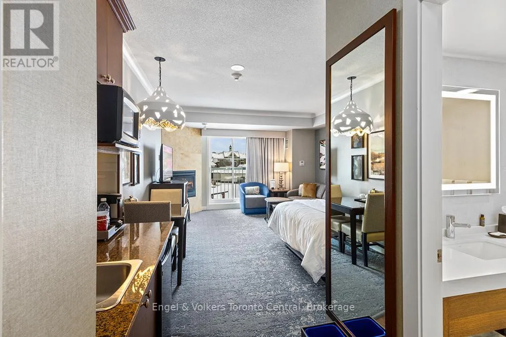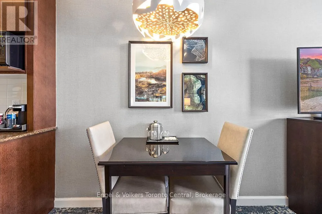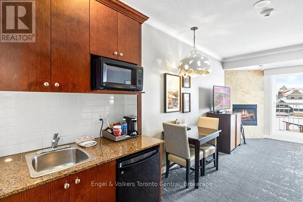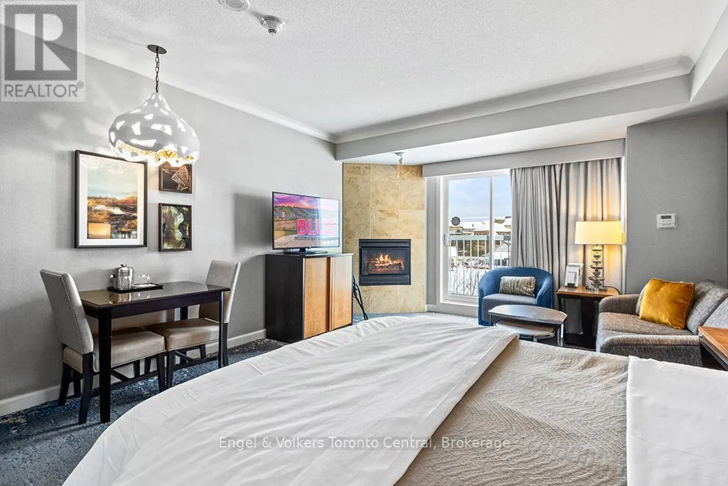 Cross Streets: Grey Road 19 & Jozo Weider Blvd. ** Directions: From Grey Rd 19 turn left on Jozo Weider Blvd, then left on Gord Canning Dr. Welcome to the luxury of The Westin Trillium House in the beautiful Village at Blue Mountain. Experience the elegance and comfort of The Westin Trillium House, located in the heart of the European inspired pedestrian Village at Blue Mountain-Ontario's largest four-season family resort, just over 2 hours from the GTA. Enjoy year-round activities, festivities, and breathtaking surroundings steps from your door, including the Village Millpond, ski hills, trails, shops, restaurants, cafés, grocery, spa, golfing, and mountain biking. A short drive brings you to private beach, Scenic Caves, Collingwood, Georgian Bay marinas, and world-famous Wasaga Beach. This fully furnished 409 sq. ft. bachelor suite features 9' ceilings, a Juliette balcony overlooking the tranquil Millpond and gardens. Gas fireplace in living room, a Queen bed, a pull-out sofa bed, dining area, and a convenient kitchenette. Completely turn-key, it's ideal for personal enjoyment and investment. The suite is currently enrolled in a well-managed rental program generating income to help offset partial ownership costs while not in use. 100% ownership (not a timeshare). HST may apply or be deferred with a HST number and participation in the rental program. A 2% + HST Village Association Entry Fee is due on closing; annual VA fees approx. $1.08/sq. ft. + HST, will applied. Owners enjoy exceptional features including: Ensuite storage & exclusive use of ski locker, Heated unreserved underground garage, Valet parking, High-end dining at Oliver & Bonacini + lobby bar on ground floor, Year-round outdoor heated pool & 2 hot tubs, Fitness centre, sauna & kid's playroom, conference centre & pet friendly option. Historic rental statements are available upon request. (id:27476)