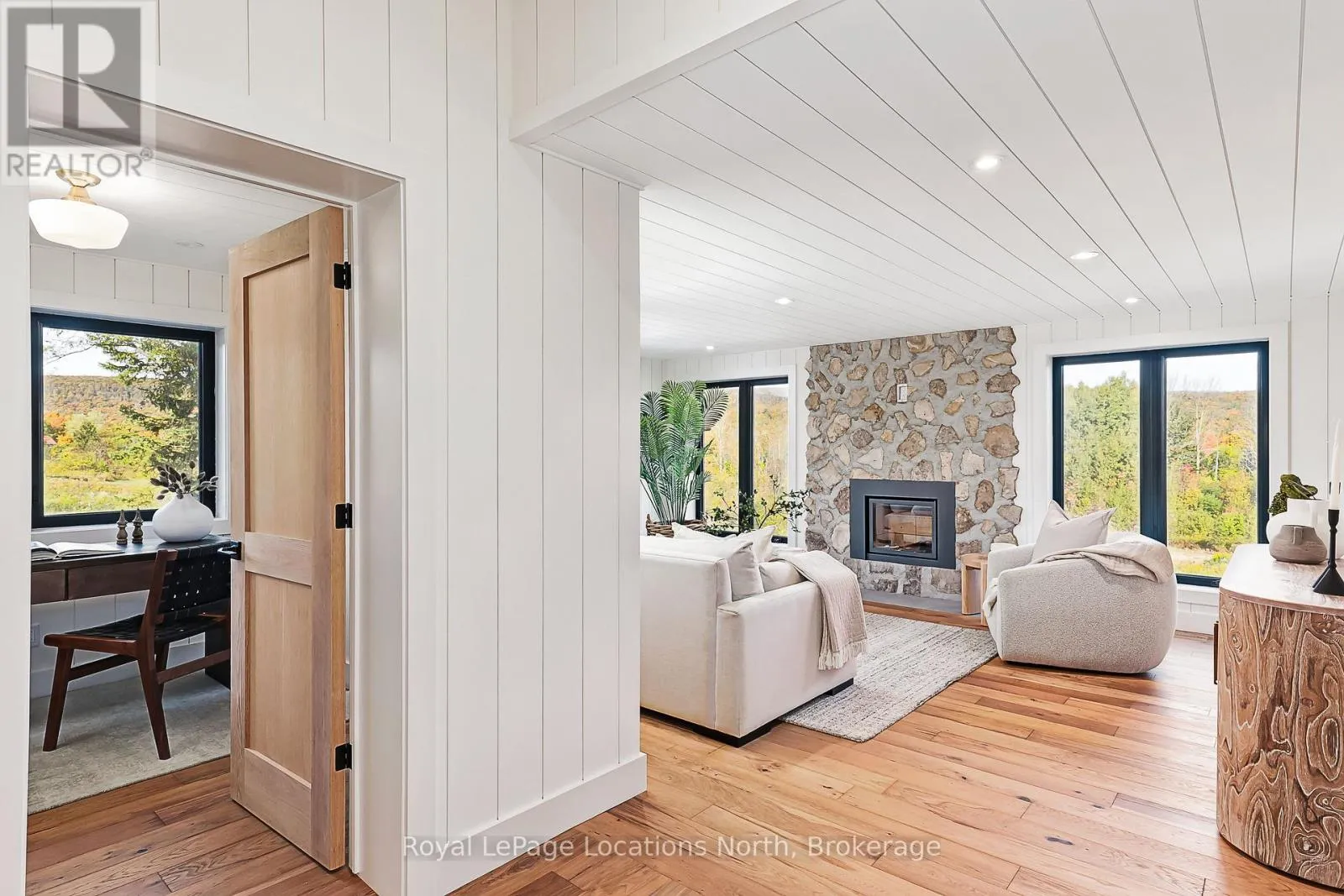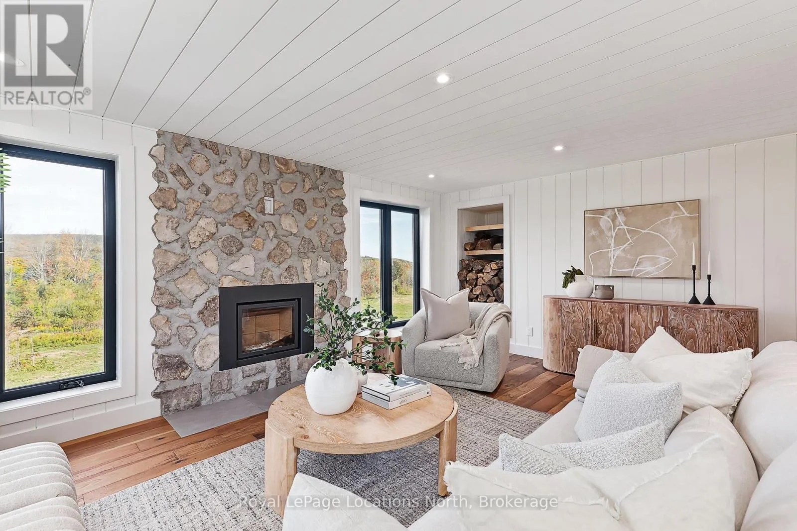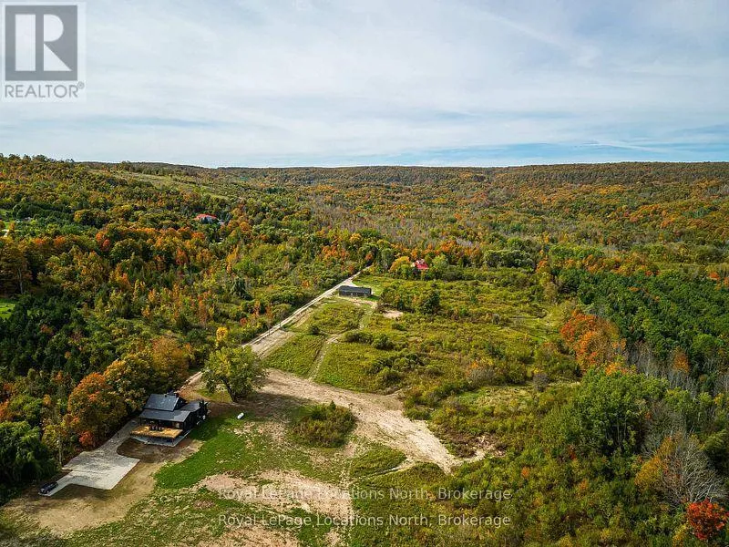 Cross Streets: Osprey-Blue Mountains Townline and Pretty River Road. ** Directions: North of the Osprey-Blue Mountains Townline, on the east side of Pretty River Road. A Serene Retreat in the Heart of Pretty River Valley. Set amidst the stunning landscape of the Pretty River Valley, this extraordinary property offers over 49 acres of pure tranquility. Completely reimagined inside & out, it blends the timeless charm of country living with the sophistication and comfort of a brand-new home. Here, privacy, panoramic views and a deep connection to nature come together to create an exceptional rural escape. Step inside to a bright and inviting open-concept main floor, where expansive windows fill the home with natural light. The chef-inspired kitchen features a large island, luxury appliances, a walkout to the deck and a dedicated prep room-perfect for entertaining. The warm and welcoming living room, centered around a stone wood-burning fireplace, provides the ideal spot to relax and enjoy the ever-changing beauty of each season. The main floor primary suite is a private haven, offering a spa-like ensuite, walk-in closet and walkout to the deck overlooking the breathtaking Pretty River Valley a short walk to the Pretty River Valley Provincial Park. Thoughtful details such as hardwood flooring, pot lights, shiplap accents and custom textures elevate the home's modern country aesthetic. A main floor office laundry room add everyday convenience. Upstairs, two spacious bedrooms & a stylish three-piece bathroom offer comfort and privacy for family or guests. The finished lower level extends the living space with a generous family room and walkout to a covered patio, a full bathroom, and a versatile extra room ideal for a bedroom, den, or home theatre. Outdoors, discover your own private paradise with trails, a waterfall and acres of natural beauty to explore-perfect for hiking, snowshoeing and quiet reflection. A detached triple garage/shop provides ample room for vehicles, equipment, or hobbies. Located just minutes from Blue Mountain, Collingwood, ski clubs and golf courses, this exceptional property is the ultimate four-season retreat. (id:27476)