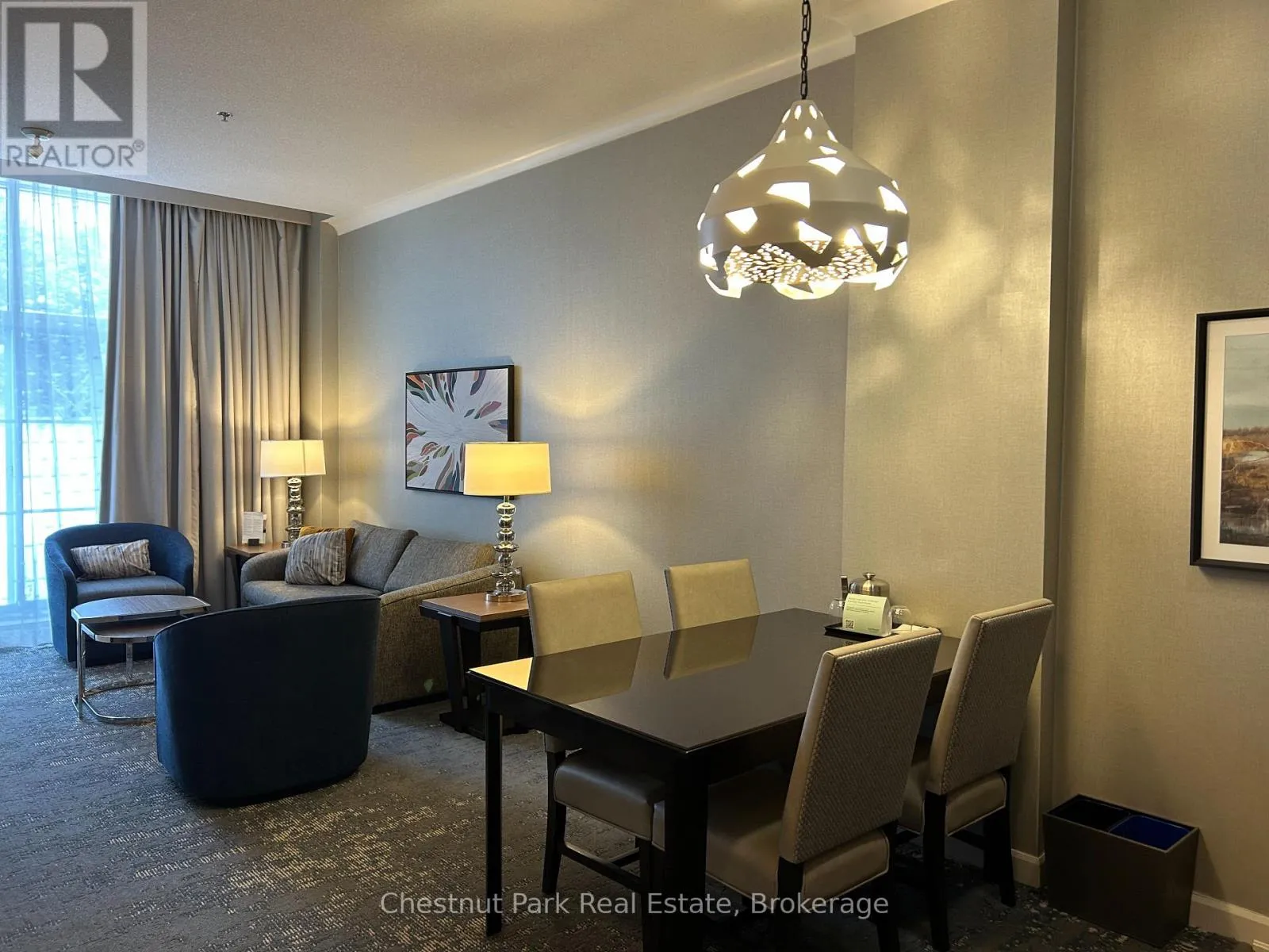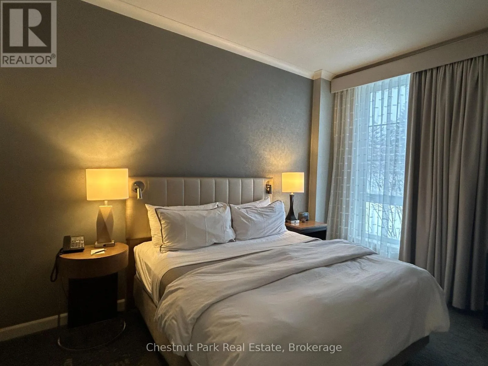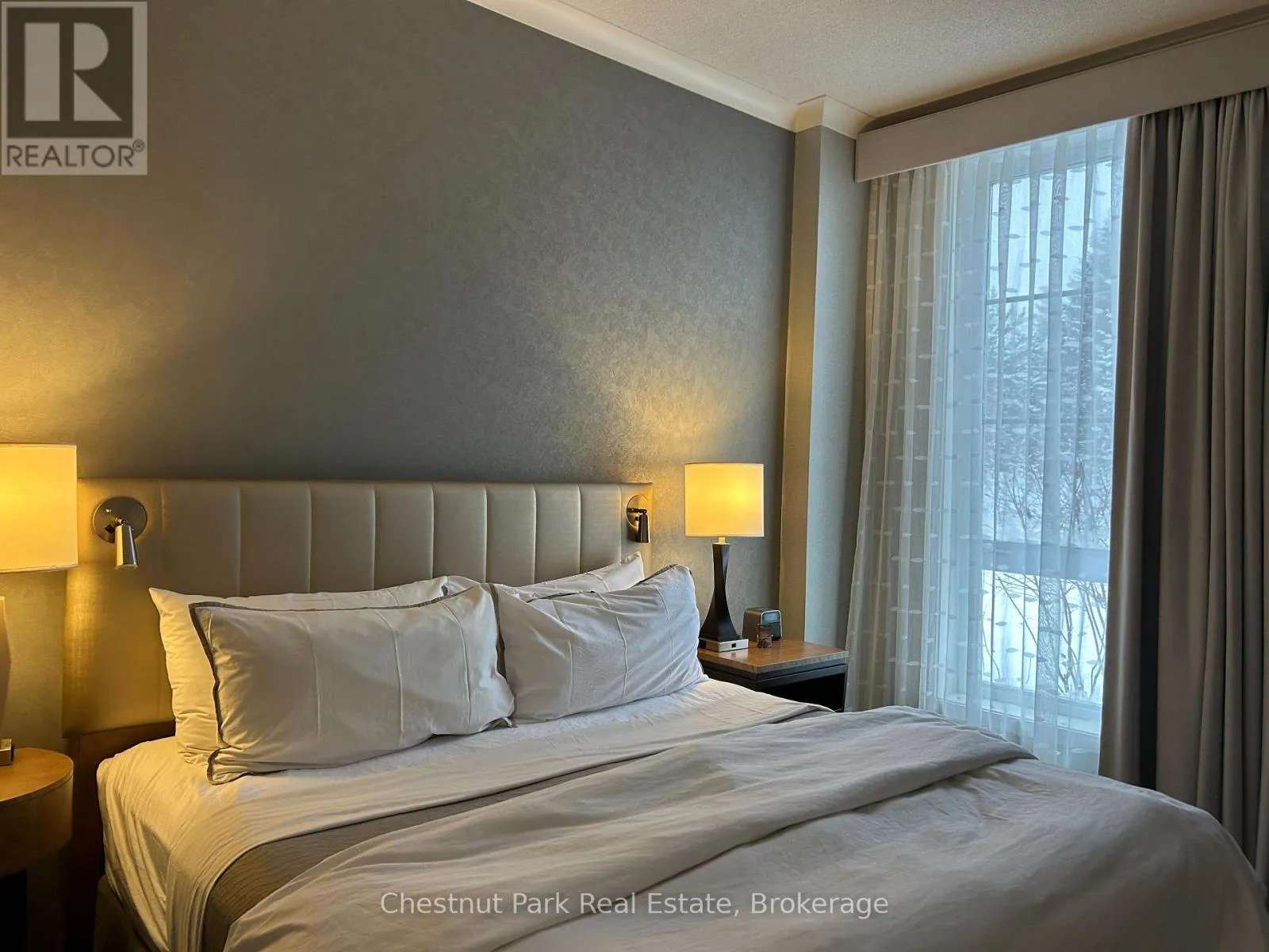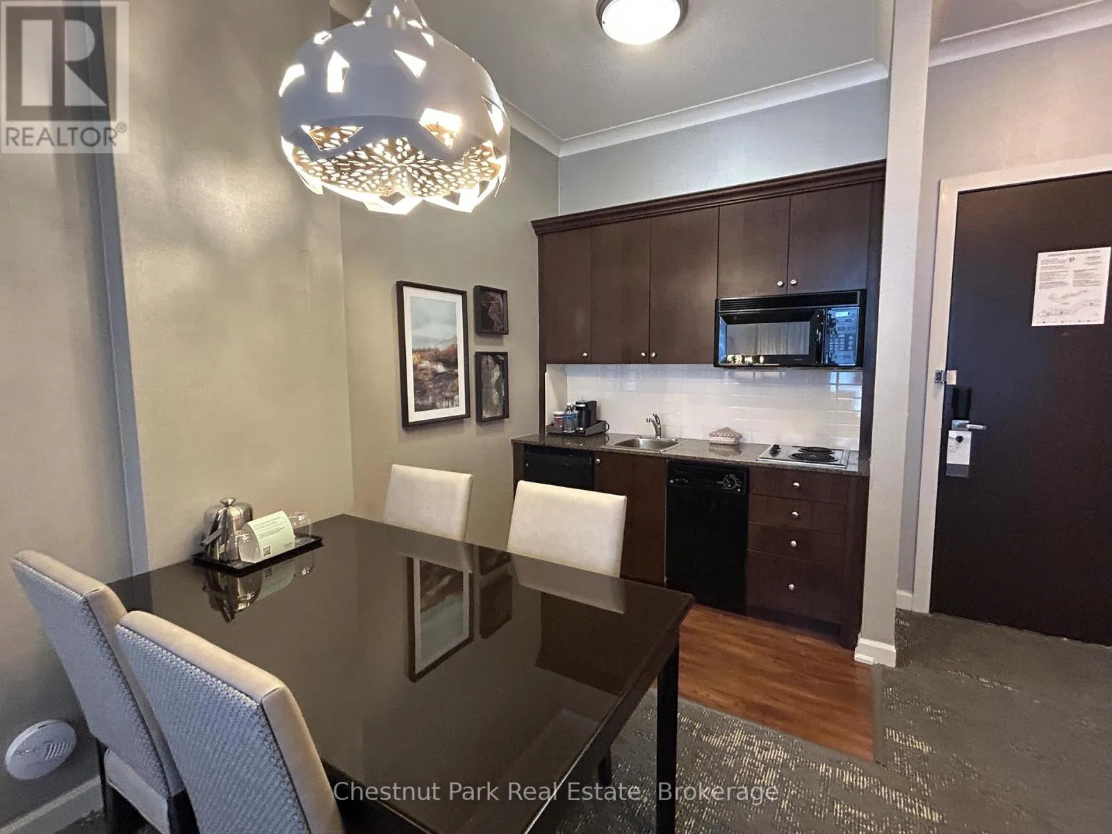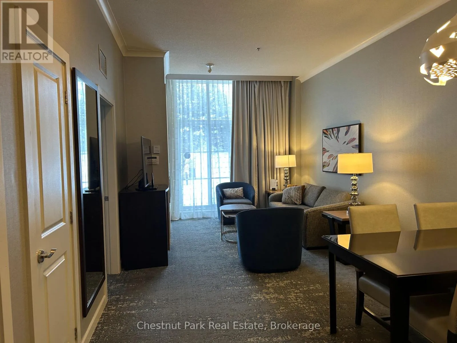 Cross Streets: Jozo Weider and Gord Canning Drive. ** Directions: Mountain Road to grey Rd. 19 to Gord Canning Drive. This 1 bedroom ground floor, recently renovated resort home, in the Westin Trillium House is right off the lobby, only 15 steps to the Oliver & Bonacini Restaurant and Bar and quick access to the fabulous Westin Amenities without taking an elevator. Check in at the beautiful lobby with the friendly staff and concierge service, walk down the hall a very short distance to your cozy personal getaway. Relax by the gas fireplace and gaze out to the lovely grounds. Your spacious unit has 10 ft ceilings which provide added light and air. Your kitchenette provides a stove top burner, bar fridge, dishwasher and everything you need to make up a snack or meal. Room Service is also available right to your door from your lobby restaurant. The location of this unit is perfect for you to take a break from the slopes as you have the ability to ski right to your patio, take off your skis, leave them on the patio and pop inside to grab a snack or cup of hot chocolate! When you're done for the day throw on your Heavenly Westin Robe and meander down to the Year-Round Heated outdoor swimming pool, hot tubs, and indoor sauna. The well-equipped Exercise Room is so close for those that want to start or end their day working out. End of the day hop into the spacious shower and enjoy a wonderful comfortable sleep in the Westin Heavenly Bed. Unit is currently in the fully turn-key Blue Mountain Rental Program which offers you the opportunity to use your resort home for up to 10 days per month, subject to the rental agreement terms and generate revenue to offset your expenses. Owners in the rental program receive their revenue deposits monthly. The Westin is a Pet Friendly building so room for your Pup to be with you. HST is in addition to sale price but can be deferred if an HST registrant. (id:27476)