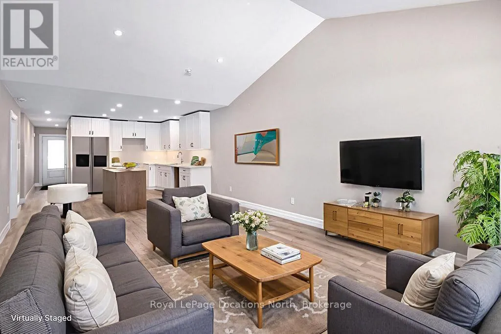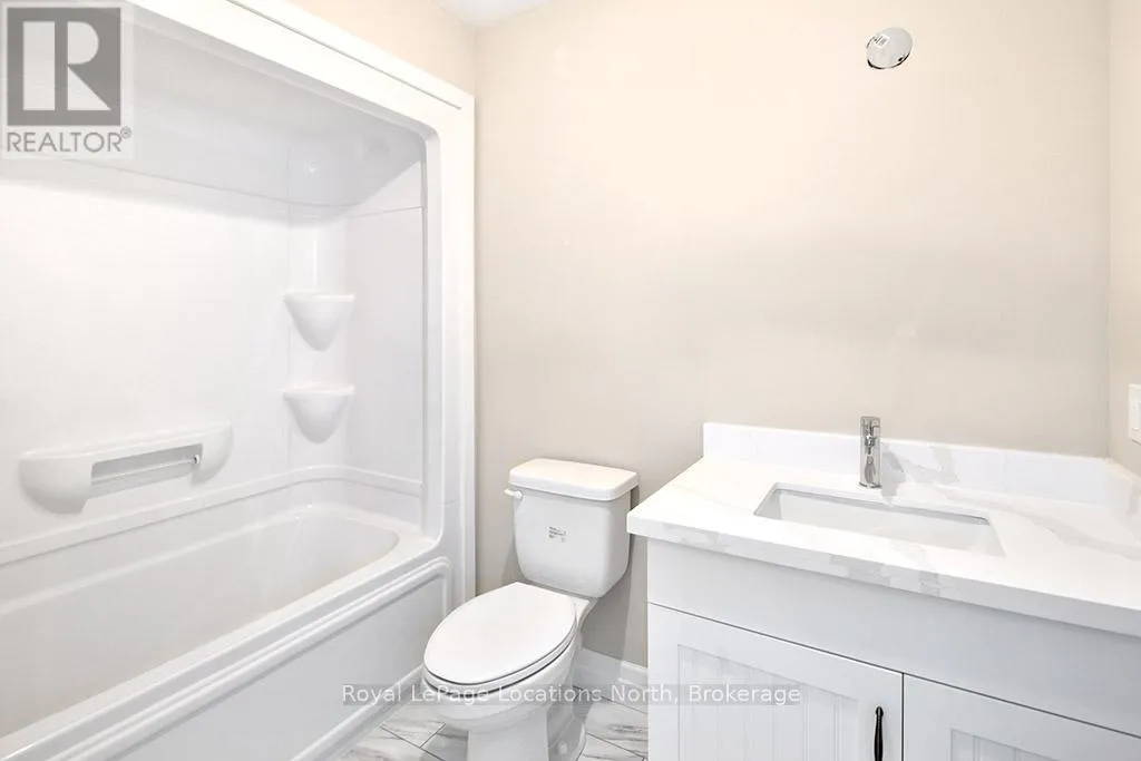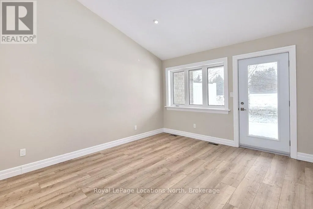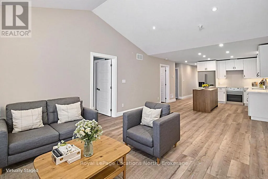 Cross Streets: Victoria St. S/Napier St West. ** Directions: Hwy 26 Thornbury west to Victoria St.S to Warbler Way to Dove Drive. In the heart of Thornbury, Thornbury Meadows is a welcoming 55+ land-lease community designed for easy living and a strong sense of neighbourhood connection. Newly constructed and offered directly by the Builder, this attractive bungalow townhouse features main-floor living with two bedrooms and two bathrooms. The thoughtfully planned open-concept layout is highlighted by vaulted ceilings that enhance the sense of space and natural light throughout the living and dining areas. A walk-out from the living room leads to the rear patio-perfect for enjoying quiet mornings or casual outdoor entertaining. The kitchen is well laid out with generous counter space and excellent functionality for daily use or hosting guests. The primary bedroom features a walk-in closet and a private 3-piece ensuite, while a second bedroom and full 4-piece bath offer flexibility for visitors, hobbies, or a home office. Practical features include main-floor laundry, ample storage, and an attached single-car garage with interior access. A charming covered front porch adds to the curb appeal. Thornbury Meadows is known for its walkability and community atmosphere, with convenient access to downtown Thornbury, the marina, parks, library, Georgian Trail, golf courses, and ski hills. An on-site exclusive recreation centre is currently under construction. One resident must be 55 years of age or older. Flexible possession! Easy to view! Other new homes are available within the development. (id:27476)