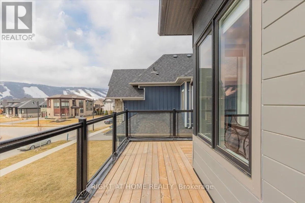 Cross Streets: Crosswinds And Springside. ** Directions: From Crosswinds Drive, turn onto Springside Drive, then right onto Stoneleigh Drive to #120. Welcome to a rare corner-lot retreat where mountain elegance meets effortless village living. Just an easy 8-minute walk to the heart of Blue Mountain Village, this exceptional home places world-class skiing, fine dining, spas, boutique shopping, and vibrant après-ski moments right at your doorstep-while still tucked into a quiet, upscale enclave.Inside, soaring 20-foot vaulted ceilings and expansive floor-to-ceiling windows flood the home with natural light. Wide-plank engineered hardwood flows through a bright, open-concept layout designed for both entertaining and unwinding after a day on the hill. The chef-inspired kitchen features modern upgrades and opens seamlessly to a lodge-style great room, complemented by a flexible office/den-perfect for hosting guests or creating a calm work-from-home escape.Upstairs, the primary suite is a true sanctuary with dramatic ceiling heights, a walk-in closet, and a spa-like 5-piece ensuite. Two additional bedrooms enjoy direct access to an elevated wraparound balcony, offering sweeping panoramic views-ideal for morning coffee or sunset wine.With 3,655 sq. ft. of finished living space plus a substantial 1,869 sq. ft. lower level ready to be customized as a gym, theatre, wine cellar, or games room, this home offers exceptional versatility to suit your lifestyle.As a member of the Blue Mountain Village Association, residents enjoy premium resort privileges including a private shuttle, members' beach club, and exclusive amenities-enhancing the ultimate après-ski indulgence. With year-round events, renowned dining, and outdoor adventure moments away, this property captures the very essence of luxury ski-village living. (id:27476)