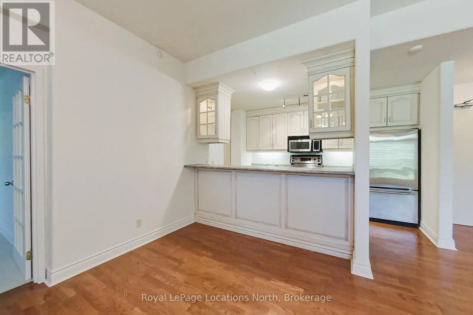 Cross Streets: Bay St E / Mill St. ** Directions: Hwy 26 to Mill St to building. Thornbury - Riverwalk - Waterfront building located in the heart of Thornbury. A spacious ground-floor suite featuring two bedrooms, a den, and two bathrooms - the largest non-penthouse unit in the building. Primary Ensuite features a walk-in tub/shower with water jets. The unit offers an in-suite laundry room and a cozy gas fireplace in the living room, which opens to a charming patio with stone stairs down to the roadway. California shutters in the living room & den. Large pantry area just off kitchen. Enjoy the convenience of underground parking. This exceptional property boasts a rooftop terrace and gym, as well as a building common room for social gatherings. Just steps away from the waterfront and marina, Riverwalk is centrally located near downtown Thornbury, offering easy access to shops, restaurants, and everything the area has to offer. **Condo Fee includes Heat, A/C, Water and Rogers Cable & Internet.** (id:27476)