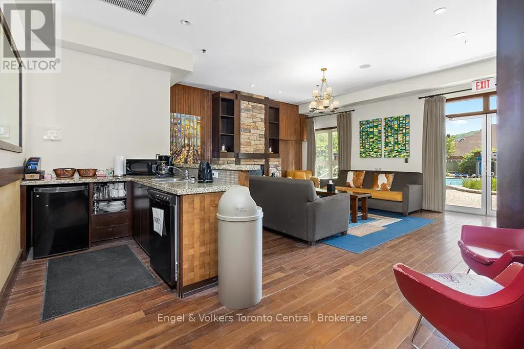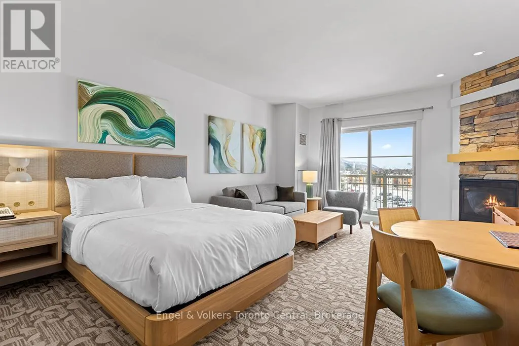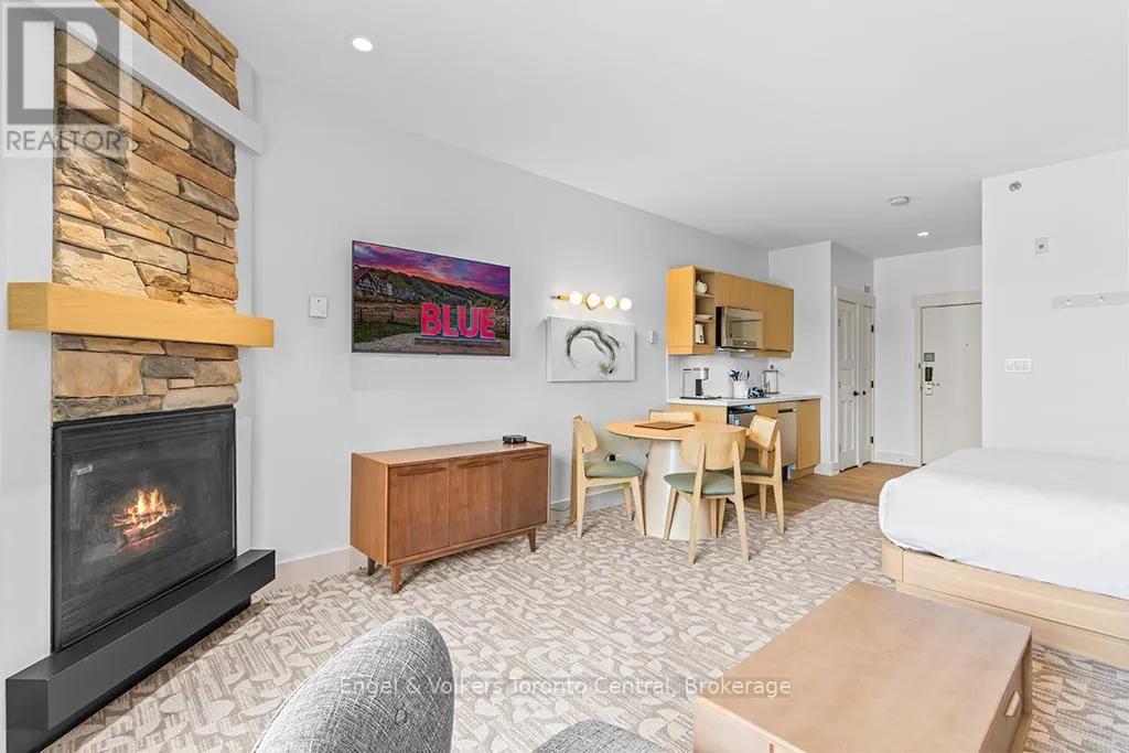 Cross Streets: Jozo Weider Blvd. ** Directions: Highway 26 to Mountain Road to Grey Road 19 to Jozo Weider Blvd. NEWLY RENOVATED FOURTH FLOOR GEM - BACHELOR RESORT CONDOMINIUM - Hip & Cool bachelor suite in Mosaic at Blue, located at the base of the ski slopes in Ontario's most popular four-season resort; Blue Mountain Village. This luxurious suite sleeps 4 (queen bed and pull-out couch) and is being sold fully furnished. Nine foot ceilings on the fourth floor makes the suite feel open and spacious. This gorgeous resort condominium is equipped with a full kitchenette with two stove-top burners and makes the suite feel incredibly spacious. Enjoy the view of Water Street. Mosaic at Blue offers a year-round outdoor heated swimming pool, an over-sized free form year-round outdoor hot tub, sauna, fitness room, private owners lounge and two levels of heated underground parking. Blue Mountain Resort offers owners a full service rental program to help offset operating expenses while still allowing liberal owner usage. HST is applicable but can be deferred. 2% BMVA one-time entry fee is applicable. Condo fees include utilities. The suite was completely refurbished and completed December 2025. (id:27476)