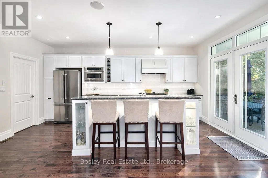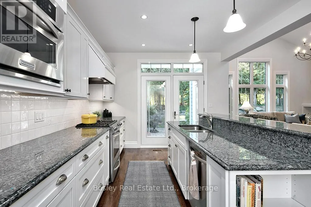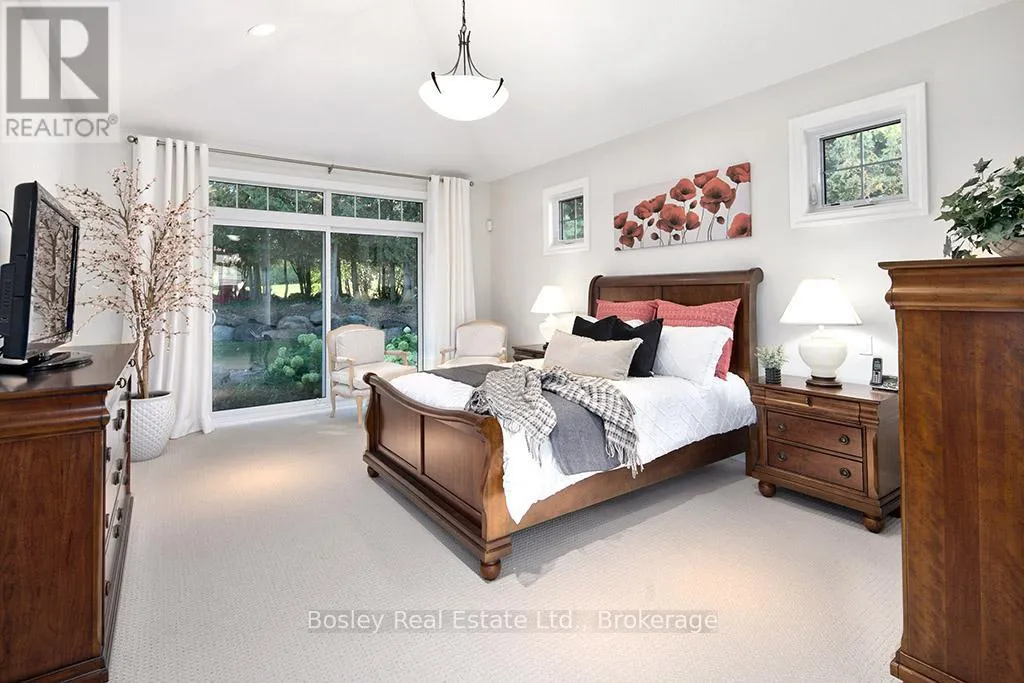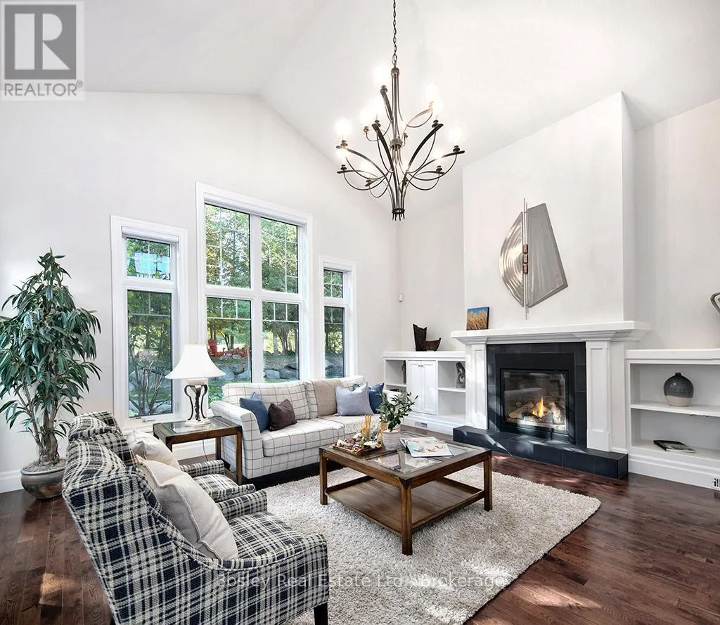 Cross Streets: HIGHWAY 26 TO LORA BAY, LEFT AT THE ROUNDABOUT TO LANDRY LANE. ** Directions: From hwy 26 turn on to Lora Bay Drive. Third exit at roundabout. Left on landry. property on left. Introducing a stunning 5-bedroom custom residence by renowned builder Dezign2000, perfectly situated in the exclusive Lora Bay community. Backing onto the driving range and surrounded by mature trees and landscaped gardens, this home offers luxurious seclusion and refined living. Inside, wide-plank oak floors, soaring ceilings, and timeless design set the tone. The gourmet kitchen features white shaker cabinetry, granite counters, gas cooktop, and walkout to a private terrace. The great room impresses with vaulted ceilings, custom built-ins, and a dramatic gas fireplace. The main-floor primary suite is a tranquil retreat with garden access, walk-in closet, and a spa-like ensuite with heated floors, soaker tub, and glass shower. A formal dining room (or office), powder room, laundry with garage access, and oversized double garage complete the main level.Upstairs offers two guest bedrooms, a sitting area, and a beautifully appointed bathroom. The finished lower level expands your space with two more bedrooms, a den, spacious rec. room, bathroom with heated floors, large storage room, and cold cellar. Additional features include a built-in home audio system (ceiling and in-wall speakers, home audio connection), whole-house air purification system, brand-new furnace (March 2025). The exterior was fully painted in 2023.Outdoors, enjoy stone pathways, lush perennial gardens, and a private patio oasis. Just a short walk to the beautiful Georgian Trail system and minutes from Thornbury. Lora Bay residents enjoy two private beaches, championship golf, members lodge, dining, and curated social events. Indulge in a four season lifestyle that's sure to impress. Community fees (GCECC): $2,280/year. (id:27476)