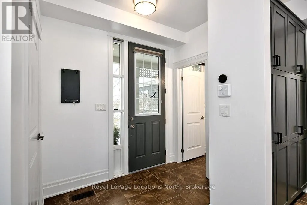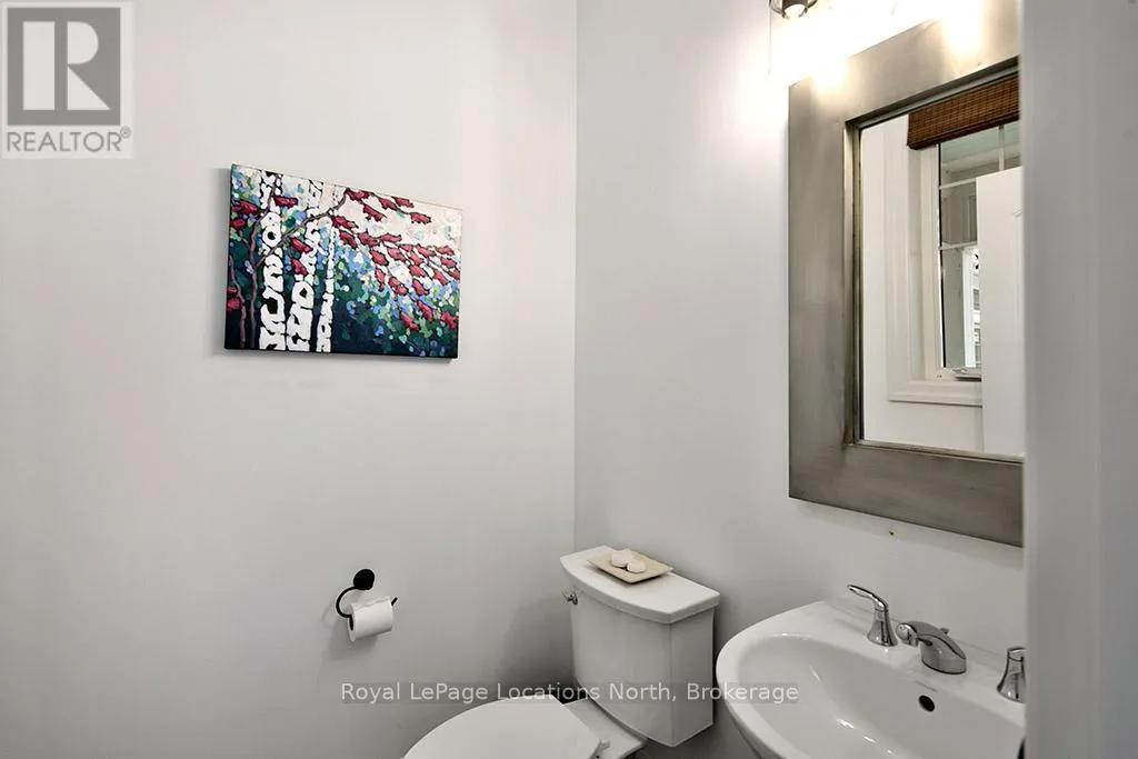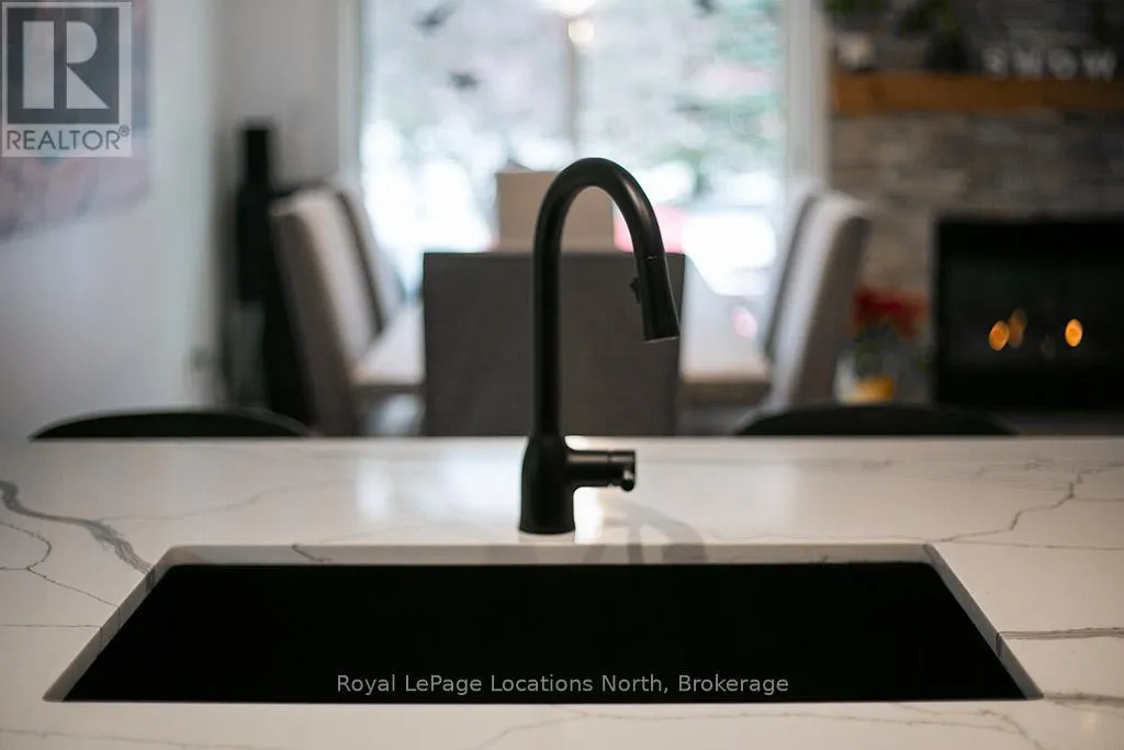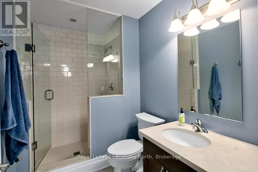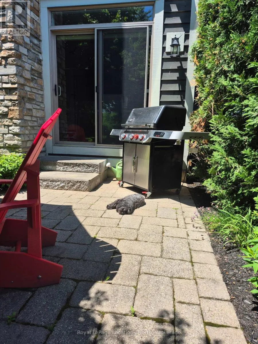 Cross Streets: West Ridge Drive & Landry LAne. ** Directions: Hwy 26 Thornbury west to Lora Bay Dr to traffic circle to 3rd exit West Ridge Dr to Landry Lane to 108 to Townhouse 1 on far right. This sun-filled end-unit villa in sought-after Lora Bay offers a refined yet comfortable living experience, thoughtfully updated for today's lifestyle. The main floor is designed for easy living and entertaining, featuring an open layout with hardwood flooring throughout. The updated kitchen showcases sleek new stainless appliances, stunning countertops, and a contemporary backsplash, flowing effortlessly into the dining area and inviting living space. A gas fireplace with stone surround anchors the living room, with direct access to a private stone patio framed by mature trees and greenery-ideal for relaxing or hosting outdoors. A powder room completes this level. Upstairs, two generously sized bedrooms each enjoy their own private ensuite, creating excellent separation and comfort for owners and guests alike. Convenient upper-level laundry and additional storage add to the home's practicality. The finished lower level expands the living space with a spacious recreation room suitable for movie nights, hobbies, or guest overflow, complemented by a full 3-piece bathroom. An attached double garage provides plenty of space for vehicles, storage, and outdoor equipment. Residents enjoy the exceptional Lora Bay lifestyle, with access to waterfront amenities, golf, walking trails, and the Clubhouse which includes a gym, lounge areas, and a restaurant. Just minutes to the ski hills and the vibrant communities of Thornbury and Meaford. (id:27476)