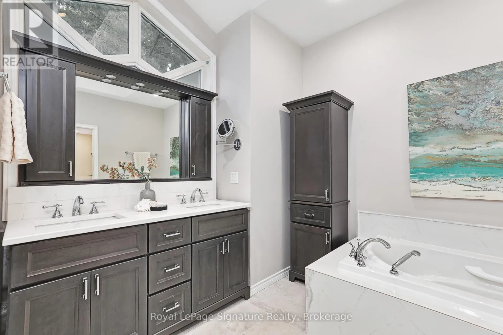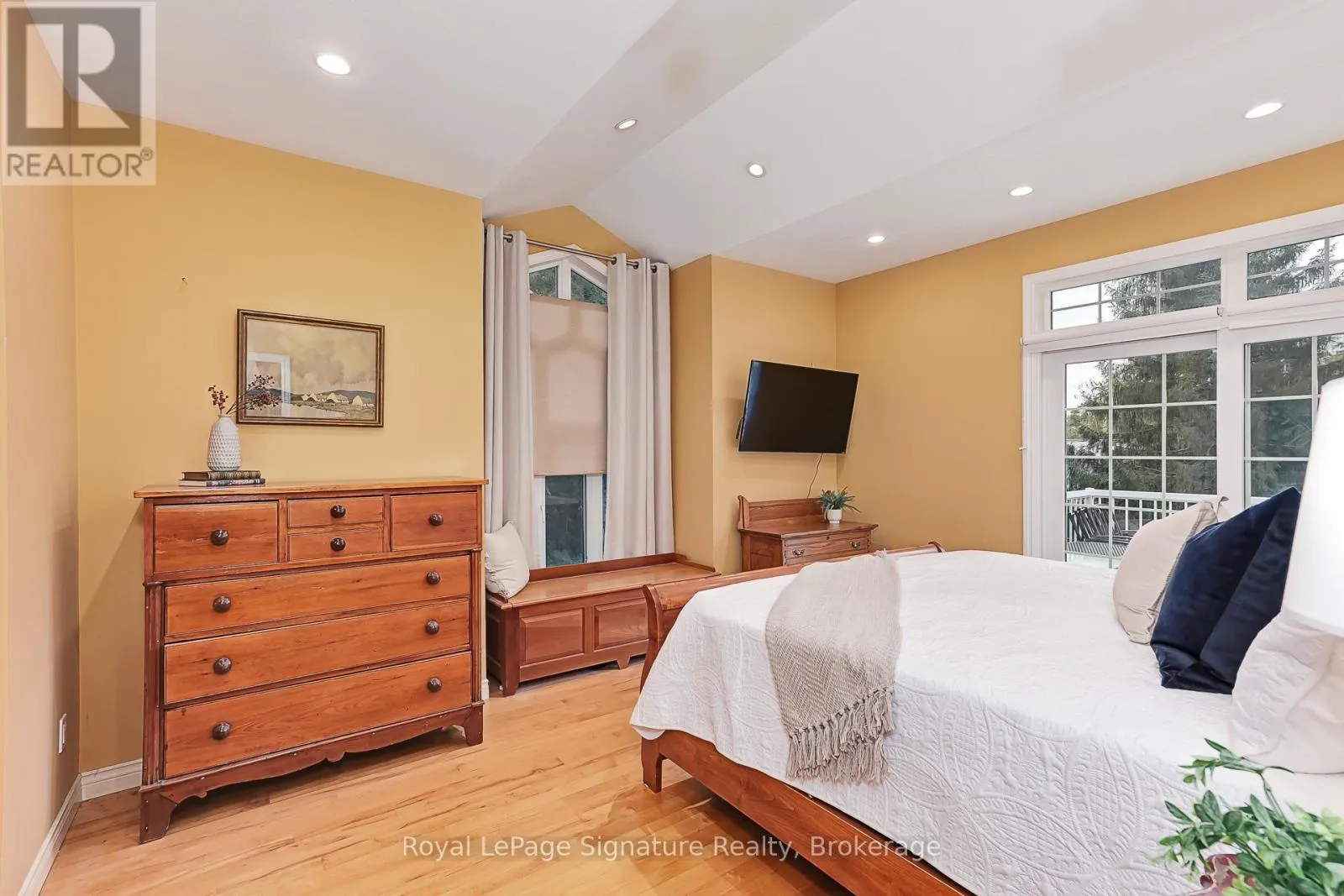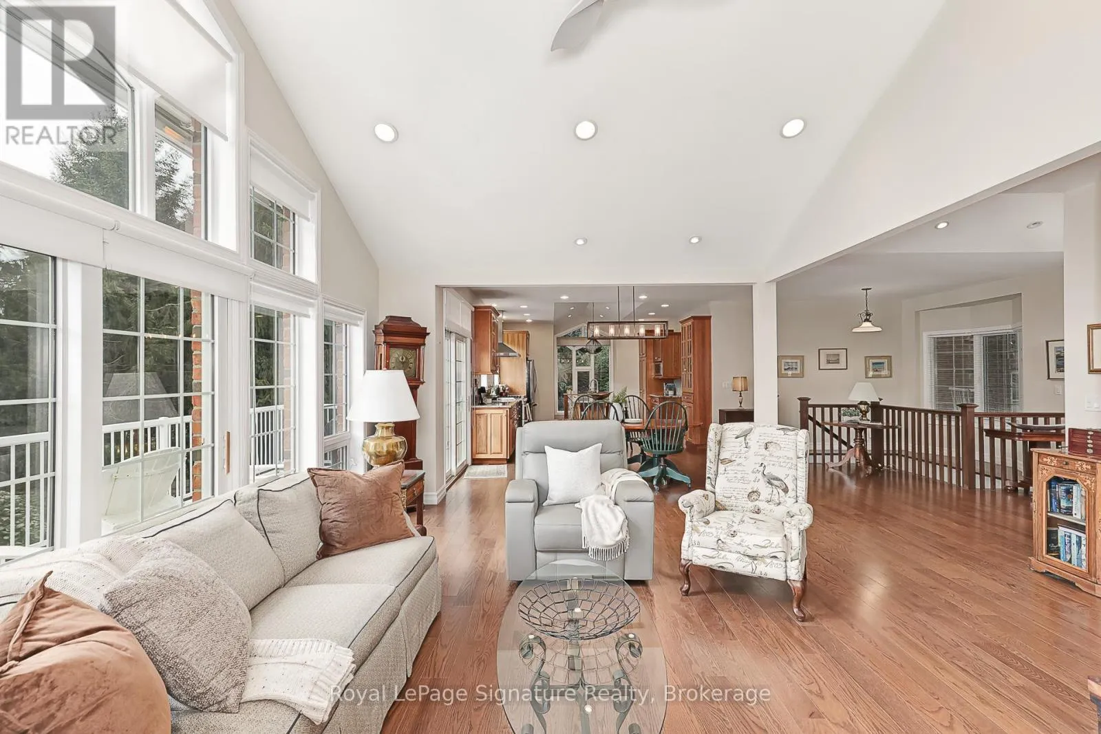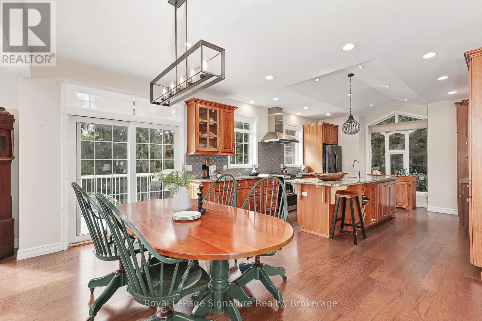 Cross Streets: Marsh Street. ** Directions: Grey 13 to Russell. Welcome to 180 Russell, an exceptional brick residence that blends privacy, elegance, and outstanding outdoor living. Set on a rolling, professionally landscaped lot, the property is framed by stone walkways, soldier stone detailing along the driveway, and a stamped concrete entry, creating striking curb appeal from the moment you arrive. Designed for year-round enjoyment, the backyard is a true retreat, featuring a tranquil waterfall, outdoor fireplace, expansive deck, covered patios, and a walk-out lower level-perfect for effortless entertaining and relaxed outdoor living. Inside, the main level offers a bright, open-concept layout where the kitchen, dining, and living areas flow seamlessly together. Large sliding doors extend the living space to a generous deck overlooking the private, serene yard. The primary suite is a private haven with his-and-hers closets and a spa-inspired ensuite with heated floors. A flexible office or den, a full bathroom, convenient laundry, and direct garage access complete the main floor. The fully finished lower level is ideal for hosting and extended family, featuring a spacious family room with gas fireplace, three additional bedrooms, a full bath, and a two-piece bath. Radiant in-floor heating ensures year-round comfort, while the thoughtfully designed second kitchen-equipped with a cooktop, sink, dishwasher, bar fridge, and beverage fridge-enhances both indoor and outdoor entertaining. With its own walk-outs, bedrooms, bathrooms, and kitchen, this level also offers excellent potential for a private in-law suite.Additional highlights include a covered front porch, a two-car garage with inside entry, beautifully curated landscaping, and a Wi-Fi-enabled smart irrigation system for easy lawn and garden maintenance. With its exceptional outdoor spaces, generous interior layout, and peaceful setting, 180 Russell delivers the perfect balance of comfort, functionality, and refined living. (id:27476)