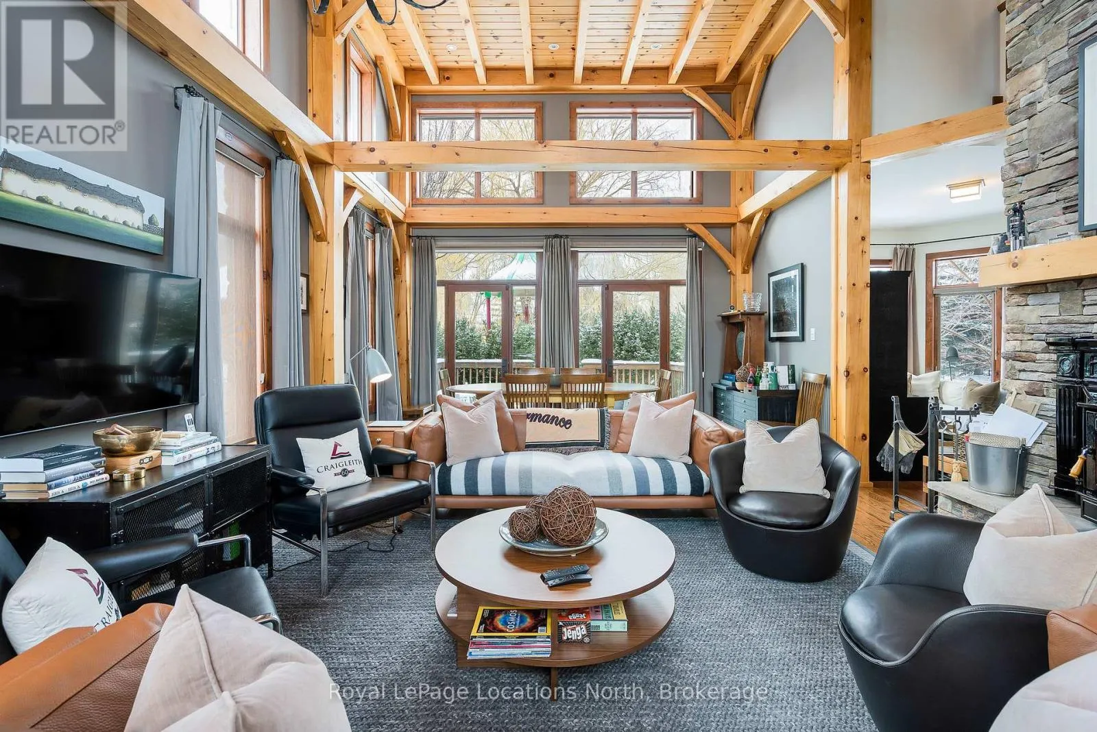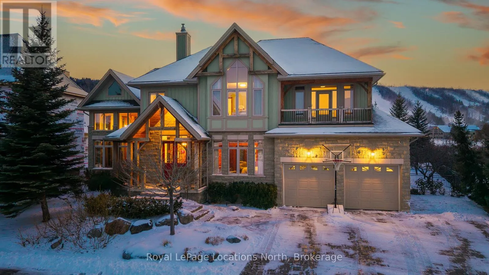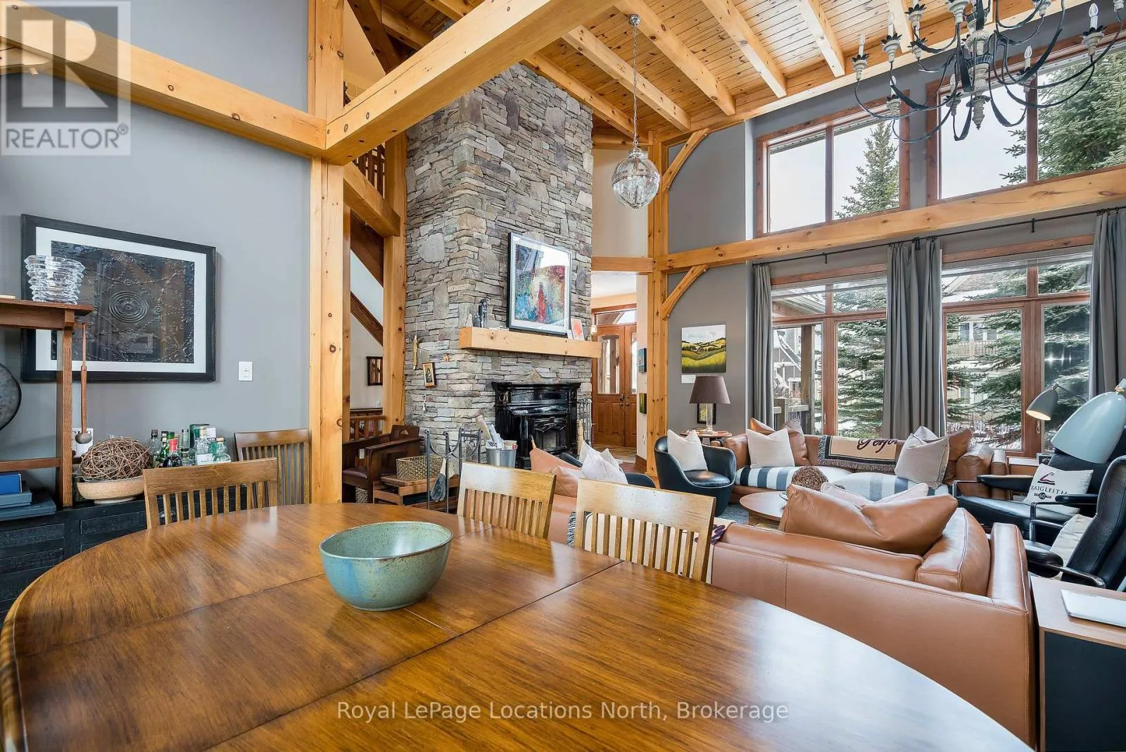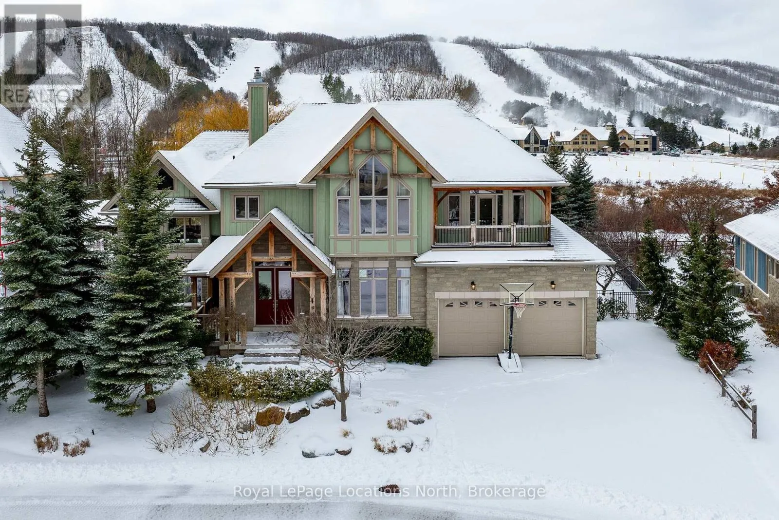 Cross Streets: Birches Boulevard and National Drive. ** Directions: From Hwy 26 head South on Grey Road 19 towards Blue Mountain Village, turn right onto Birches Boulevard, then right onto National Drive to #143. Cherished by the same family for over 15 years, this spacious 7-bedroom, 5-bath Lake Louise model in the sought-after Orchard community is ready for its next owners. Ideally located within walking distance to Craigleith Ski Club and Toronto Ski Club, and just minutes from Alpine, Blue Mountain Resort, and Northwinds Beach, this property offers exceptional four-season living. With over 4,000 sq. ft. of finished space, the home is designed for gathering and relaxation. The dramatic great room features a double-height ceiling, hardwood floors, beam accents, and a stunning double-storey stone wood-burning stove with a pine mantel. The main floor includes a guest bedroom, a 3-piece bathroom with a steam shower, a large kitchen with granite counters, gas range, island, walk-in pantry, and buffet/serving area, plus a cozy sitting area. The mudroom serves as main-floor laundry and opens to a covered BBQ porch.Upstairs you'll find four generous bedrooms and three full bathrooms, including a primary suite with a walk-in closet and ensuite featuring a soaker tub and glass shower. One guest room includes a private ensuite, another offers a balcony, and a full bath plus walk-in linen closet complete this level. Seasonal ski-hill views can be enjoyed in winter, with lush privacy in summer. The fully finished lower level adds two more bedrooms, a bathroom, sauna, two recreation areas, and excellent storage for gear.Outside, the premium lot backs onto Craigleith Ski Club and features mature landscaping, apple trees, a play set and swings, and a gate leading to a walking path directly to the club. A double-car garage with EV charger completes this exceptional offering. A rare opportunity in an unmatched location. (id:27476)