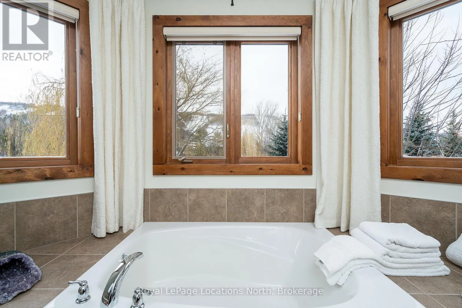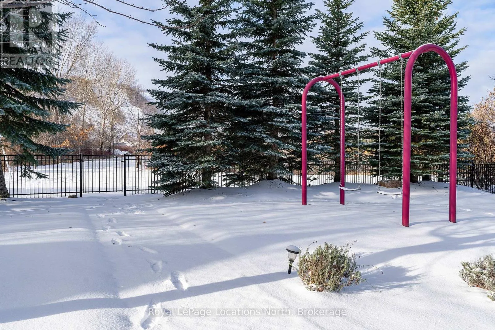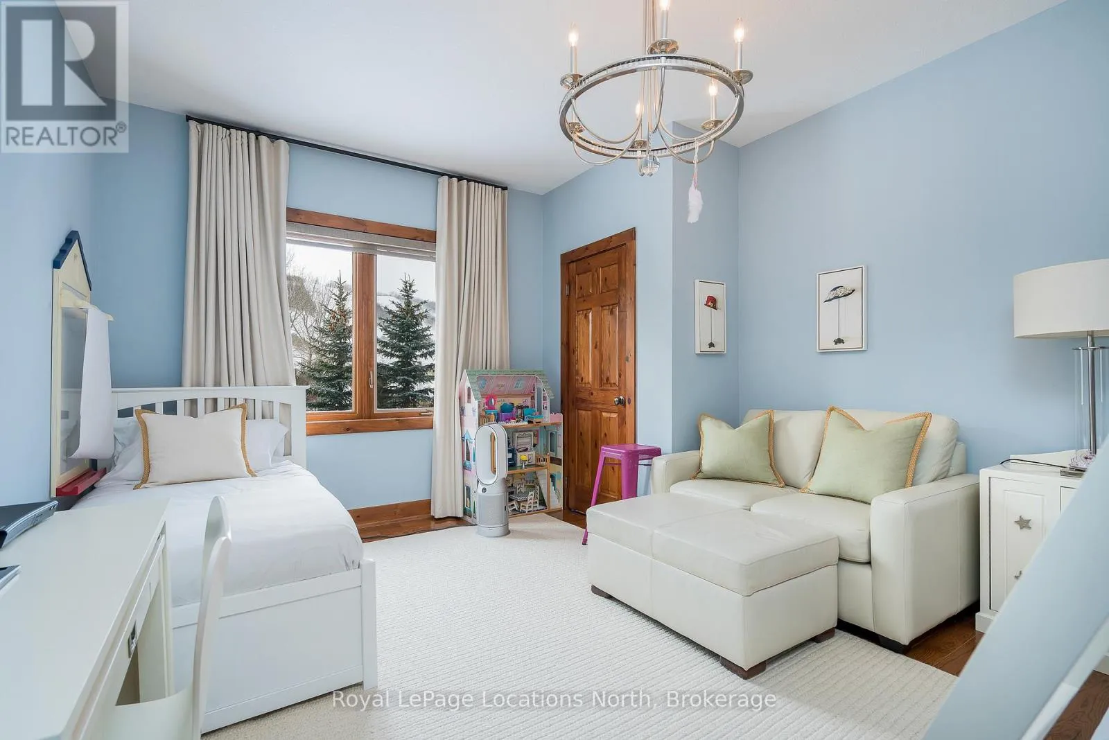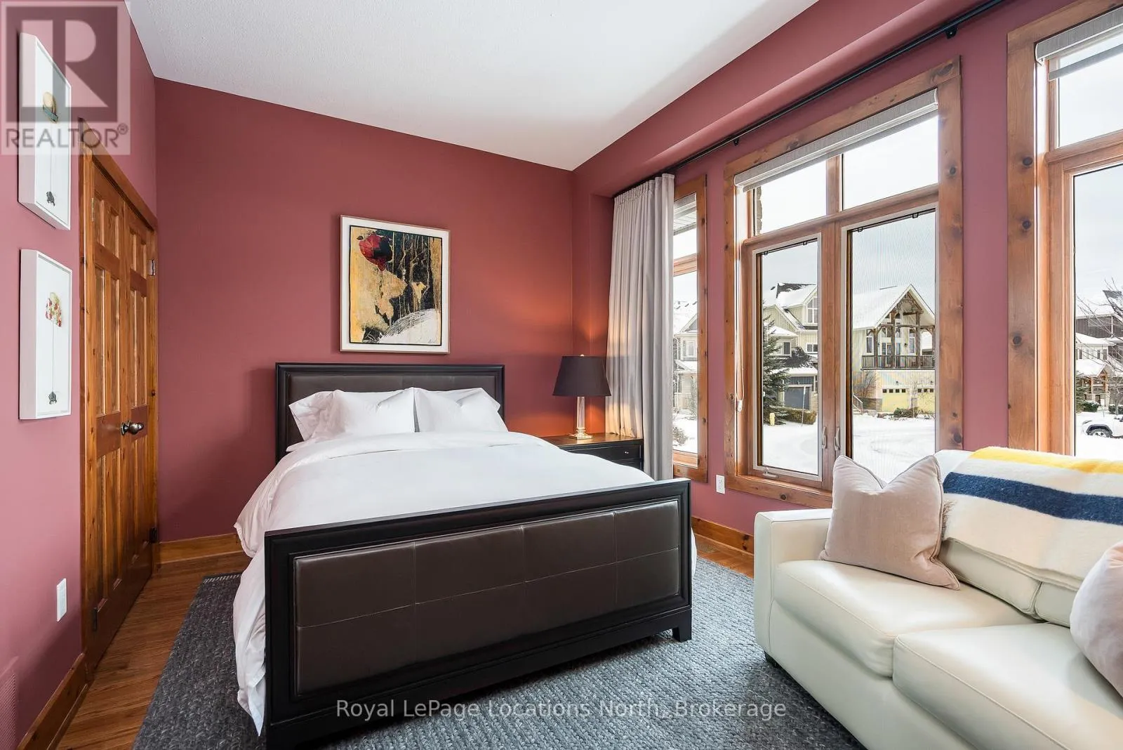 Cross Streets: Birches Boulevard and National Drive. ** Directions: From Hwy 26 head South on Grey Road 19 towards Blue Mountain Village, turn right onto Birches Boulevard, then right onto National Drive to #143. Cherished by the same family for over 15 years, this spacious 7-bedroom, 5-bath Lake Louise model in the sought-after Orchard community is ready for its next owners. Ideally located within walking distance to Craigleith Ski Club and Toronto Ski Club, and just minutes from Alpine, Blue Mountain Resort, and Northwinds Beach, this property offers exceptional four-season living. With over 4,000 sq. ft. of finished space, the home is designed for gathering and relaxation. The dramatic great room features a double-height ceiling, hardwood floors, beam accents, and a stunning double-storey stone wood-burning stove with a pine mantel. The main floor includes a guest bedroom, a 3-piece bathroom with a steam shower, a large kitchen with granite counters, gas range, island, walk-in pantry, and buffet/serving area, plus a cozy sitting area. The mudroom serves as main-floor laundry and opens to a covered BBQ porch.Upstairs you'll find four generous bedrooms and three full bathrooms, including a primary suite with a walk-in closet and ensuite featuring a soaker tub and glass shower. One guest room includes a private ensuite, another offers a balcony, and a full bath plus walk-in linen closet complete this level. Seasonal ski-hill views can be enjoyed in winter, with lush privacy in summer. The fully finished lower level adds two more bedrooms, a bathroom, sauna, two recreation areas, and excellent storage for gear.Outside, the premium lot backs onto Craigleith Ski Club and features mature landscaping, apple trees, a play set and swings, and a gate leading to a walking path directly to the club. A double-car garage with EV charger completes this exceptional offering. A rare opportunity in an unmatched location. (id:27476)