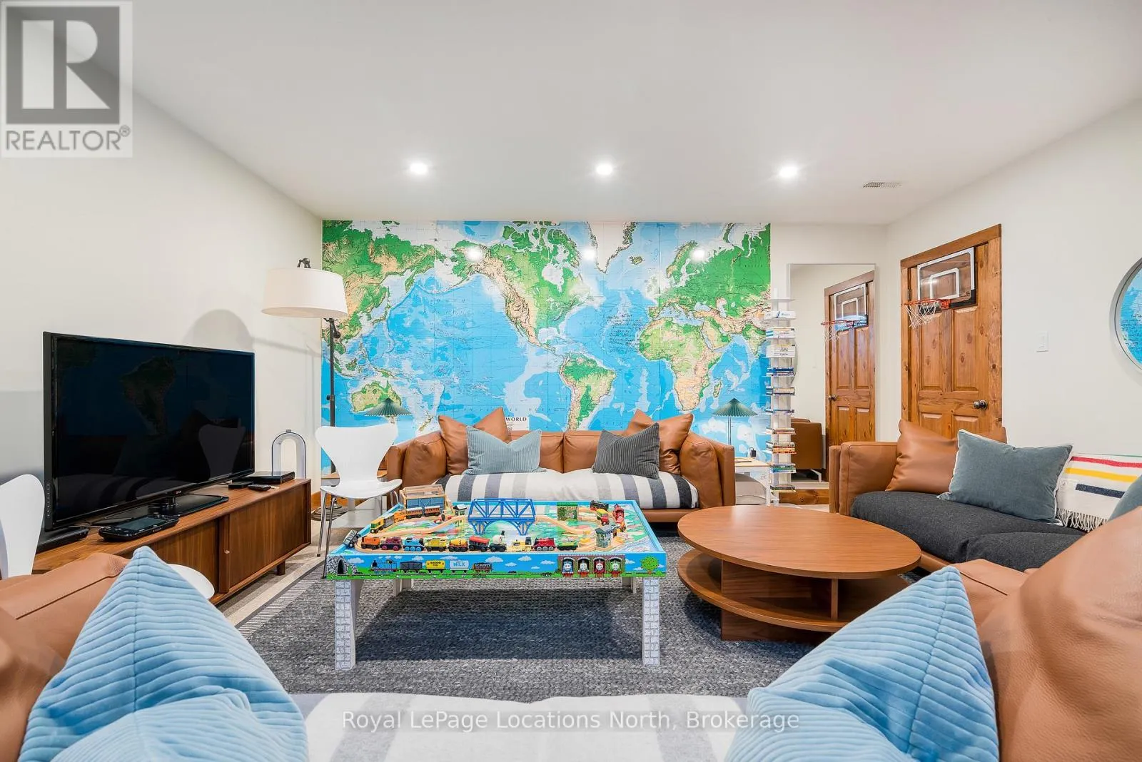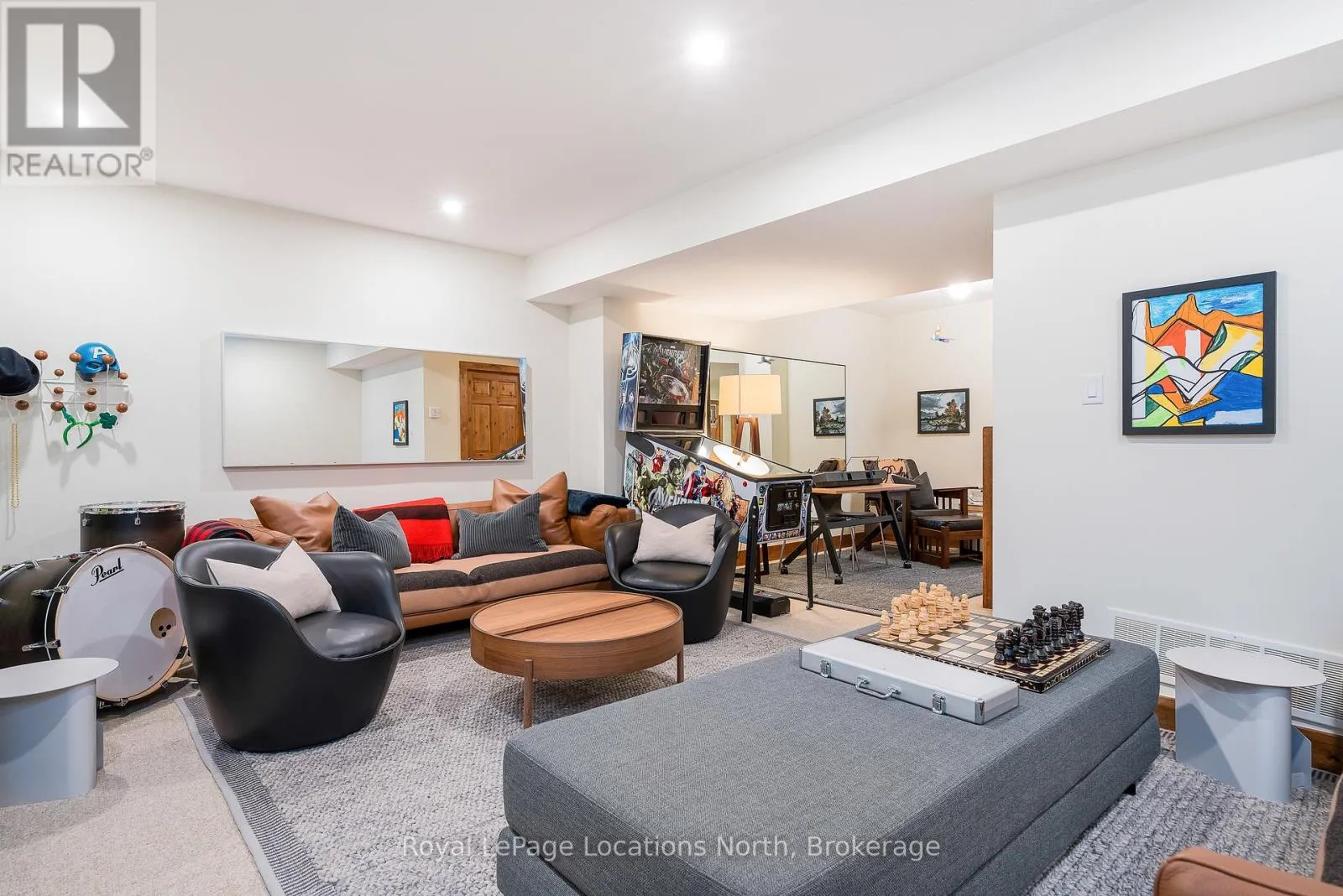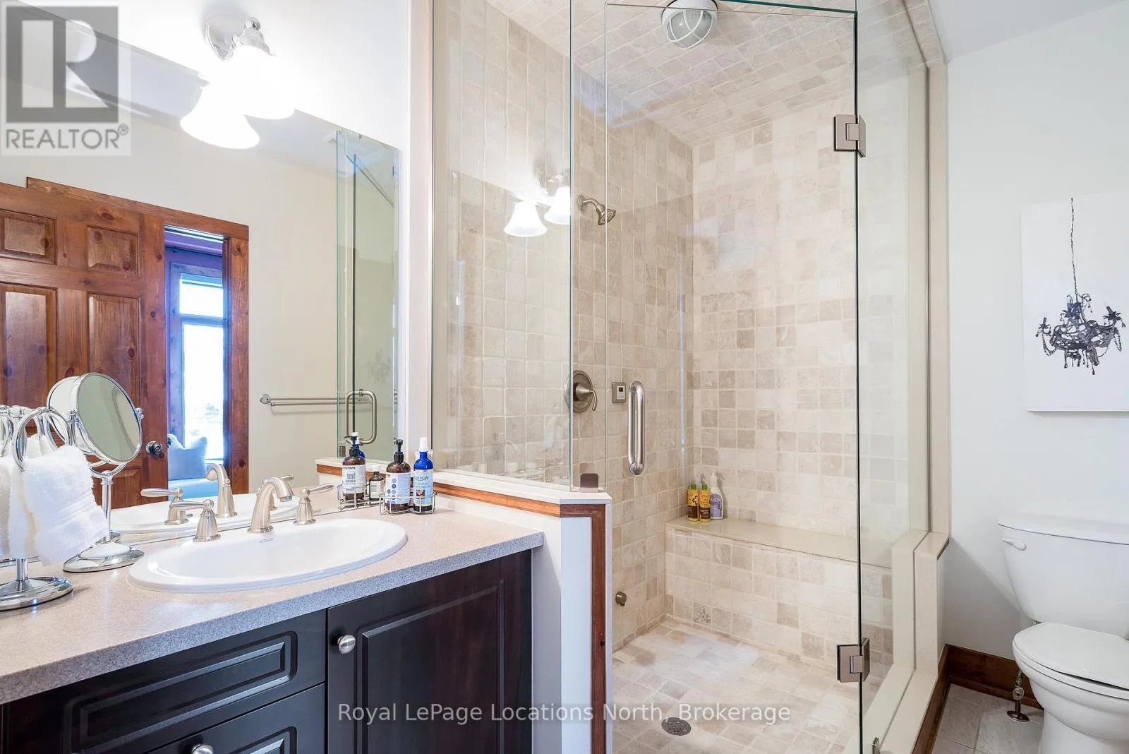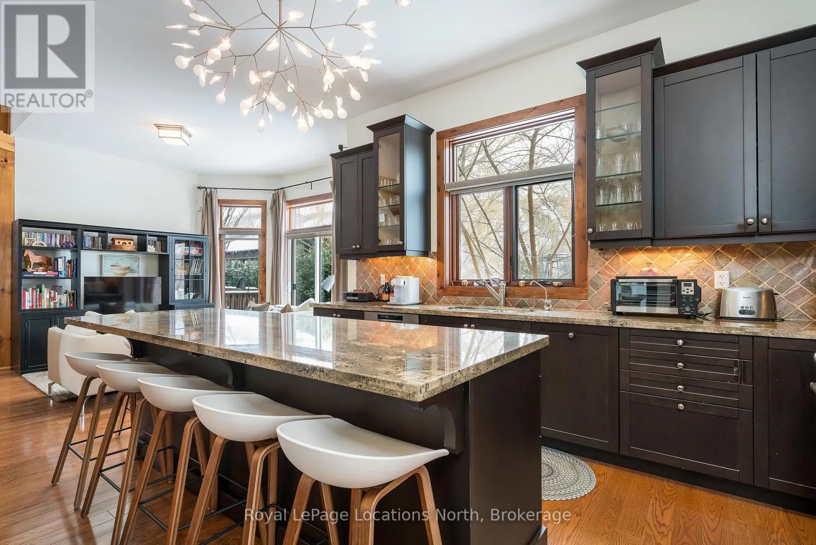 Cross Streets: Birches Boulevard and National Drive. ** Directions: From Hwy 26 head South on Grey Road 19 towards Blue Mountain Village, turn right onto Birches Boulevard, then right onto National Drive to #143. Cherished by the same family for over 15 years, this spacious 7-bedroom, 5-bath Lake Louise model in the sought-after Orchard community is ready for its next owners. Ideally located within walking distance to Craigleith Ski Club and Toronto Ski Club, and just minutes from Alpine, Blue Mountain Resort, and Northwinds Beach, this property offers exceptional four-season living. With over 4,000 sq. ft. of finished space, the home is designed for gathering and relaxation. The dramatic great room features a double-height ceiling, hardwood floors, beam accents, and a stunning double-storey stone wood-burning stove with a pine mantel. The main floor includes a guest bedroom, a 3-piece bathroom with a steam shower, a large kitchen with granite counters, gas range, island, walk-in pantry, and buffet/serving area, plus a cozy sitting area. The mudroom serves as main-floor laundry and opens to a covered BBQ porch.Upstairs you'll find four generous bedrooms and three full bathrooms, including a primary suite with a walk-in closet and ensuite featuring a soaker tub and glass shower. One guest room includes a private ensuite, another offers a balcony, and a full bath plus walk-in linen closet complete this level. Seasonal ski-hill views can be enjoyed in winter, with lush privacy in summer. The fully finished lower level adds two more bedrooms, a bathroom, sauna, two recreation areas, and excellent storage for gear.Outside, the premium lot backs onto Craigleith Ski Club and features mature landscaping, apple trees, a play set and swings, and a gate leading to a walking path directly to the club. A double-car garage with EV charger completes this exceptional offering. A rare opportunity in an unmatched location. (id:27476)