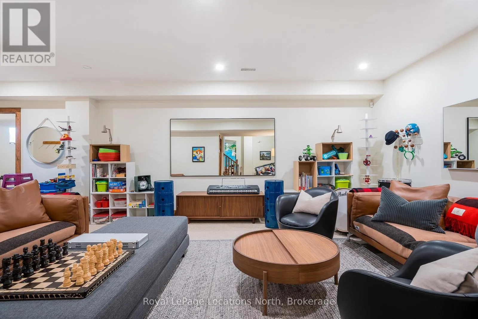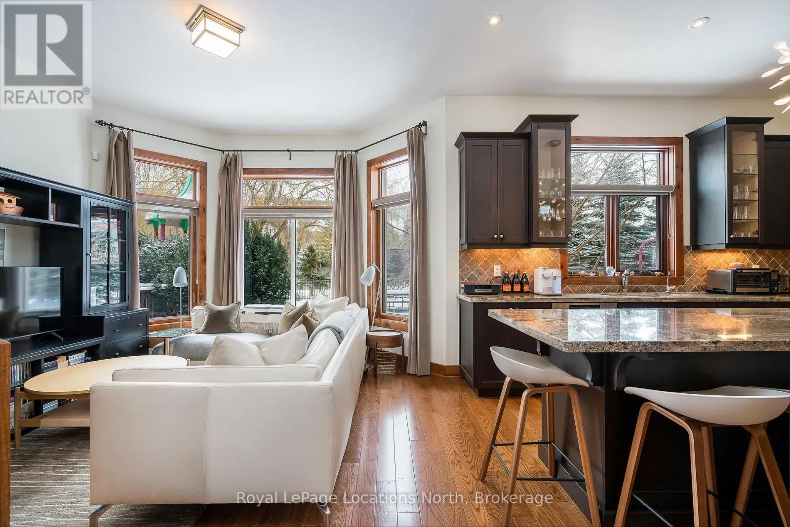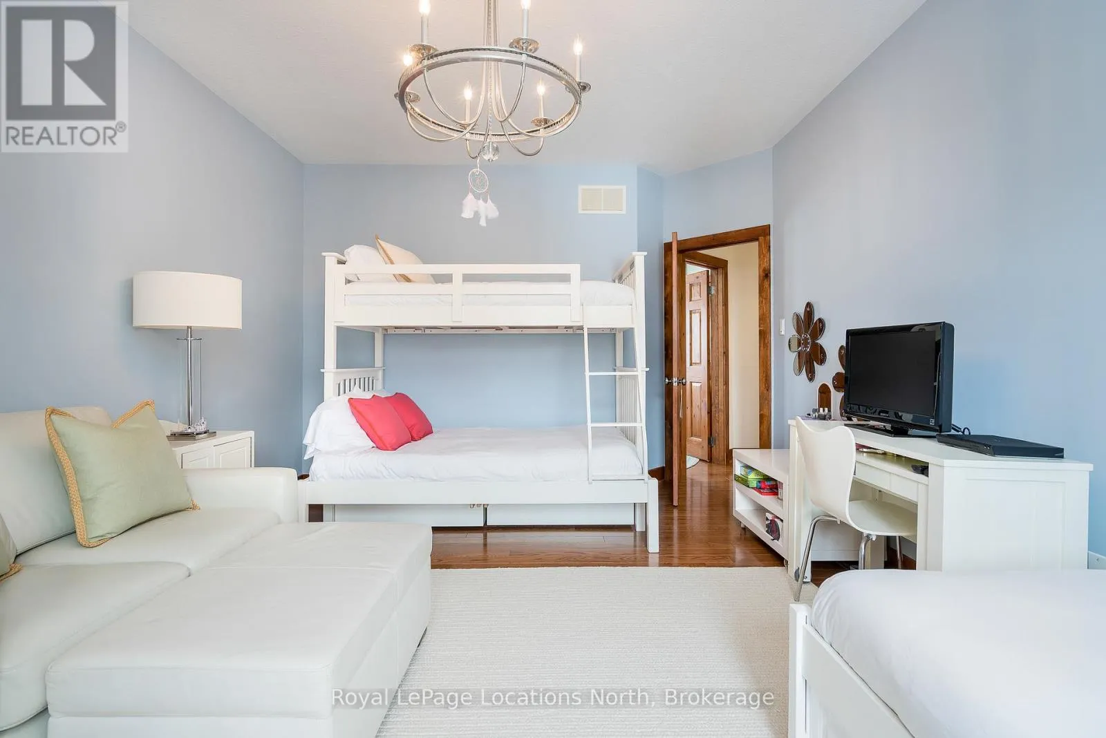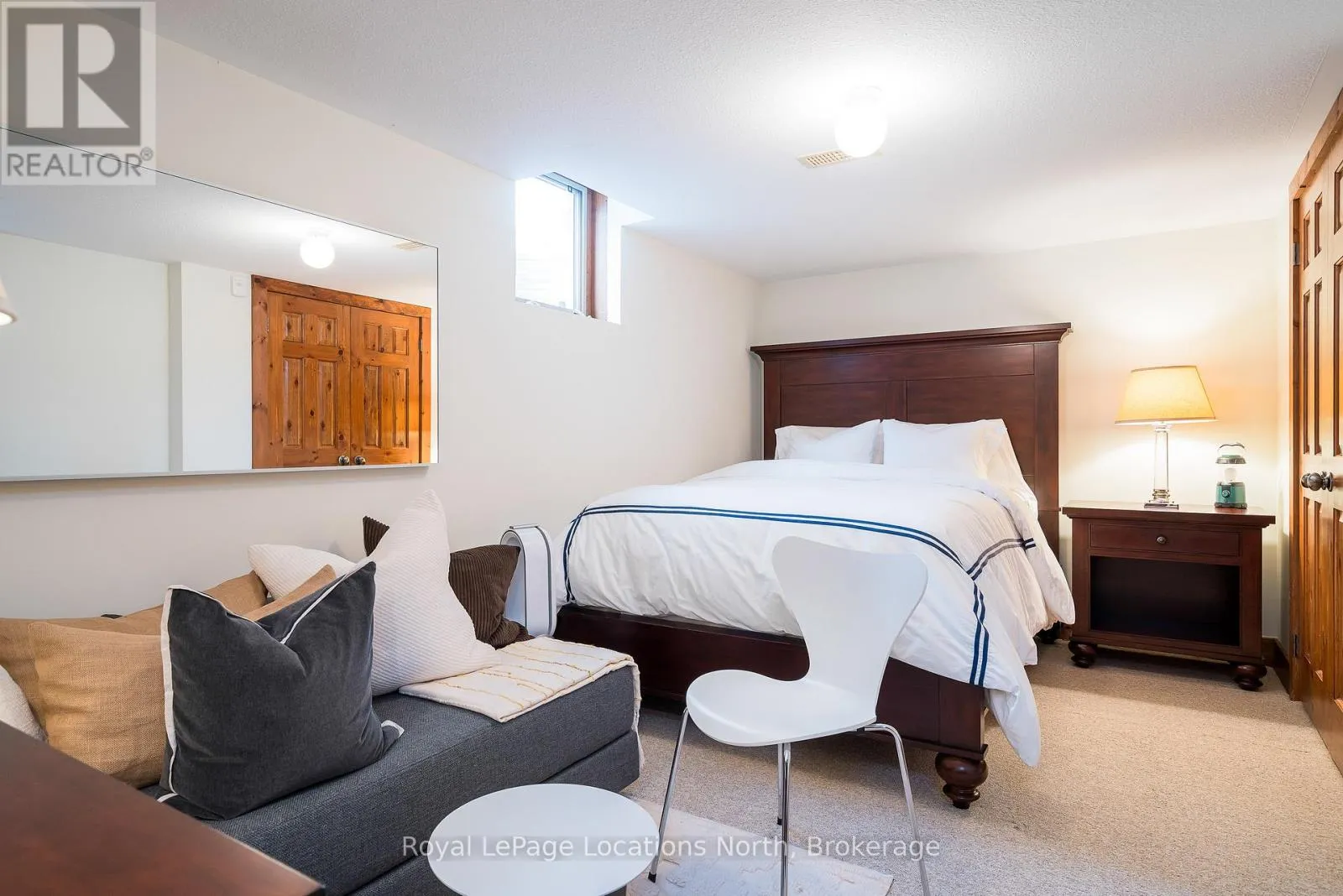Cross Streets: Birches Boulevard and National Drive. ** Directions: From Hwy 26 head South on Grey Road 19 towards Blue Mountain Village, turn right onto Birches Boulevard, then right onto National Drive to #143. Cherished by the same family for over 15 years, this spacious 7-bedroom, 5-bath Lake Louise model in the sought-after Orchard community is ready for its next owners. Ideally located within walking distance to Craigleith Ski Club and Toronto Ski Club, and just minutes from Alpine, Blue Mountain Resort, and Northwinds Beach, this property offers exceptional four-season living. With over 4,000 sq. ft. of finished space, the home is designed for gathering and relaxation. The dramatic great room features a double-height ceiling, hardwood floors, beam accents, and a stunning double-storey stone wood-burning stove with a pine mantel. The main floor includes a guest bedroom, a 3-piece bathroom with a steam shower, a large kitchen with granite counters, gas range, island, walk-in pantry, and buffet/serving area, plus a cozy sitting area. The mudroom serves as main-floor laundry and opens to a covered BBQ porch.Upstairs you'll find four generous bedrooms and three full bathrooms, including a primary suite with a walk-in closet and ensuite featuring a soaker tub and glass shower. One guest room includes a private ensuite, another offers a balcony, and a full bath plus walk-in linen closet complete this level. Seasonal ski-hill views can be enjoyed in winter, with lush privacy in summer. The fully finished lower level adds two more bedrooms, a bathroom, sauna, two recreation areas, and excellent storage for gear.Outside, the premium lot backs onto Craigleith Ski Club and features mature landscaping, apple trees, a play set and swings, and a gate leading to a walking path directly to the club. A double-car garage with EV charger completes this exceptional offering. A rare opportunity in an unmatched location. (id:27476)