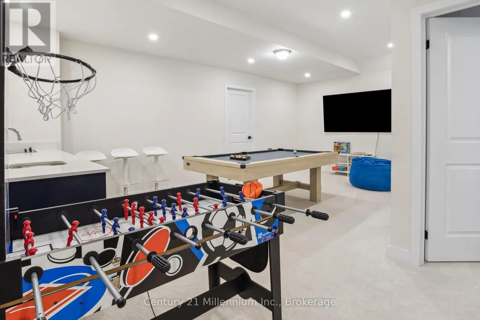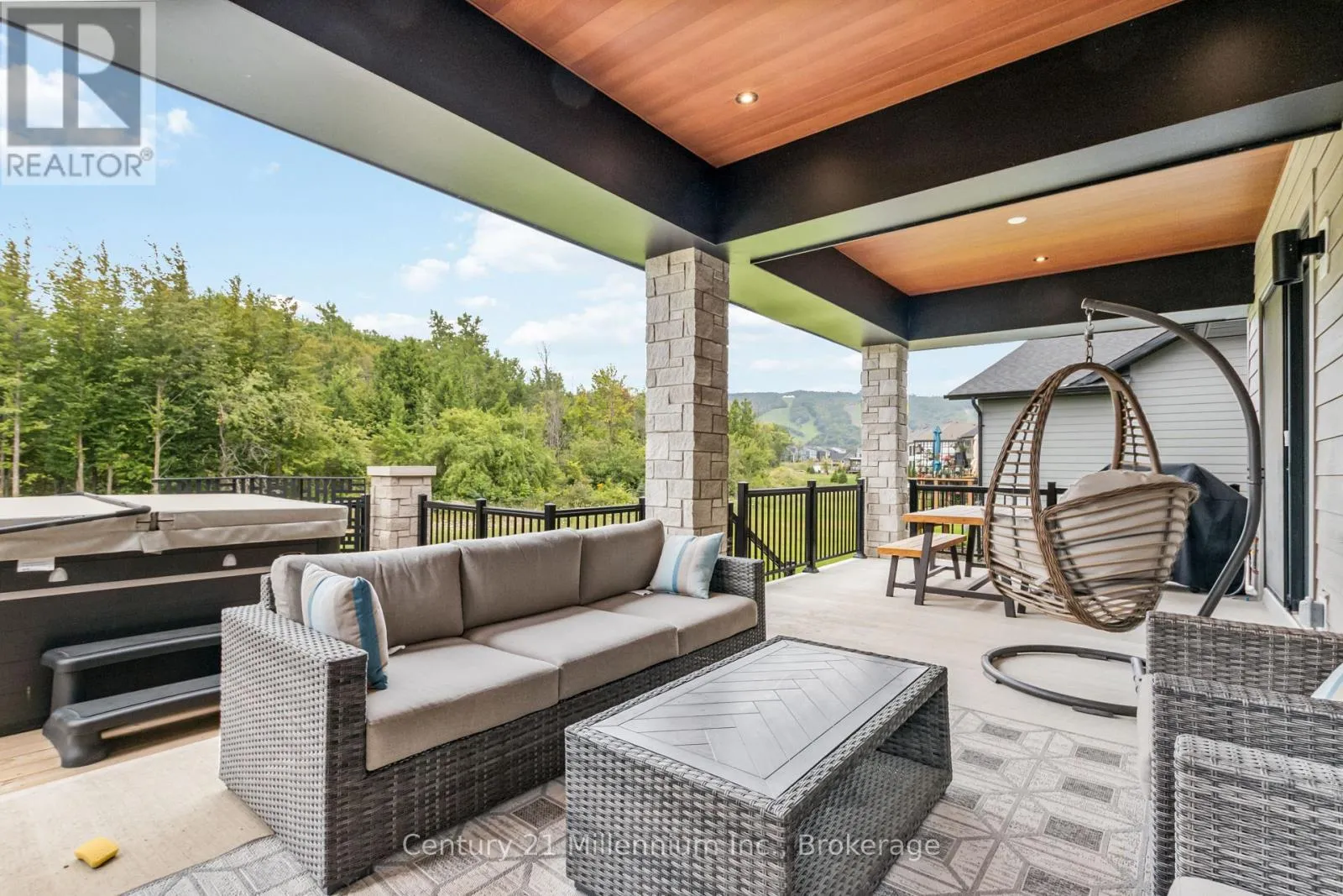 Cross Streets: From Collingwood, Grey Rd 19 (Blue Mountain Rd) to Jozo Weider Blvd (Crosswinds), right on Jozo Weider Blvd (Crosswinds), left on to Springside Cres then right Stoneleigh Dr. ** Directions: From Collingwood, Grey Rd 19 (Blue Mountain Rd) to JozoWeider Blvd (Crosswinds), right on Jozo Weider Blvd(Crosswinds), left on to Springside Cres then right StoneleighDr. PREMIUM LOT | $340K IN UPGRADES | FULLY FURNISHED | HOT TUB | SHUTTLE TO VILLAGE! Experience the pinnacle of four-season luxury in this brand-new "Chutes" model located on a premium lot in the prestigious Blumont community. Just steps from the action and serviced by an on-demand shuttle to Blue Mountain Village, this stunning chalet offers a rare combination of resort convenience and residential elegance.The interior impresses with striking vaulted ceilings that soar from the foyer to the rear lodge room, creating an expansive, light-filled atmosphere. Designed as an entertainer's dream, the gourmet kitchen features a large central island flowing seamlessly into the dining area. For the active family, a convenient main-floor mudroom provides ample gear storage. Transition outdoors to your private covered loggia, a year-round sanctuary featuring a cozy gas fireplace and a private hot tub-the ultimate spot for après-ski relaxation.This premium residence comes fully furnished and turnkey, thoughtfully configured to accommodate large groups with 6 spacious bedrooms and 7 beds (3 Kings, 2 Queens, 1 Double, 1 Twin). The upper level is dedicated to rest with four generous bedrooms, while the fully finished lower level serves as the ultimate entertainment hub. This level features a massive recreation and games room equipped with a pool table and foosball table (both included), a stylish wet bar, two additional bedrooms, and a full bath.Beyond the home, ownership includes exclusive BMVA privileges: access to a private beach, on-call shuttle service, and discounts at Village shops/restaurants. With over $340,000 in upgrades, a transferable Tarion Warranty, and proven potential for significant seasonal income ($40k+ for ski season), this is a sophisticated investment in Ontario's premier resort destination. Your four-season adventure starts here. (id:27476)