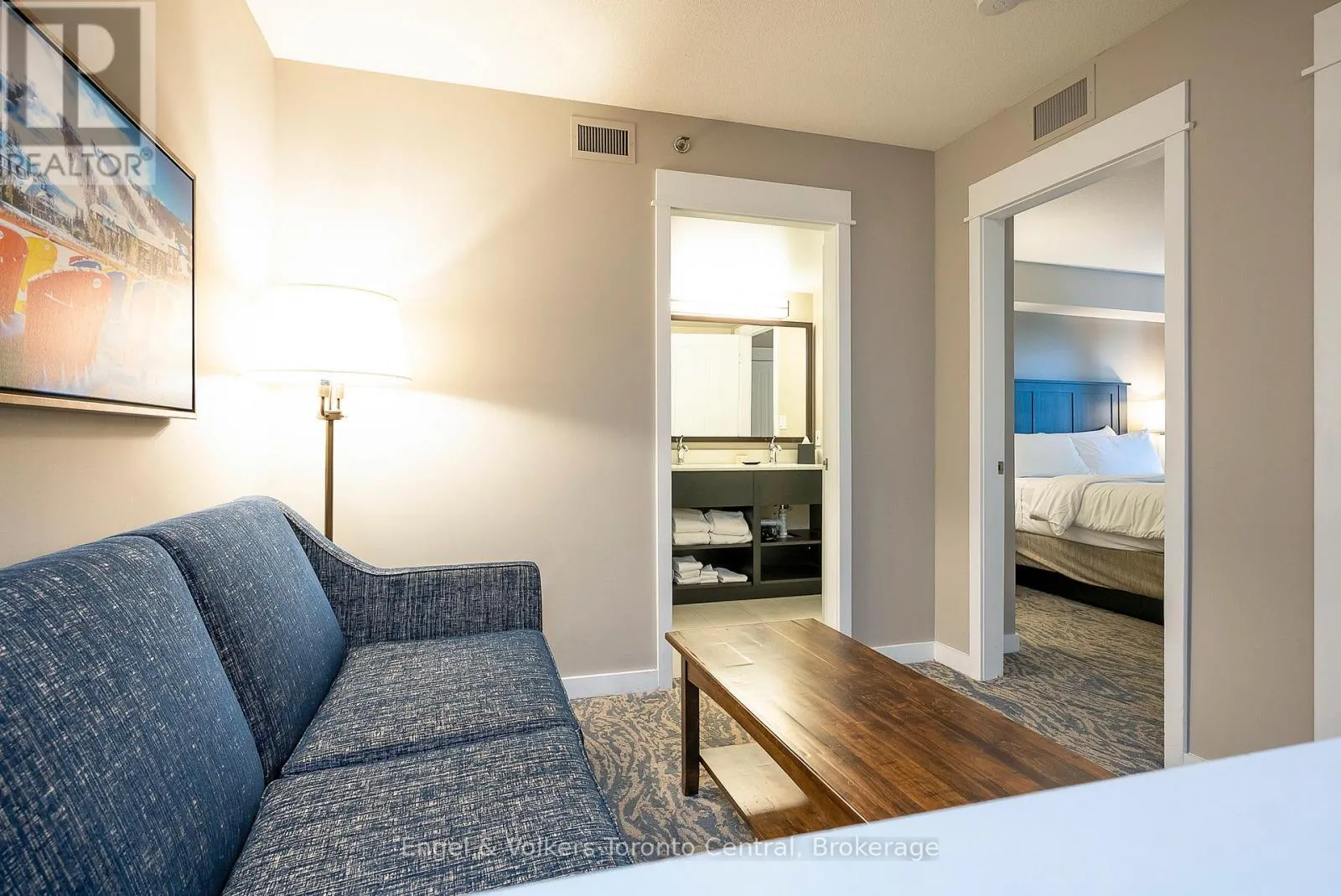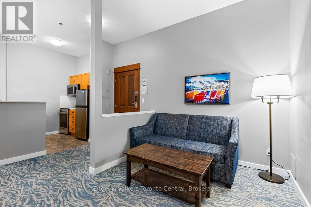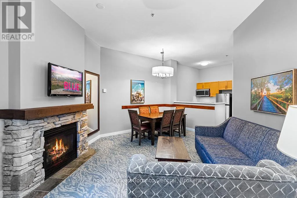 Cross Streets: Jozo Weider Blvd. ** Directions: Highway 26 to Mountain Road to Grey Road 19 to Jozo Weider Blvd. GRAND GEORGIAN ONE-BEDROOM PLUS DEN SLEEPS 6 - Fully furnished One Bedroom + Den in the beautiful Grand Georgian, located in Blue Mountain Village, Ontario's most popular four-season resort. Close to restaurants, shops, activities and amenities making your stay enjoyable. The Grand Georgian features an in-ground outdoor seasonal pool, 2 year round hot tubs, a sauna, exercise room and warm underground parking. Suite Sleeps up to 6! Full kitchen, large bathroom with double sinks! Enjoy the nice gas fireplace after a day on the ski hills. Very spacious with a king size bed in master with private access to 4 piece bathroom. Two pull out sofas. Choose to participate in optional Blue Mountain Resort Rental Pool Program that generates income and allows for personal use. Condo Fees include all utilities. This suite is currently in the Blue Mountain Resorts rental program. HST is applicable on the purchase price but can be deferred by the buyer obtaining an HST number. 2% Village Association Fee is applicable on closing. $1.08 per square foot annual Blue Mountain Village Association Membership fee paid quarterly. (id:27476)