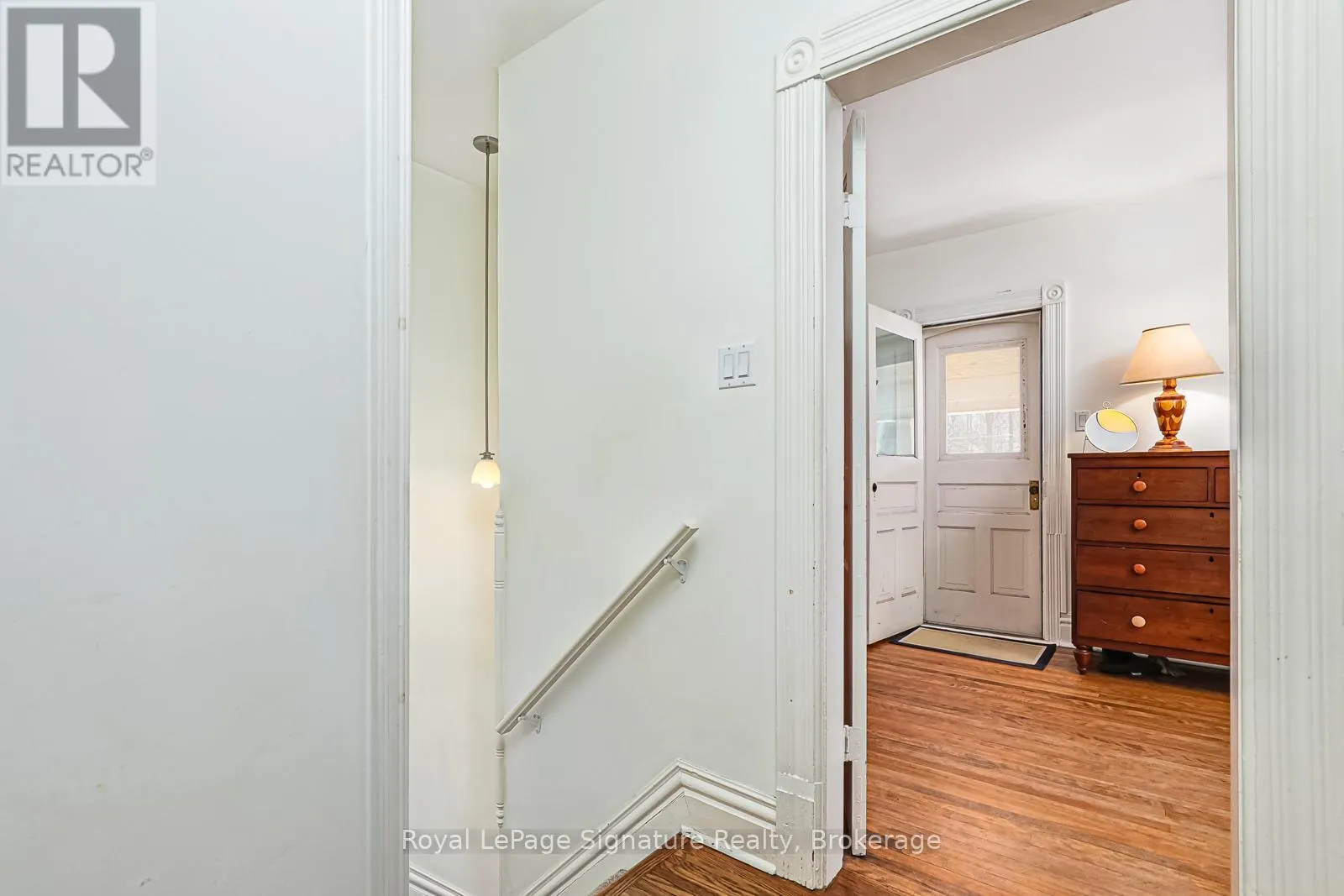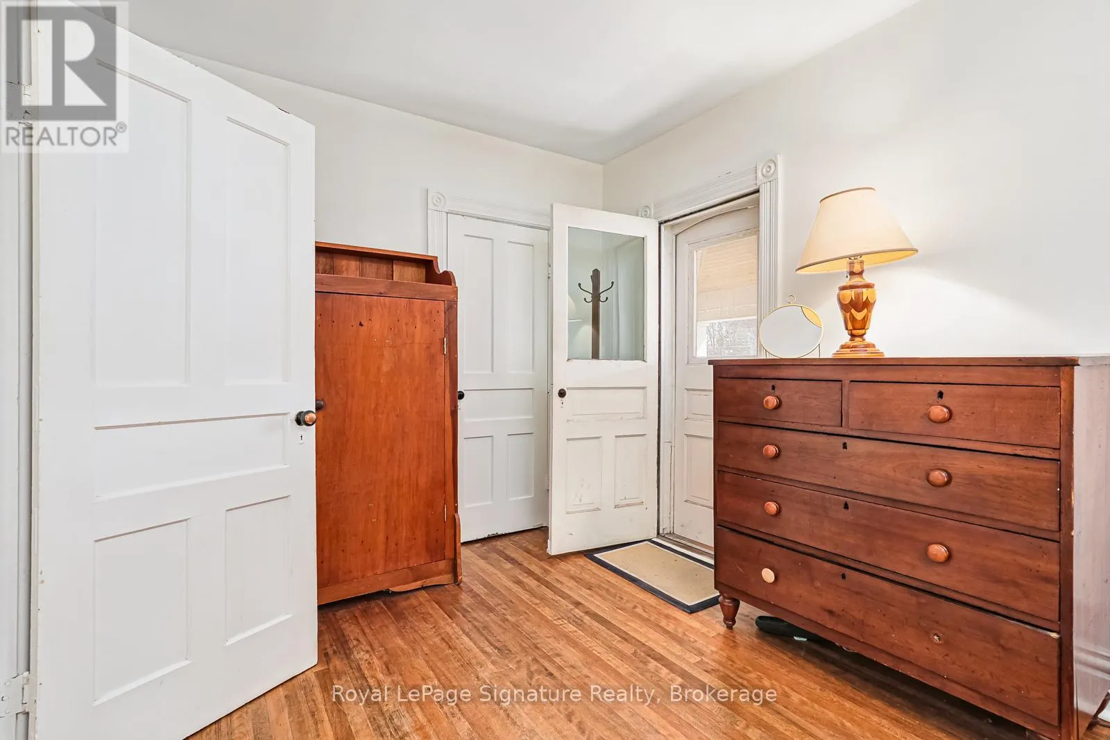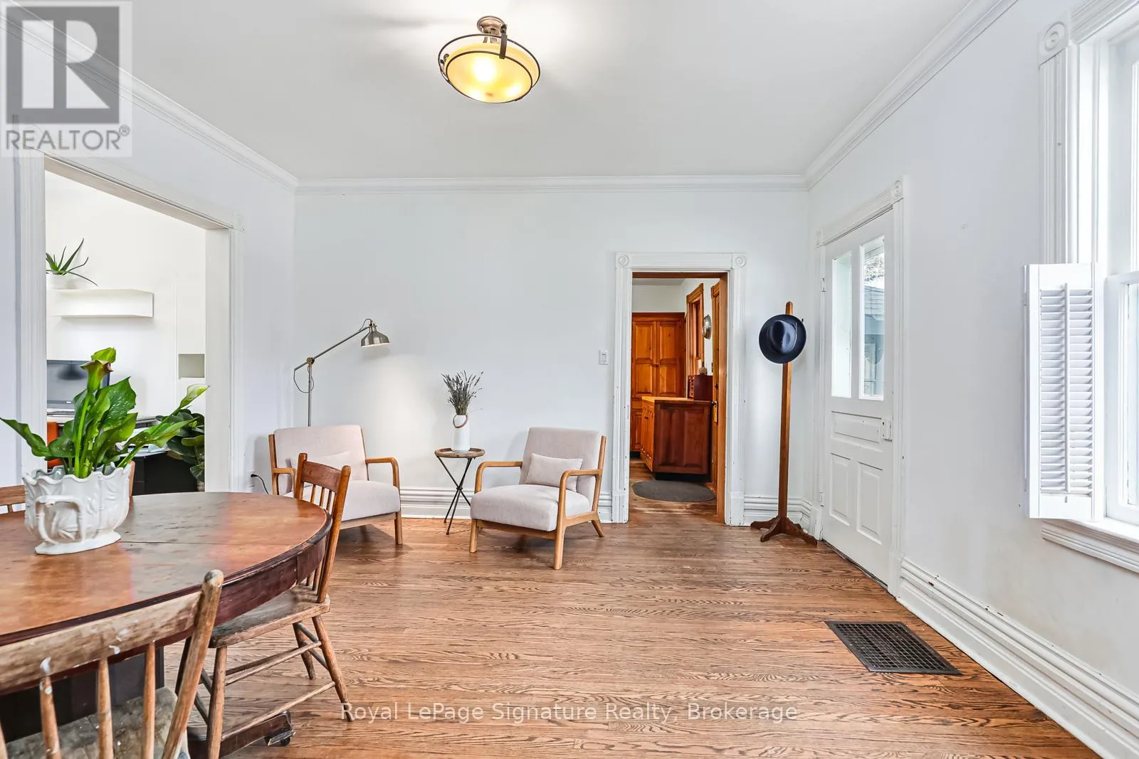 Cross Streets: Grey Rd 13. ** Directions: Grey Rd 13 to Clark Street. In the heart of Clarksburg, this classic red brick home seamlessly blends historical charm with modern comforts. Offering three bedrooms, two bathrooms, and generous living spaces, its thoughtfully designed for both everyday living and entertaining. The inviting country kitchen provides abundant storage and is a true gathering place for those who love to cook and host. Original wood floors, custom built-in cabinetry, solid wood doors, and detailed trim showcase the timeless craftsmanship of the home. Step outside to a private, tree-lined backyard featuring a spacious flagstone patio and hot tub perfect for relaxing or enjoying time with family and friends. Mature landscaping enhances the sense of privacy and tranquility.All of this is just steps from Clarksburg's best amenities, including Clendenan Conservation Area, Fireman's Park, scenic hiking trails, and the shops and cafes of the charming downtown. Commercial potential with flexible C1 Zoning. (id:27476)