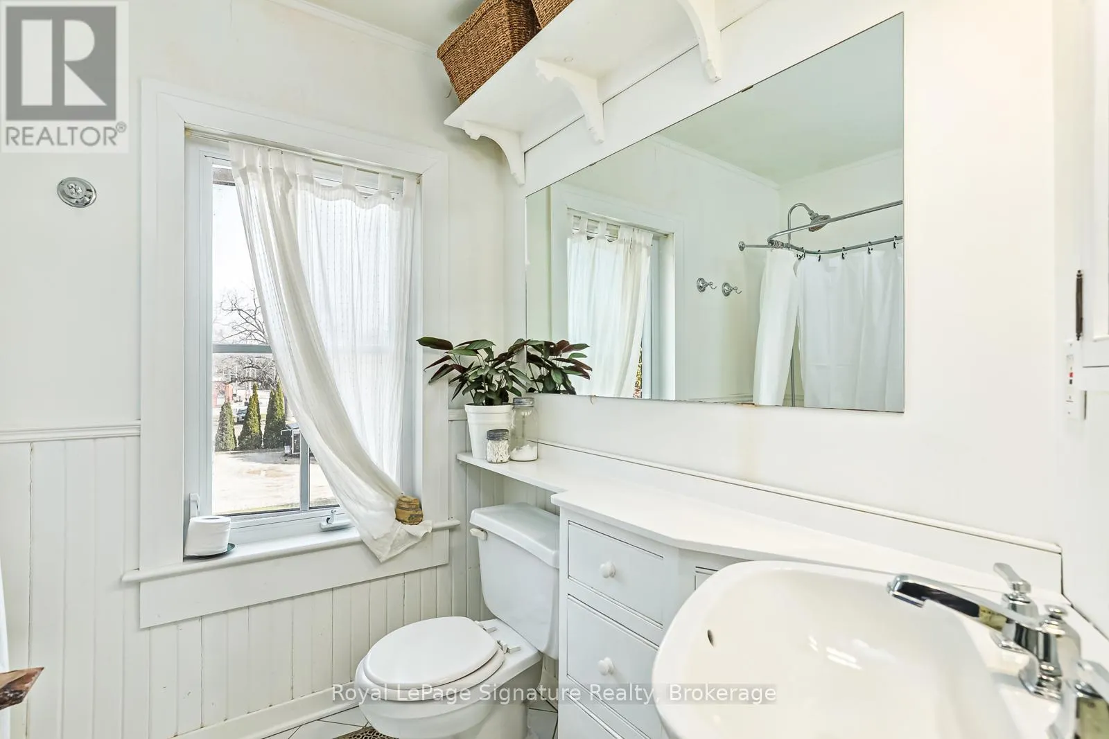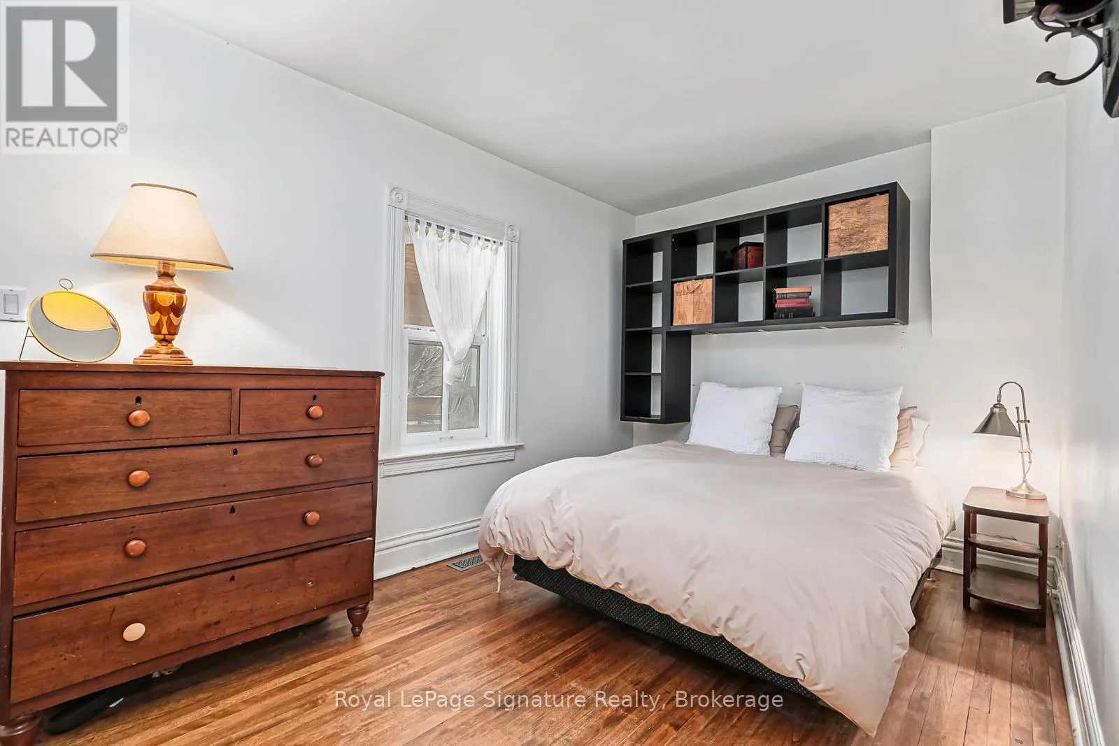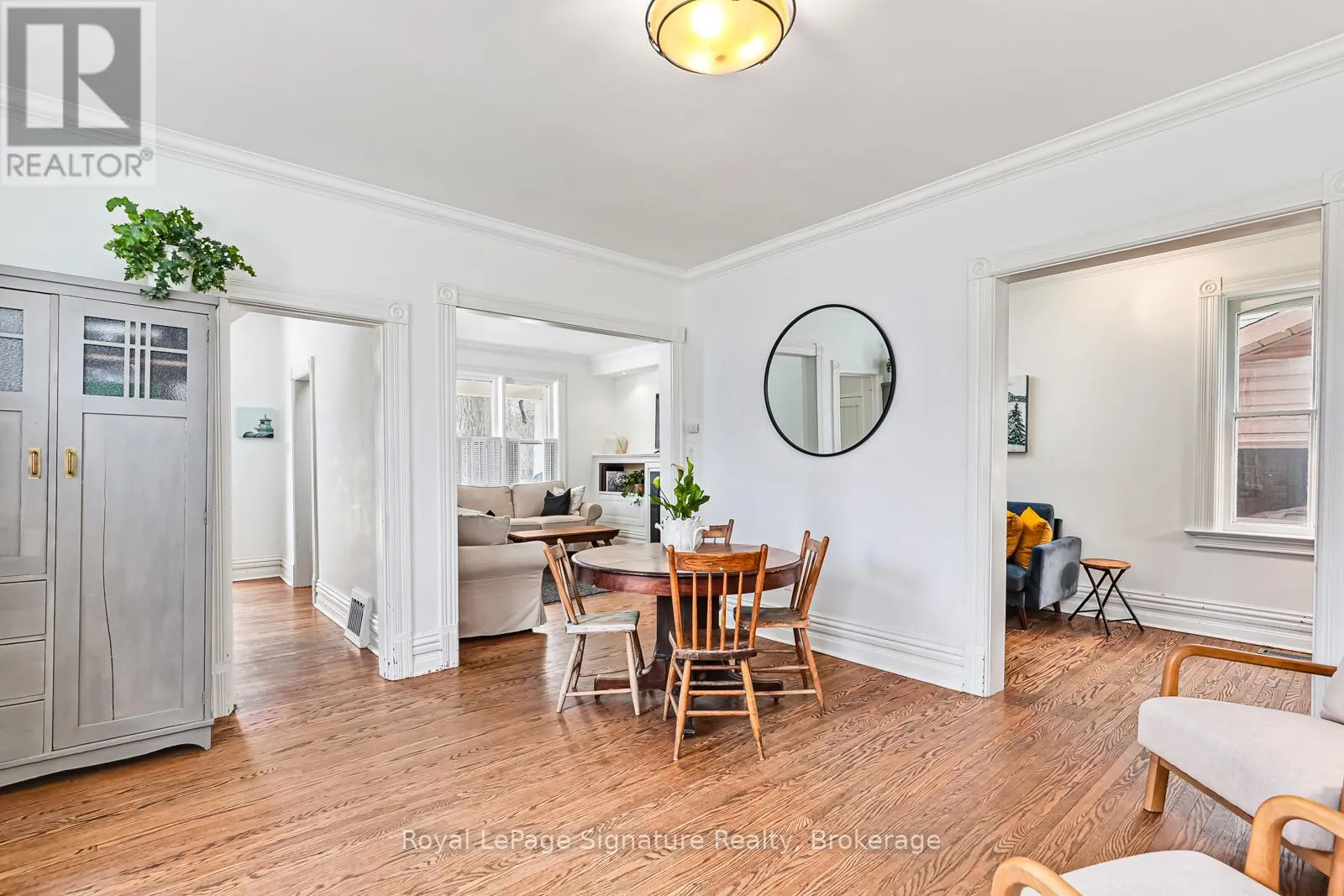 Cross Streets: Grey Rd 13. ** Directions: Grey Rd 13 to Clark Street. In the heart of Clarksburg, this classic red brick home seamlessly blends historical charm with modern comforts. Offering three bedrooms, two bathrooms, and generous living spaces, its thoughtfully designed for both everyday living and entertaining. The inviting country kitchen provides abundant storage and is a true gathering place for those who love to cook and host. Original wood floors, custom built-in cabinetry, solid wood doors, and detailed trim showcase the timeless craftsmanship of the home. Step outside to a private, tree-lined backyard featuring a spacious flagstone patio and hot tub perfect for relaxing or enjoying time with family and friends. Mature landscaping enhances the sense of privacy and tranquility.All of this is just steps from Clarksburg's best amenities, including Clendenan Conservation Area, Fireman's Park, scenic hiking trails, and the shops and cafes of the charming downtown. Commercial potential with flexible C1 Zoning. (id:27476)