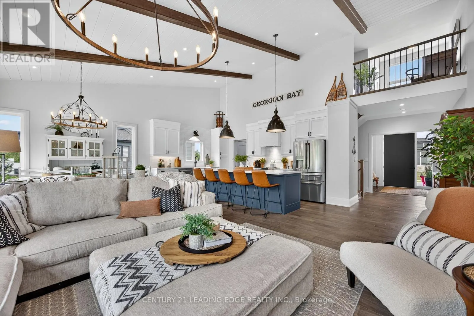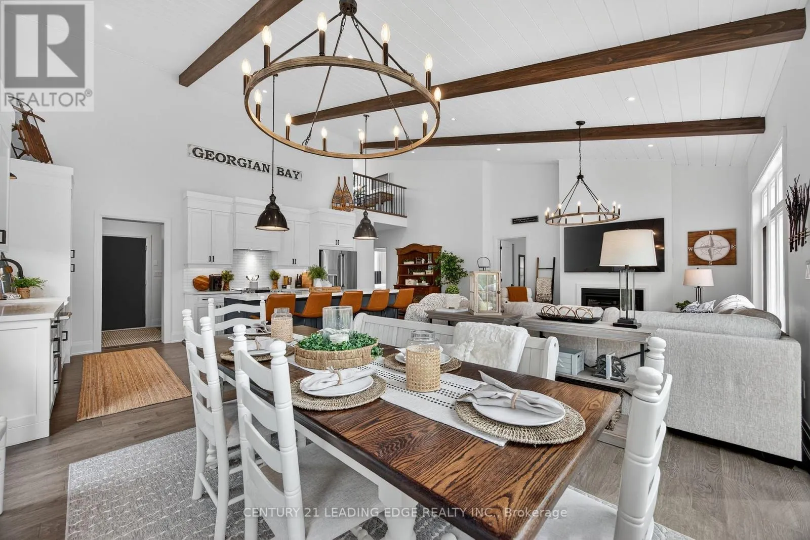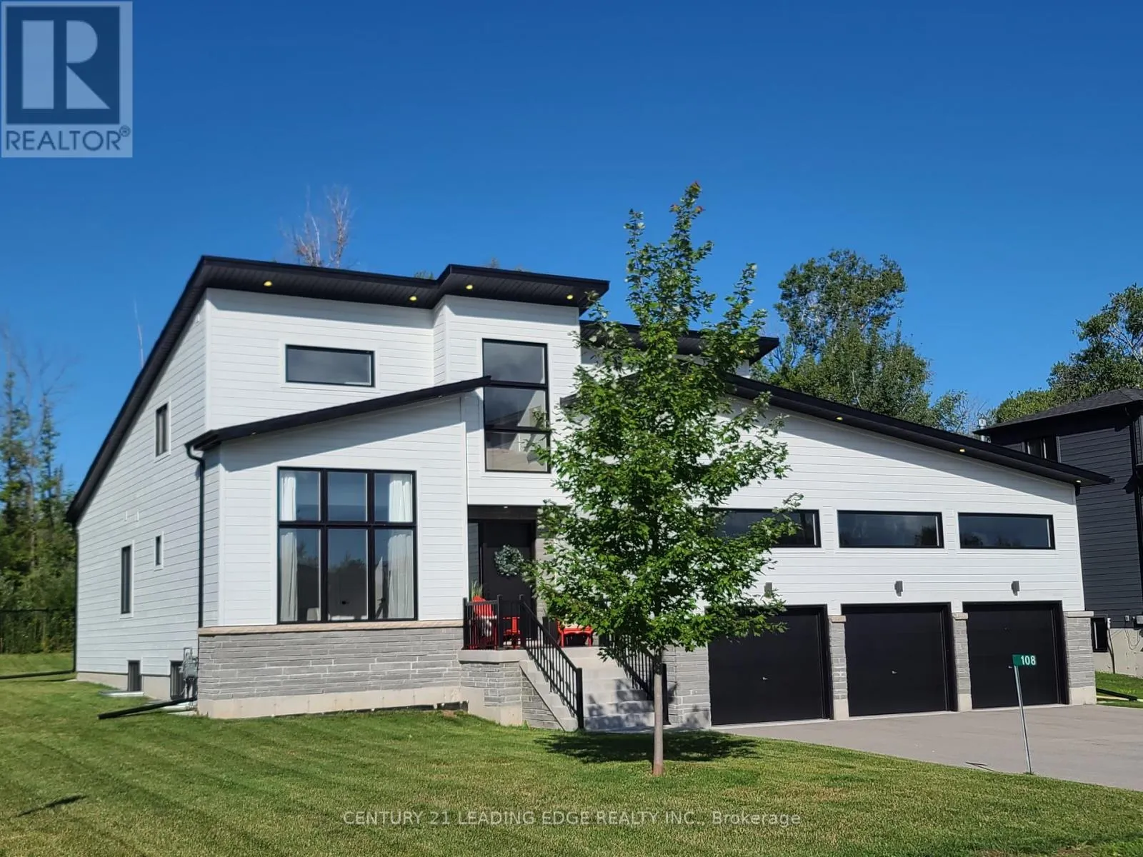 Cross Streets: Grey Rd 40 / Tekiah Rd. ** Directions: Hwy 26 / Grey Rd 40 / Tekiah / Goldie. Welcome to 108 Goldie Court, a perfect home for your 4-season lifestyle! Meticulously upgraded, this open concept Alta model (2,375sqft) will not disappoint! A large inviting foyer to greet guests leads to a show-stopping great room with vaulted shiplap ceiling featuring 3 beams, Restoration Hardware island pendant lights, pot lights, hardwood floors, 41" gas fireplace and a 12' by 8' sliding door enhancing the treed view. Entertain family and friends around the huge quartz island (9'8" sink free) with a beverage fridge and undercounter microwave drawer. Kitchen features stainless steel GE Cafe appliances (fridge, induction stove & dishwasher), a stylish Franke double-bowl farmhouse ceramic sink with additional window, a modern backsplash, plenty of storage including double pots & pans drawers, deep pantry, extended cabinets with undermount lighting & a shiplap vent hood. A pocket door leads to the laundry room with a double closet & garage access. Spacious main floor primary bedroom has a walk-in closet and a 5 pc. ensuite featuring upgraded Moen faucets & handheld shower heads, glass 1/2 wall for shower & a pocket door. Bedroom 2 on main floor makes a great office/den with large window. Second floor has 2 two bedrooms (bdrm 4 with additional side window), a large loft area overlooking the great room & a 4pc bath. Open to below hardwood staircase to basement with bonus 9' ceiling, radiant heated floor (cozy for winter), large windows and a 200amp electrical panel. Relax and watch the sunset on your western exposure 400sqft deck with gas bbq hookup & tranquil protected woodland view. Store your toys & gear in a 3 bay oversized dream garage with 9' wide doors, high ceiling & a 6 car driveway (no sidewalk). Conveniently situated between the scenic waterfront community of Thornbury & Collingwood, your active lifestyle is just steps to the Georgian Trail & Council Beach, minutes to Georgian Bay Club, private ski hills & Blue Mountain Village. (id:27476)