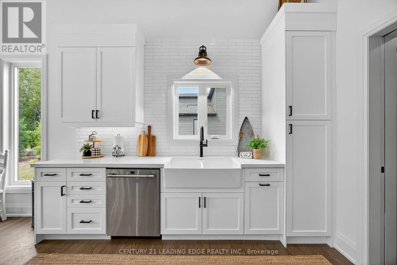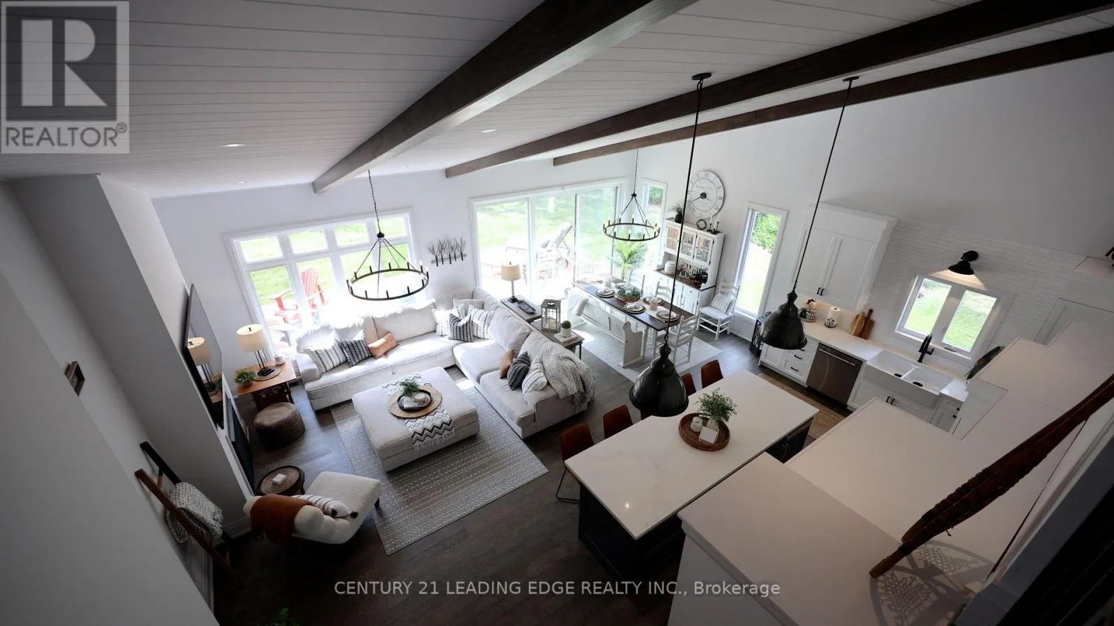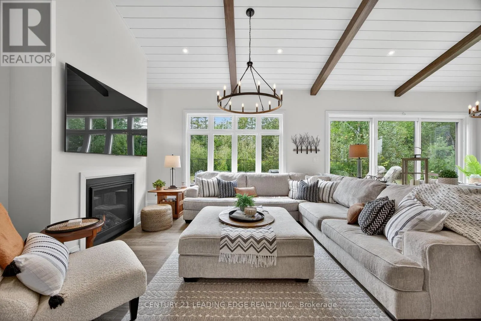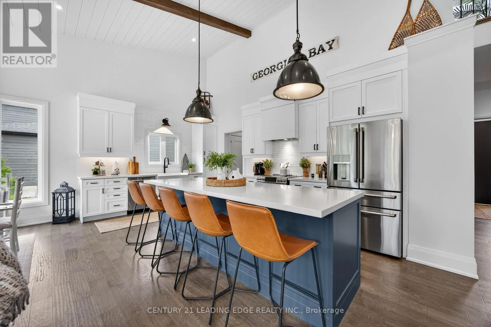 Cross Streets: Grey Rd 40 / Tekiah Rd. ** Directions: Hwy 26 / Grey Rd 40 / Tekiah / Goldie. Welcome to 108 Goldie Court, a perfect home for your 4-season lifestyle! Meticulously upgraded, this open concept Alta model (2,375sqft) will not disappoint! A large inviting foyer to greet guests leads to a show-stopping great room with vaulted shiplap ceiling featuring 3 beams, Restoration Hardware island pendant lights, pot lights, hardwood floors, 41" gas fireplace and a 12' by 8' sliding door enhancing the treed view. Entertain family and friends around the huge quartz island (9'8" sink free) with a beverage fridge and undercounter microwave drawer. Kitchen features stainless steel GE Cafe appliances (fridge, induction stove & dishwasher), a stylish Franke double-bowl farmhouse ceramic sink with additional window, a modern backsplash, plenty of storage including double pots & pans drawers, deep pantry, extended cabinets with undermount lighting & a shiplap vent hood. A pocket door leads to the laundry room with a double closet & garage access. Spacious main floor primary bedroom has a walk-in closet and a 5 pc. ensuite featuring upgraded Moen faucets & handheld shower heads, glass 1/2 wall for shower & a pocket door. Bedroom 2 on main floor makes a great office/den with large window. Second floor has 2 two bedrooms (bdrm 4 with additional side window), a large loft area overlooking the great room & a 4pc bath. Open to below hardwood staircase to basement with bonus 9' ceiling, radiant heated floor (cozy for winter), large windows and a 200amp electrical panel. Relax and watch the sunset on your western exposure 400sqft deck with gas bbq hookup & tranquil protected woodland view. Store your toys & gear in a 3 bay oversized dream garage with 9' wide doors, high ceiling & a 6 car driveway (no sidewalk). Conveniently situated between the scenic waterfront community of Thornbury & Collingwood, your active lifestyle is just steps to the Georgian Trail & Council Beach, minutes to Georgian Bay Club, private ski hills & Blue Mountain Village. (id:27476)