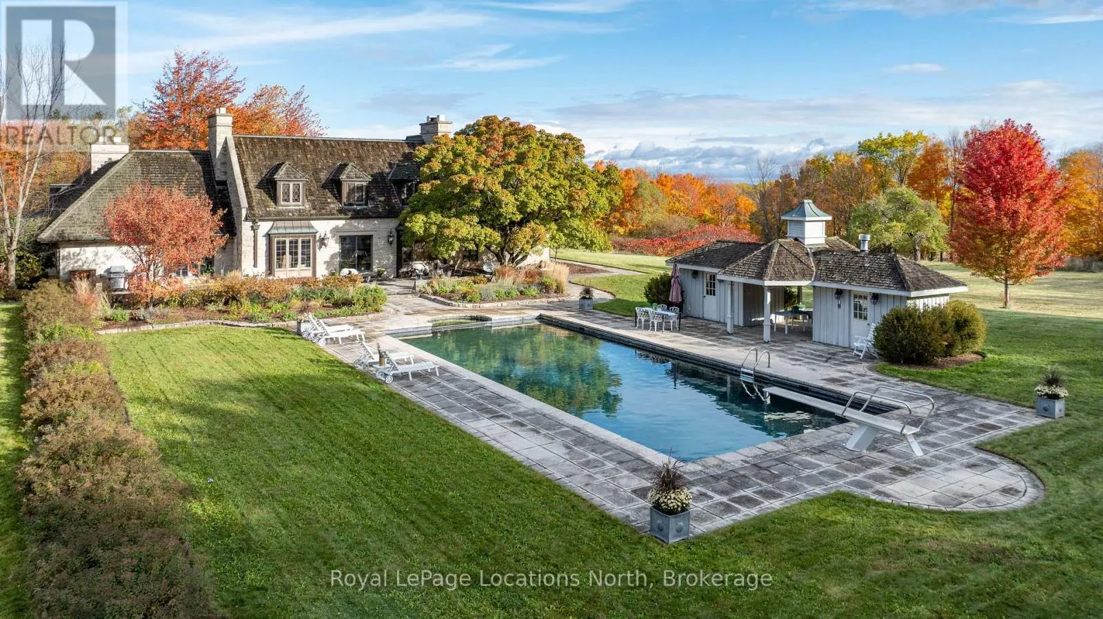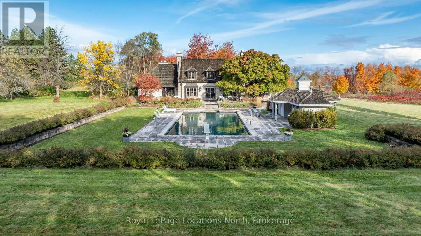 Cross Streets: Mountain Rd and Grey Rd 19. ** Directions: Hwy 26 to south on Grey Rd 21, straight to Grey Rd 19, Right on 12th Sideroad, to 609830 12 Sideroad. Discover an extraordinary opportunity to own a rare 32.14-acre luxury estate in the Blue Mountains, ideally positioned on the border of Collingwood and just minutes from Osler Bluff Ski Club, OslerBrook Golf & Country Club, Blue Mountain Village, and downtown Collingwood. Set well back from the road with a long, tree-lined driveway, this exceptional property offers remarkable privacy, natural beauty, and endless potential. Built in 1982, the stately stone residence presents an ideal canvas for those looking to create a custom dream estate with some views out to the bay in the winter. The grounds are truly spectacular. Highlights include a 56' x 25' PebbleTec pool with seasonal hot tub, poolside gazebo, pond, meadow, creek, and a private trail system winding through a mature forest. Silver Creek meanders through the East edge of the property, with seasonal salmon and Trout runs adding to the unforgettable natural landscape. Whether you envision a serene country retreat or a reimagined modern luxury estate, this one-of-a-kind property delivers unmatched location, privacy and scale in one of Southern Georgian Bay's most coveted recreational destinations. Your private retreat awaits. A must-see! (id:27476)