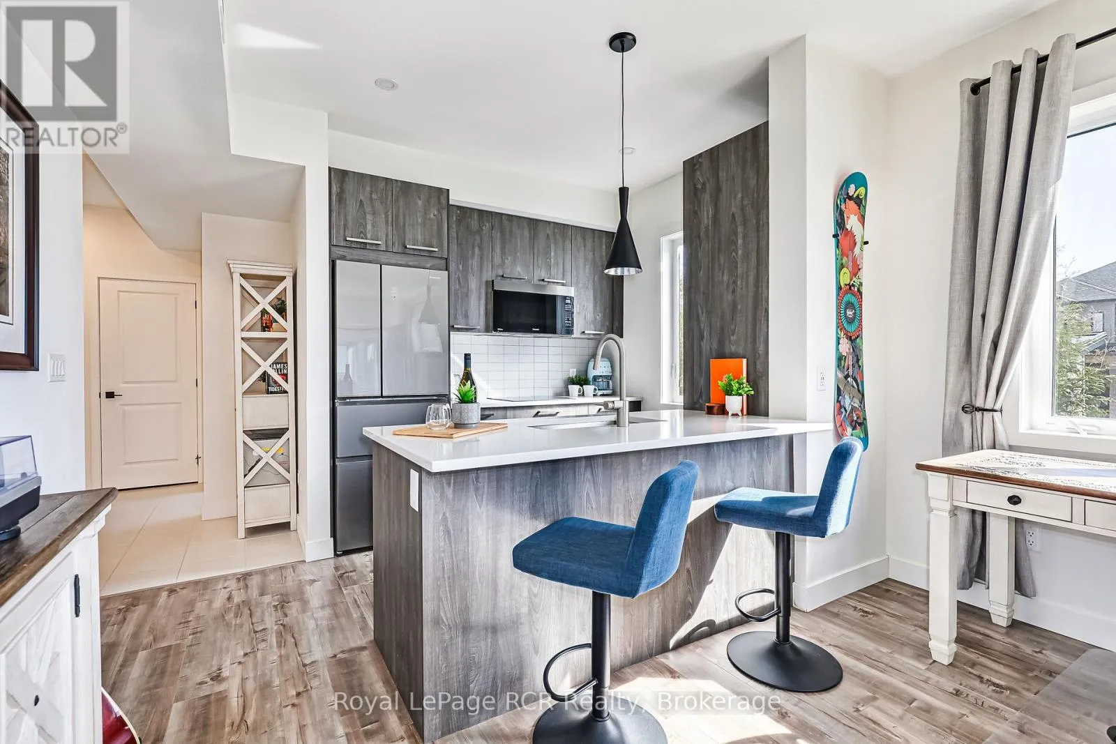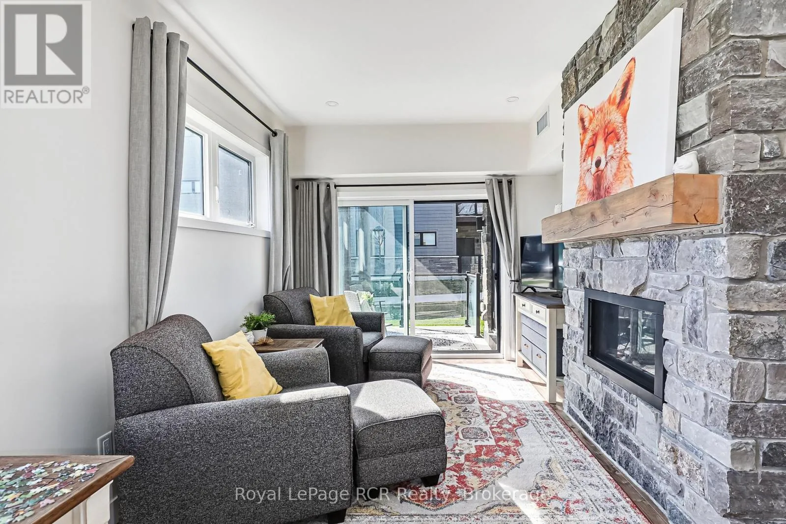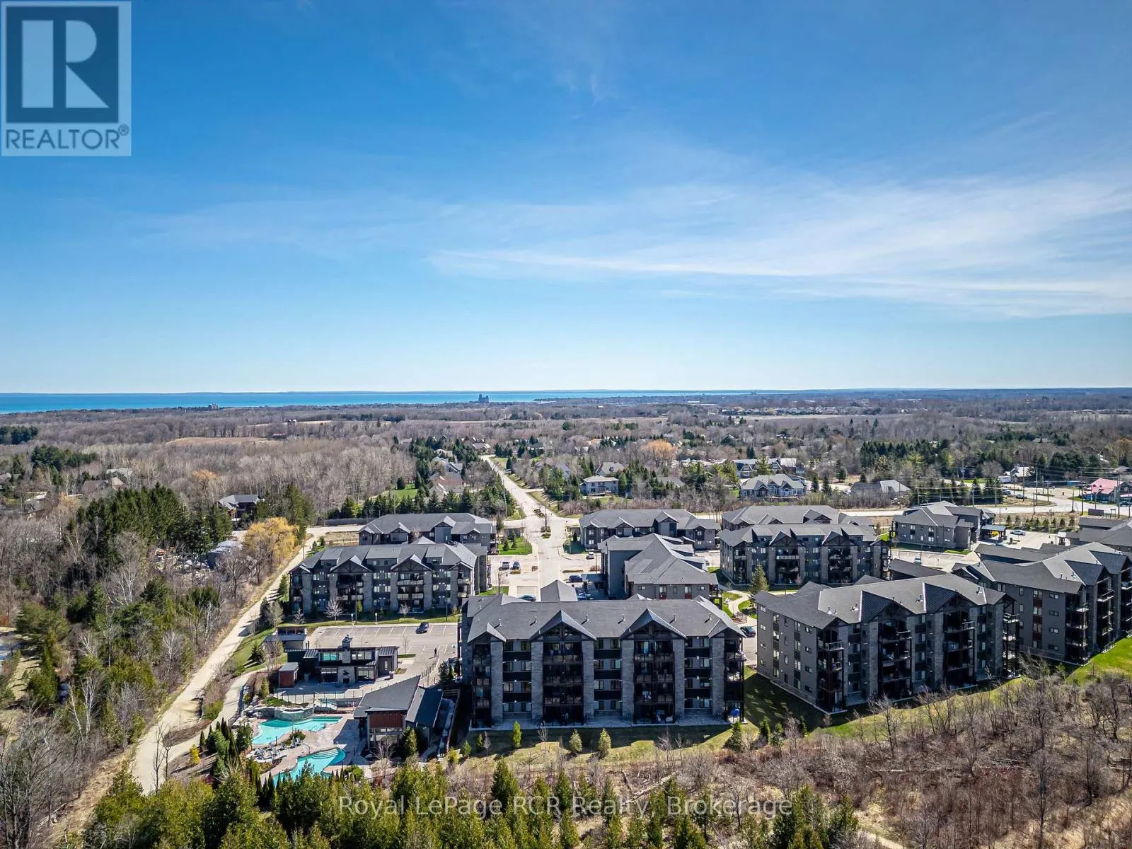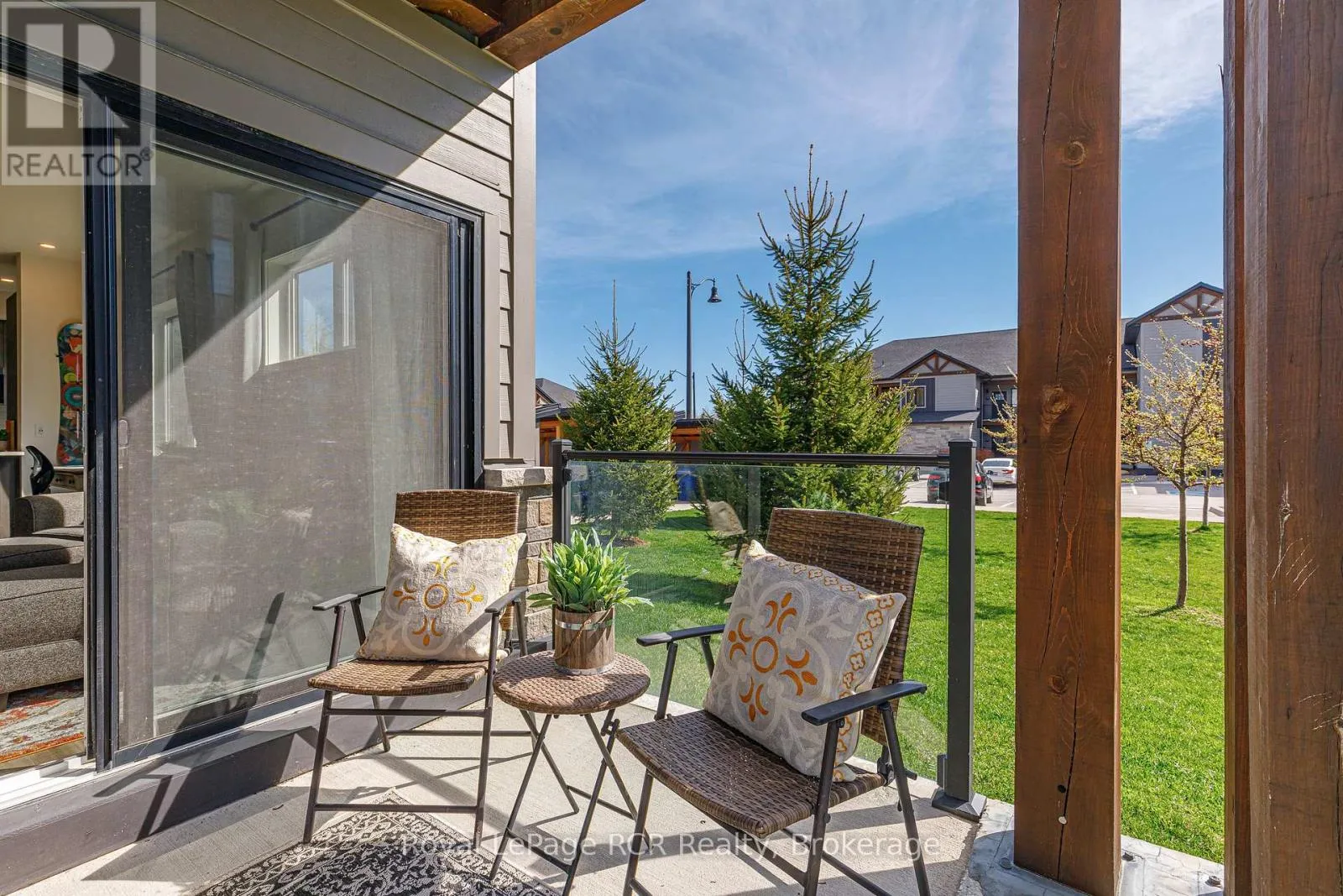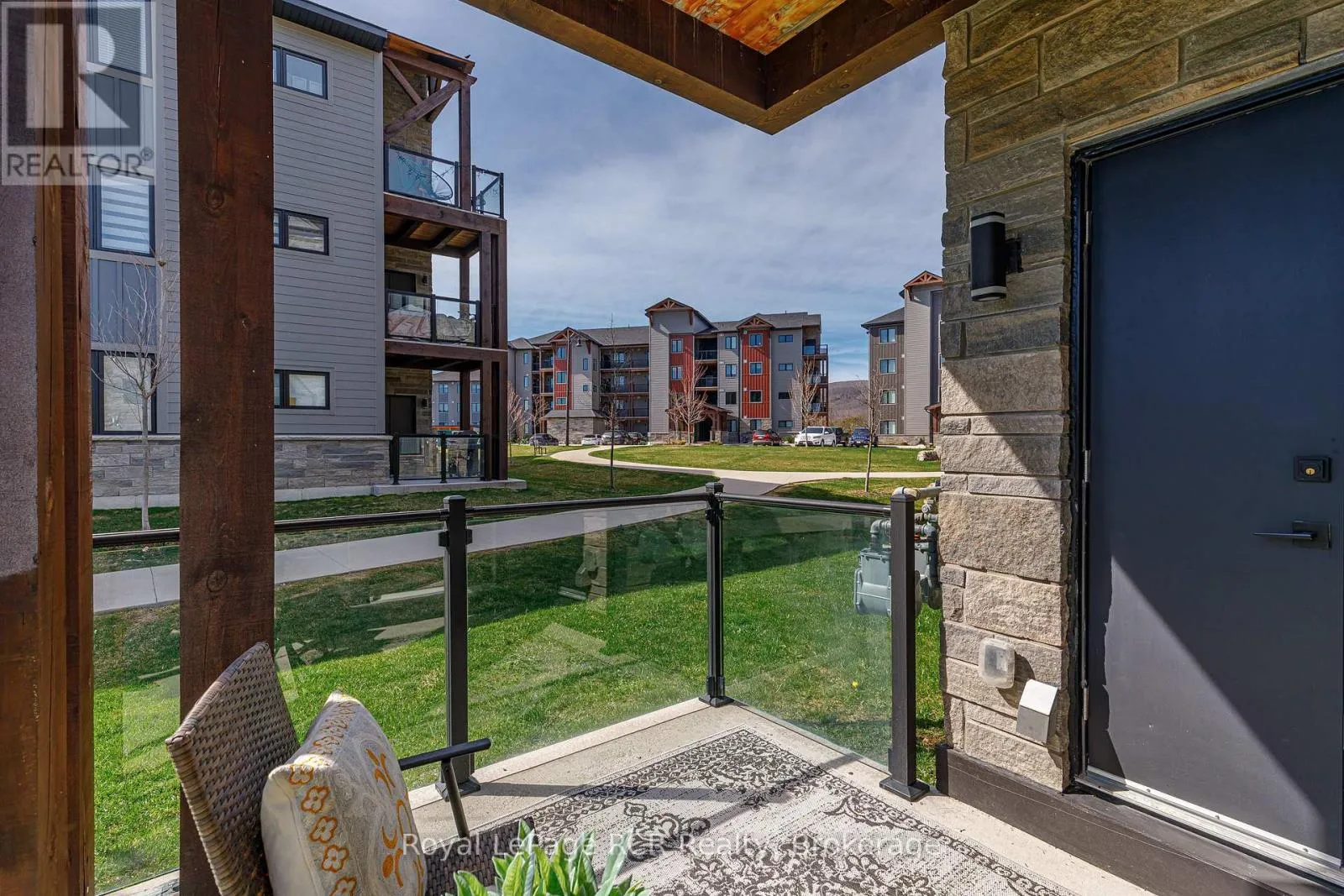 Cross Streets: Osler Bluff Road & Beckwith Lane. ** Directions: Mountain Road to Grey Rd 19 to Beckwith Ln. Welcome to Mountain House at Blue Mountain! This beautifully furnished 2-bedroom, 2-bathroom ground-floor end unit in the Affinity building is offered fully turn-key, making it easy to settle in and start enjoying the lifestyle right away. The open-concept living, dining, and kitchen space is filled with natural light and opens onto a covered patio through large sliding doors-perfect for relaxing after a day outdoors. Thoughtfully designed for active living, the unit includes a walk-in laundry closet and an in-suite storage room with plenty of space for your gear. As an owner, you'll enjoy access to the Nordic-inspired Zephyr Springs, featuring outdoor pools, a sauna, fitness area, and a serene relaxation/yoga room. Unwind at the Après Lounge with its cozy fireplace, communal seating, kitchen, and outdoor wood-burning fireplace. Ideally located, you're just steps to the Scandinave Spa, close to scenic trails and biking routes, minutes to Blue Mountain Village, ski slopes, Craigleith and Northwinds Beach, and a short drive to the shops and restaurants of Collingwood. This is mountain living at its best-relaxed, convenient, and ready to enjoy. (id:27476)