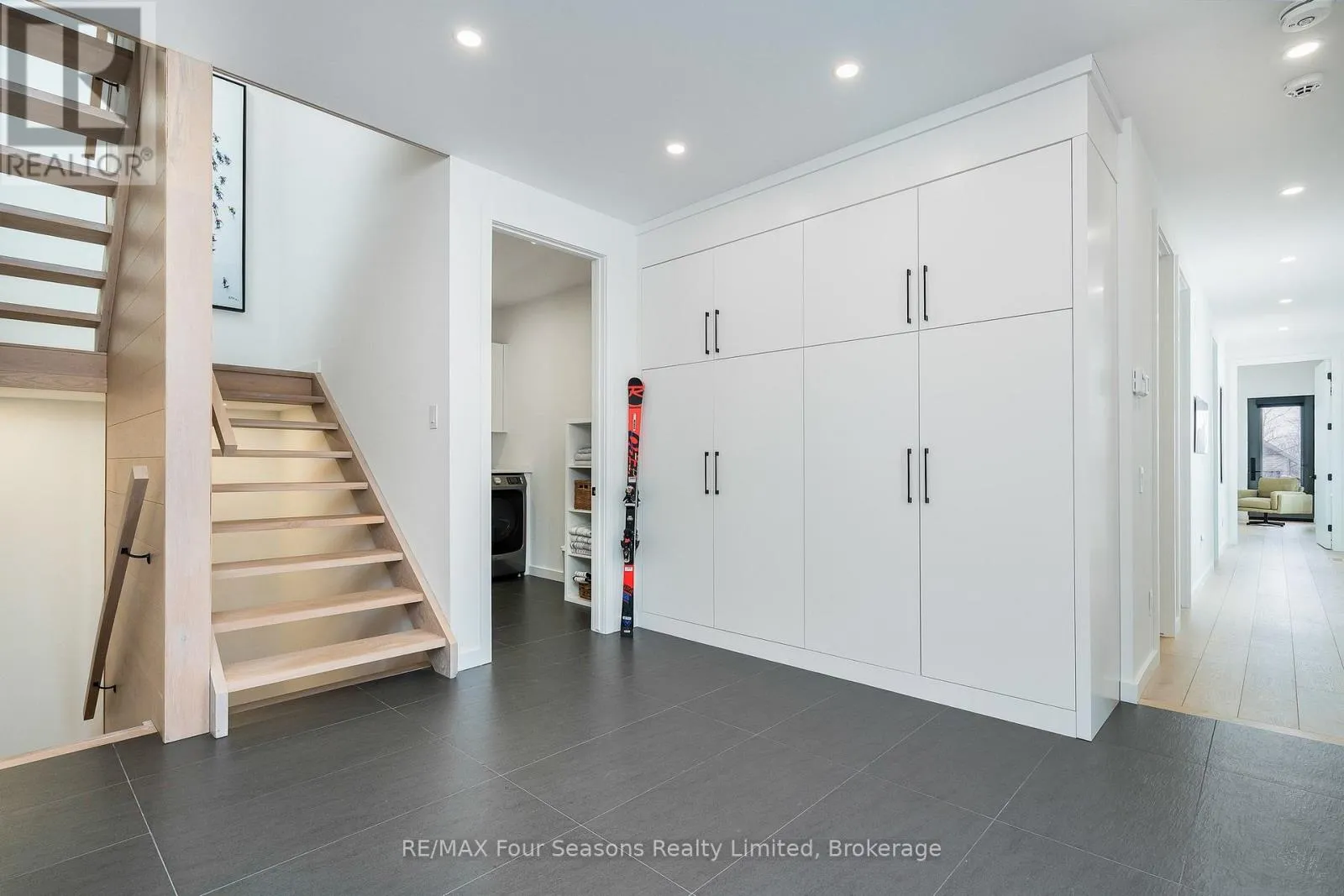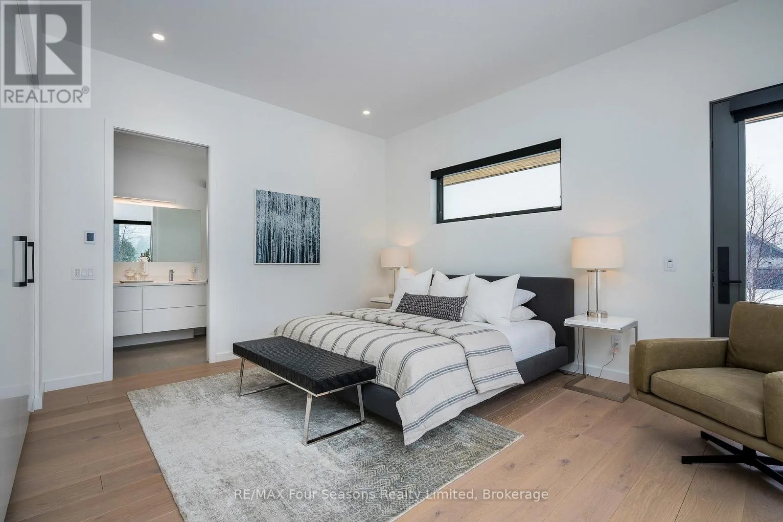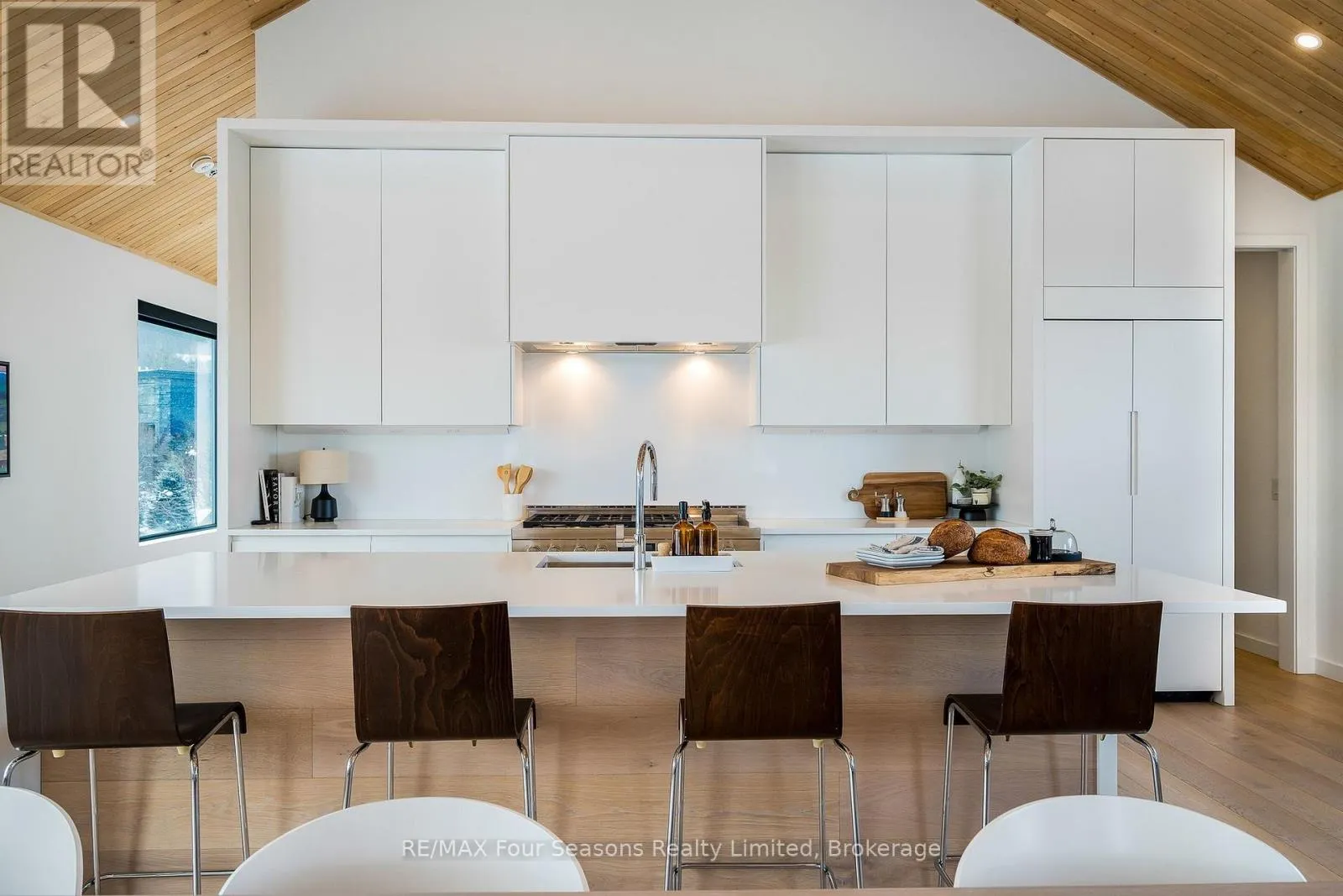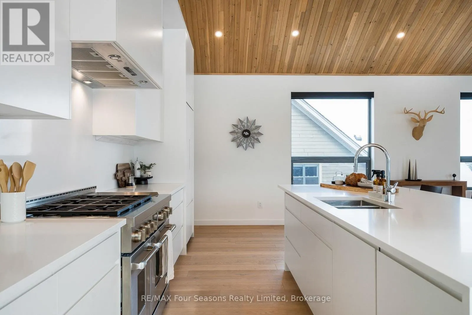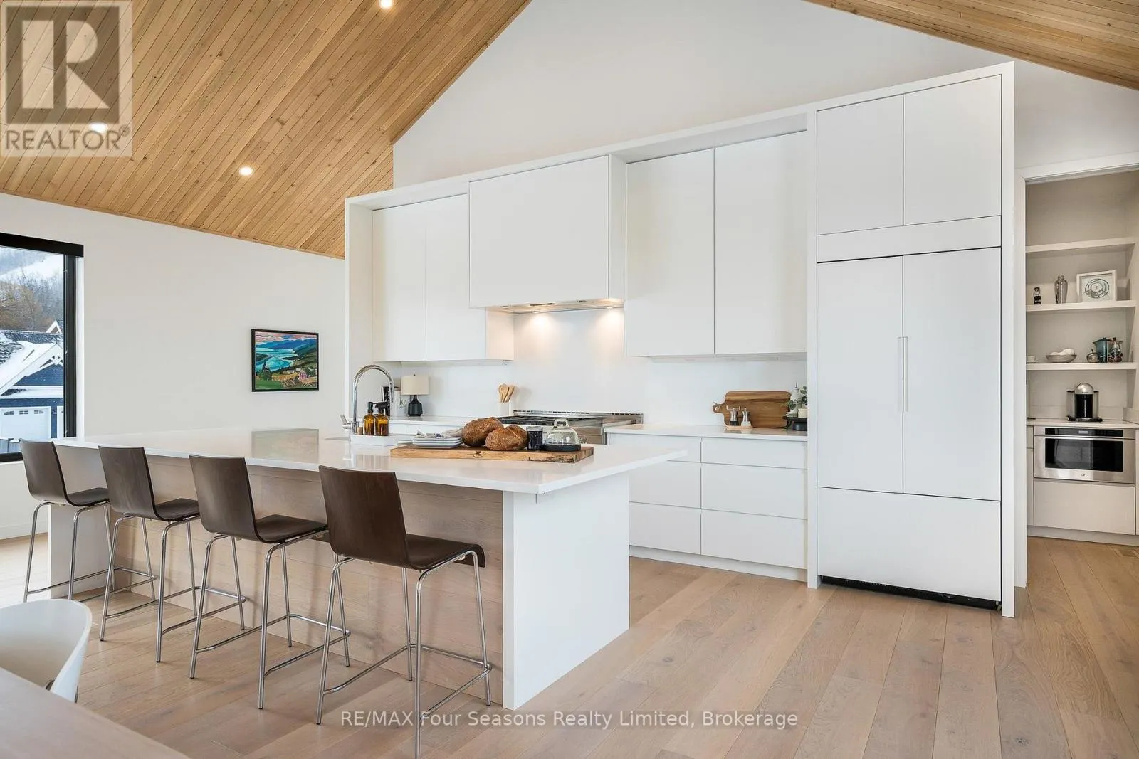 Cross Streets: Sleepy Hollow and Arnot. ** Directions: Arnot Cres to Courchevel. A striking contemporary ski chalet set in the heart of Nipissing Ridge, offering stunning, unobstructed views of the ski hills and Georgian Bay from the great room and multiple decks. Designed and built by Higher Ground Building Corp., this thoughtfully crafted 5-bedroom, 4-bath custom home is made for après-ski gatherings and relaxed mountain living, seamlessly blending modern architecture with classic chalet warmth. The open-concept upper level is designed for entertaining, featuring a showpiece custom kitchen with a dramatic 10-ft quartz island, walk-in pantry ,wet bar, and walk-out to a generous 23' x 23' deck. The great room is anchored by a STÃV wood-burning fireplace and soaring cathedral ceilings clad in vertical Ontario white cedar. Two walk-outs lead to a covered deck and hot tub-perfect for soaking in the hill views by day and the glow of the slopes by night. The main-floor primary suite offers wall-to-wall closet space and a spa-inspired 5-piece ensuite, alongside main-floor laundry and two additional bedrooms, all with heated floors for year-round comfort. The fully finished lower level features polished, radiant in-floor heated concrete throughout, a spacious family and media room ideal for post-ski movie nights, and two additional bedrooms-perfect for family and guests. Located just minutes from Craigleith and Alpine Ski Clubs, Northwinds Beach, Blue Mountain Village, dining, and shopping, this is a rare opportunity to enjoy a true four-season chalet lifestyle in one of the area's most sought-after neighborhoods. (id:27476)