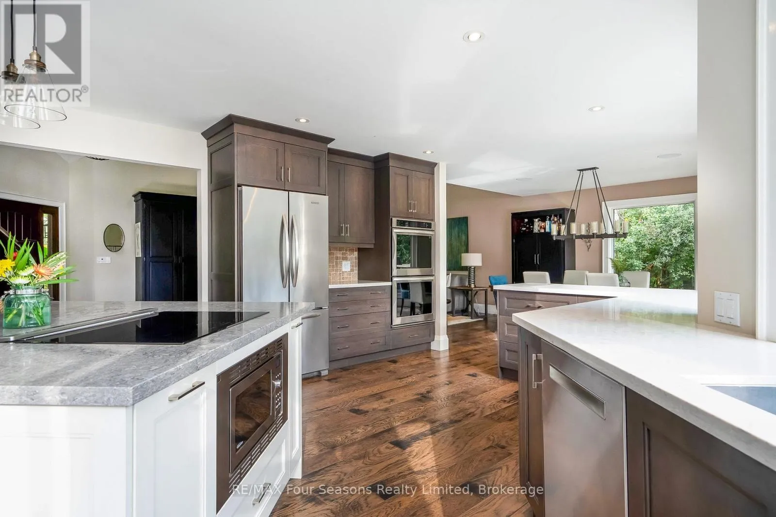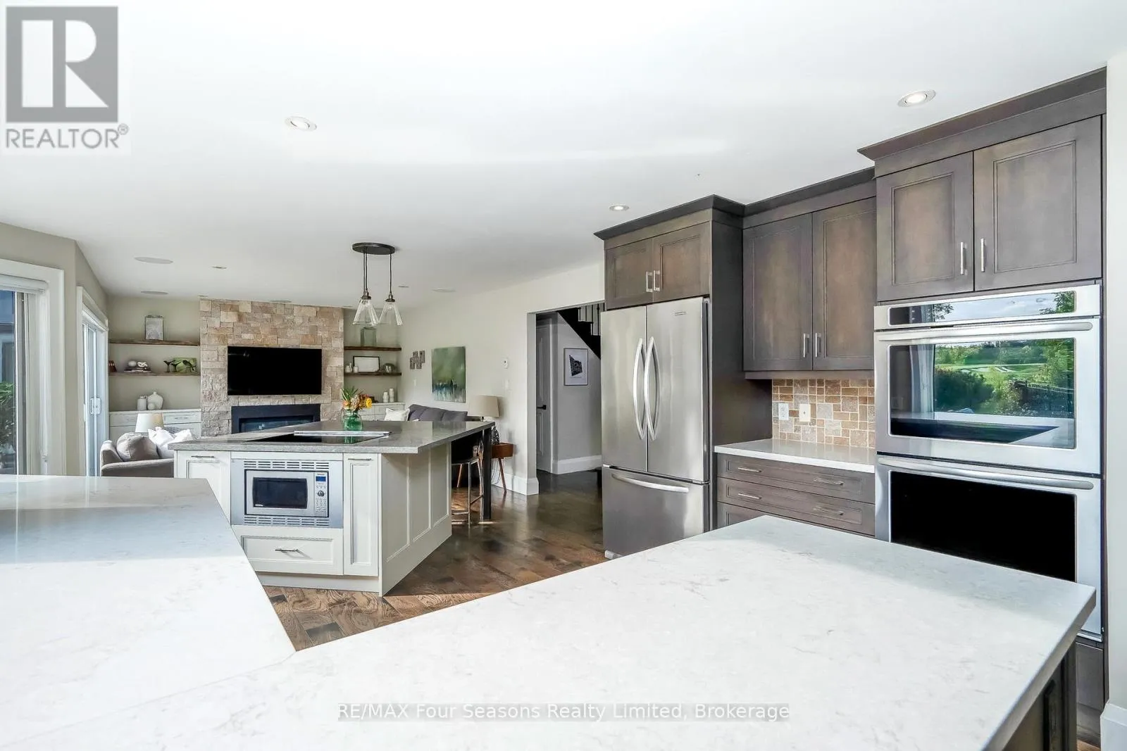 Cross Streets: Grey Road 40 and Indian Circle. ** Directions: Highway 26 to Grey Road 40 to Indian Circle. Nestled at the end of a quiet cul-de-sac and set on nearly an acre (0.969), this exceptional 4-bedroom, 3-bathroom residence offers the perfect blend of privacy, luxury, and lifestyle. Backing directly onto the 14th hole of the prestigious Georgian Bay Golf Club, the property is surrounded by mature landscaping and serene natural beauty. Inside, sunlight pours through expansive windows, highlighting tranquil views of the gardens, pool, and fairways. The thoughtfully designed kitchen features Caesarstone counters, induction cooktop, walk-in pantry, and warm hickory floors, flowing seamlessly into inviting living spaces anchored by two gas fireplaces. A built-in Sonos sound system ensures your favorite music follows you throughout the home. The main floor includes a versatile bedroom with walkout access to the deck ideal as a guest suite or convenient primary. Upstairs, two spacious bedrooms accompany the luxurious primary suite, complete with spa-inspired ensuite, walk-in closet, and a private deck overlooking lush greenery perfect for morning coffee or evening relaxation. The newly renovated lower level expands the living space with fresh finishes, vinyl plank flooring, and a cozy fireplace. With direct walkout access to the backyard, its the ultimate après-ski lounge or retreat after a day on the course. Outdoors, the home shines as a private oasis designed for relaxation and entertaining. Pebble Tec in-ground pool, hot tub, expansive deck, and fully fenced yard provide both comfort and peace of mind. Blending sophistication, comfort, and the best of Georgian Bay living, this one-of-a-kind retreat is a rare offering not to be missed. (id:27476)