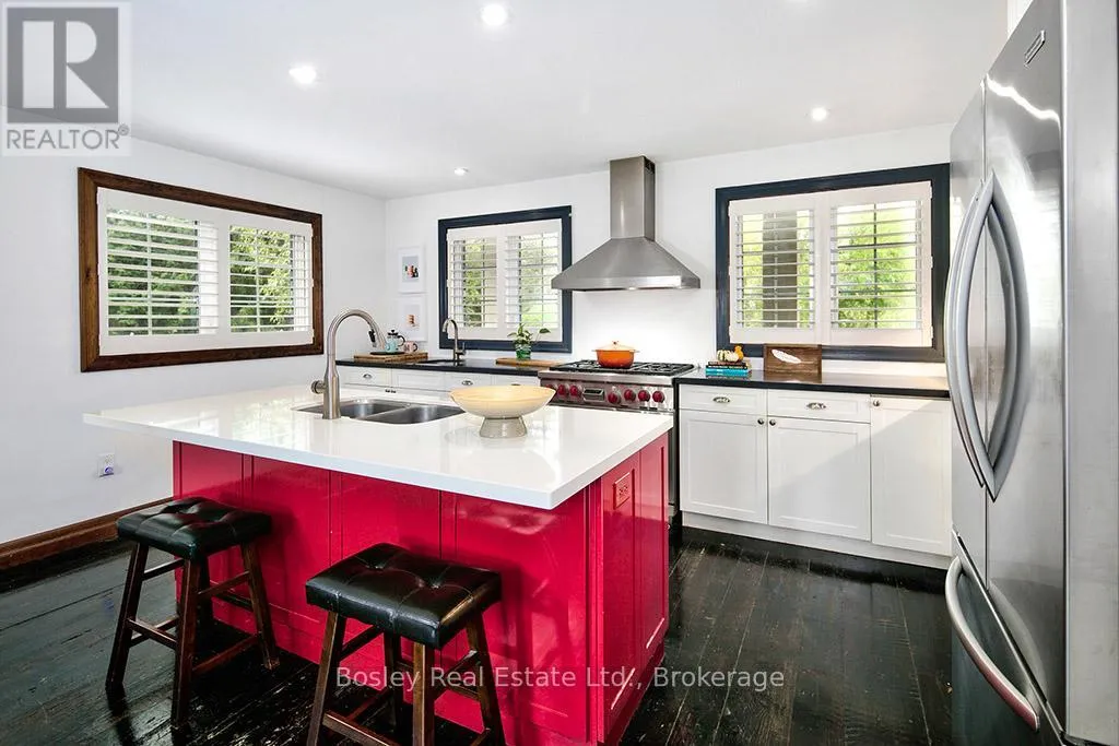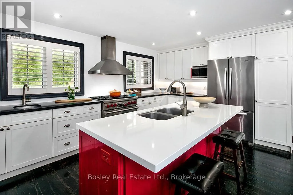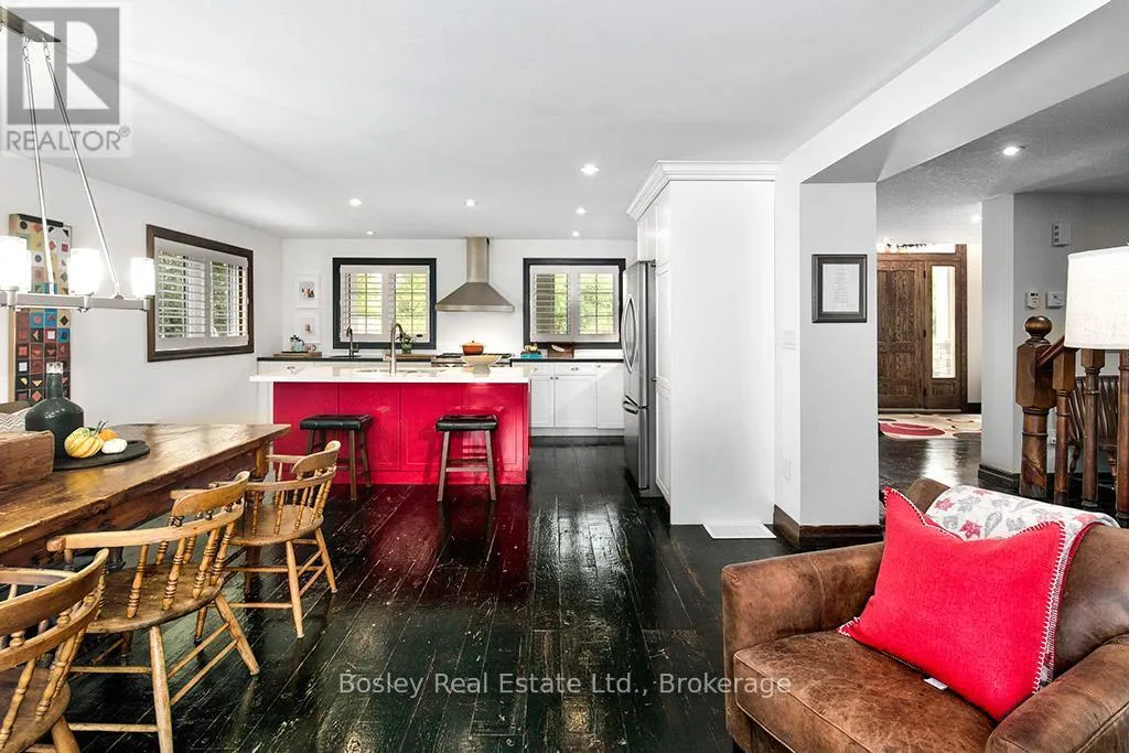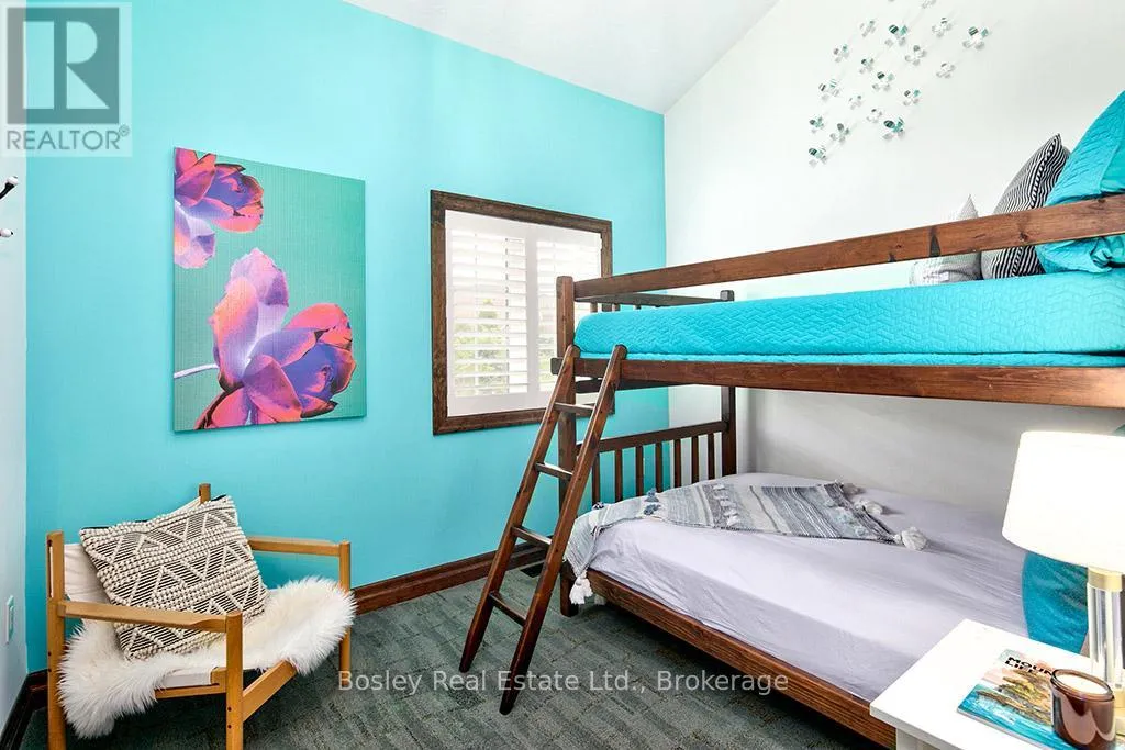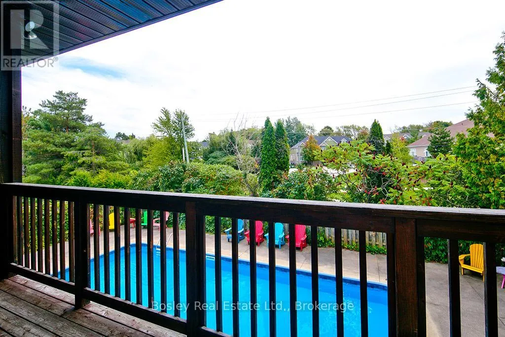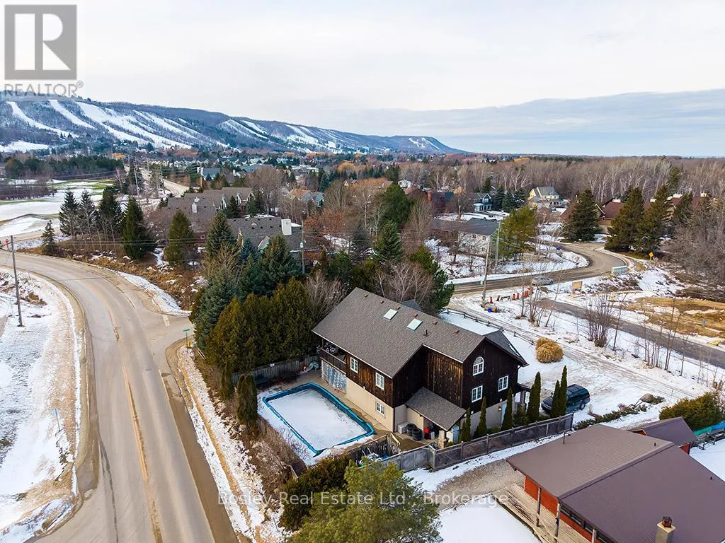 Monterra Rd To Ridgeview Located on a private lane, this architecturally designed chalet offers refined living within walking distance to Blue Mountain Resort and Monterra Golf. Situated on a 1/4 acre lot, this property features a private inground pool, spa amenities including a sauna, wet room, and steam shower, with no additional fees. The spacious foyer leads to a gourmet kitchen with quartz countertops and an oversized island. The main level features a primary bedroom with a luxury ensuite and walk-in closet. The Great Room boasts vaulted ceilings, a stone gas fireplace, and a walkout to a covered deck overlooking the 27' x 40' pool. The side yard provides space for outdoor activities, while the upper level offers 5 additional bedrooms, a 5-piece bathroom, and a sauna. Close to hiking, skiing, and the amenities of Blue Mountain Village, and just minutes from Collingwood, this property offers year-round enjoyment. ** This is a linked property.** (id:27476)