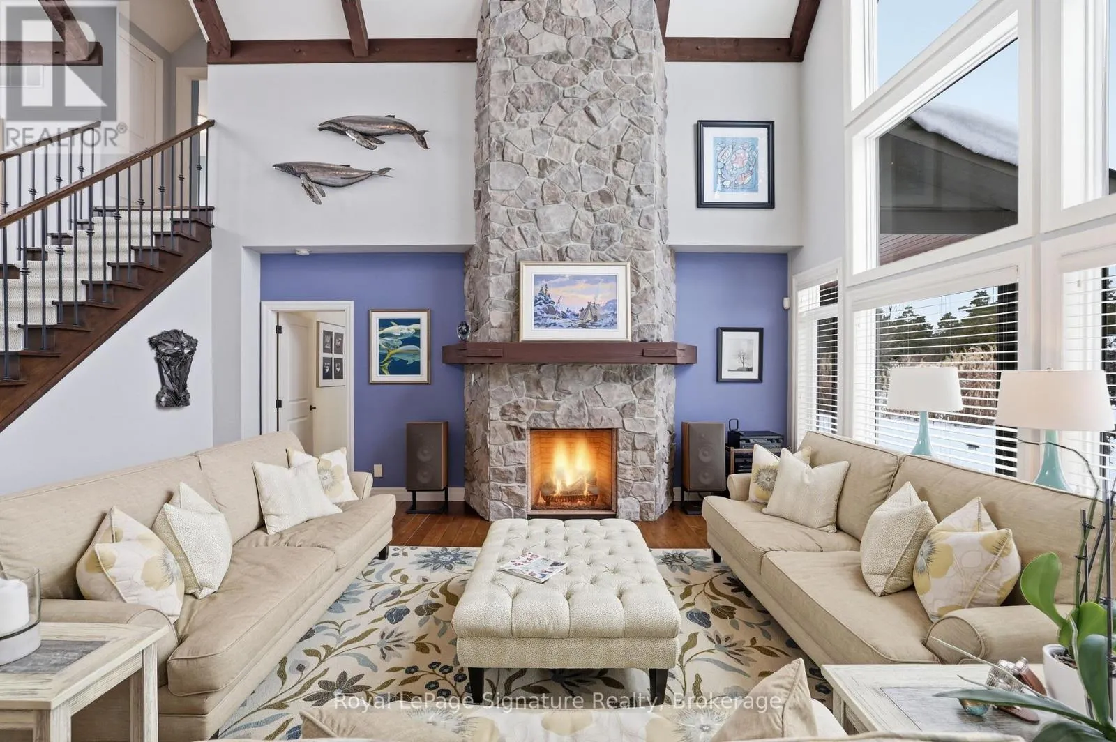 Cross Streets: Peel Street N. ** Directions: Hwy 26 West to Peel Street N to High Bluff Lane. Welcome to 176 High Bluff Lane in the sought-after Trailwoods community of Thornbury, a beautifully crafted custom home offering exceptional main-floor living just moments from the water, trails and vibrant downtown. Designed with comfort and elegance in mind, the main level showcases vaulted ceilings, a stunning stone fireplace and an abundance of natural light. The spacious kitchen is the heart of the home, featuring a large island, walk-in pantry and seamless flow to the dining and living areas, perfect for entertaining. A dedicated main floor office, convenient laundry/mudroom and a serene primary suite with walk-in closet and luxurious 5-piece ensuite complete this level. Upstairs, two generous bedrooms each offer their own private ensuites ideal for family or guests. The finished lower level provides additional living space with in-floor heating, perfect for recreation, media and fitness. Built as the Trailwoods model home, this property has been meticulously maintained and thoughtfully upgraded. Highlights include a 7KW Generac generator, 200 AMP service with whole-home surge protection, dual sump pumps with generator backup, a 5-ton Carrier A/C (2020), Rinnai Combi Boiler (2020), Life Breath HRV, water softener, Honeywell True Steam humidifier, and 24/7 monitored alarm system.The insulated garage features LED lighting, heater and existing gas line. Exterior features include stamped concrete porches, Hardy Board siding, refreshed wood beams (2025), a 100 sq. ft. garden shed, extended landscaping with full irrigation, and a recently sealed driveway. An exceptional offering in West Thornbury (id:27476)