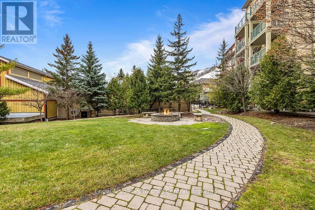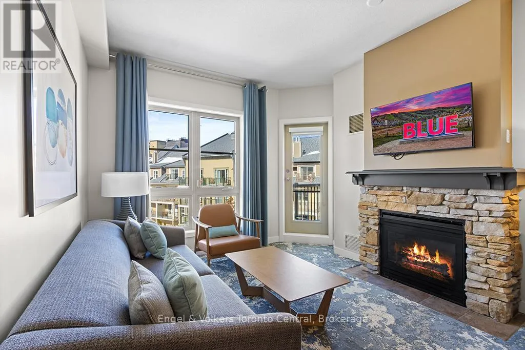 Cross Streets: Grey 19 and Jozo Weider. ** Directions: Grey Rd 19 to Jozo Weider Blvd. VIEW...VIEW...AND MORE VIEW! This perfectly situated top-floor one-bedroom, one bathroom (ensuite) resort condominium with 9 ft. ceilings has a direct view of the mountain and swimming pool. Equipped with a full kitchen and fully furnished, ready for the Blue Mountain Resort rental pool program. This suite has been FULLY RENOVATED including kitchens and bathrooms and paid in full in 2025. If you'd like significant rental revenue to help cover the cost of ownership, this condo was made for you. The building's amenities include a full-size swimming pool for summer use, a year-round outdoor hot-tub, fitness room, two elevators, two levels of heated underground parking all located in the heart of The Village at Blue Mountain, just steps from the Silver Bullet chairlift. 2% one-time Village Association entry fee applies and ongoing fees of $1.08 per square foot a year HST may be applicable but not necessary with an hst# call listing agent for more details. (id:27476)