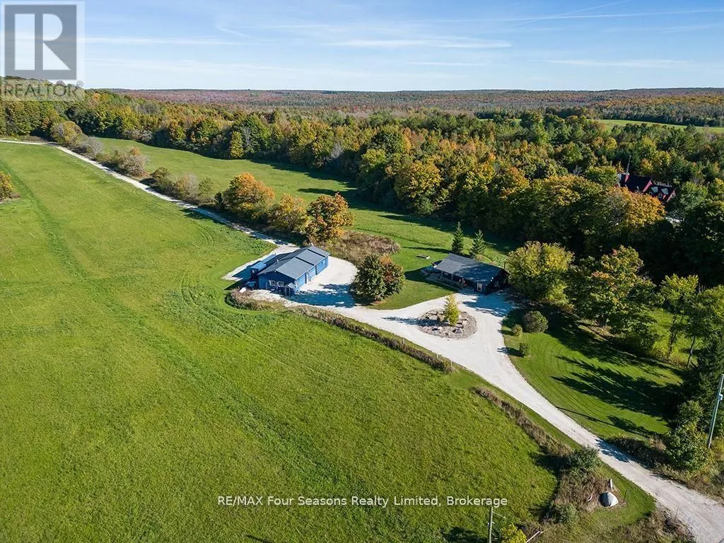 Cross Streets: GREY RD 2 and GREY ROAD 19. ** Directions: GREY RD 2 SOUTH OF RAVENNA TO 495529. SPECTACULAR VIEW PROPERTY: Nestled on almost 25 stunning acres, this property offers some of the most expansive and breathtaking views in the area, with sweeping panoramas of Georgian Bay, the Beaver Valley, and the iconic Niagara Escarpment. It's the perfect place to bring your dream home to life, on a blank canvas, with all the infrastructure already in place. The driveway is already created, providing easy access to the building site. Electrical is already installed and connected and there is a buried conduit ready for additional future services. This sprawling lot is full of potential, and previously-approved building plans help to make it easier to turn your vision into reality. From its elevated vantage point, the property delivers uninterrupted scenic beauty, with direct Bruce Trail access as it winds through the top, offering an instant connection to nature. Outdoor enthusiasts will find endless adventures, with skiing, hiking, and biking just steps away. While your new home takes shape, the recently totally renovated 2-bedroom, 1-bathroom bungalow offers a comfortable living space. Updated in 2018, the bungalow features a charming wood-burning fireplace, alongside modern upgrades to the furnace, electrical, and plumbing systems. A large heated and winterized barn adds to the property's appeal, providing ample room for equipment, recreational toys, or a workshop. This property is a rare find, offering both tranquility and endless outdoor opportunities, making it the ultimate setting for your future home. (id:27476)