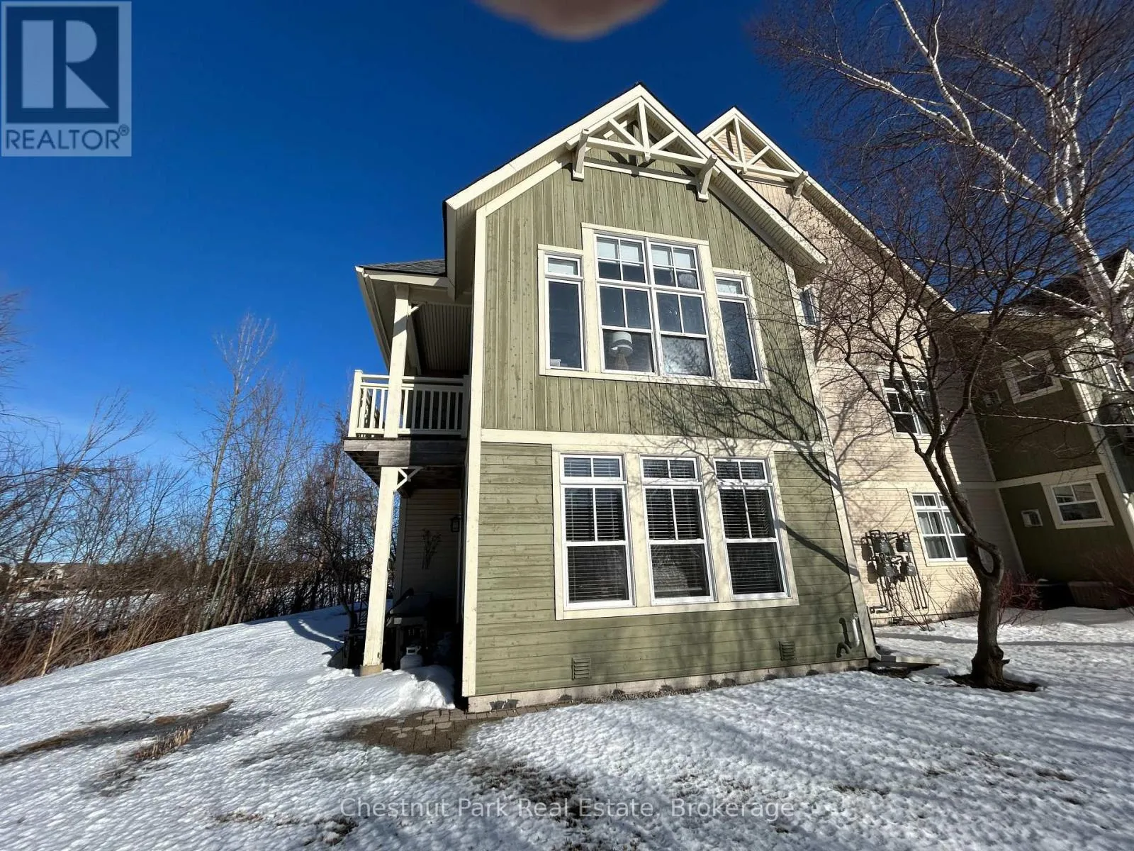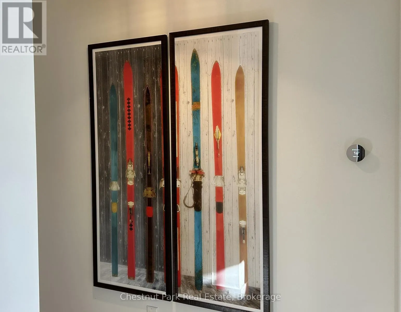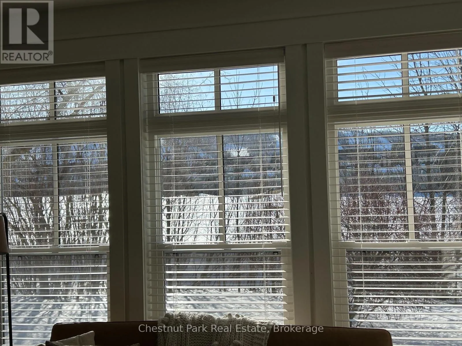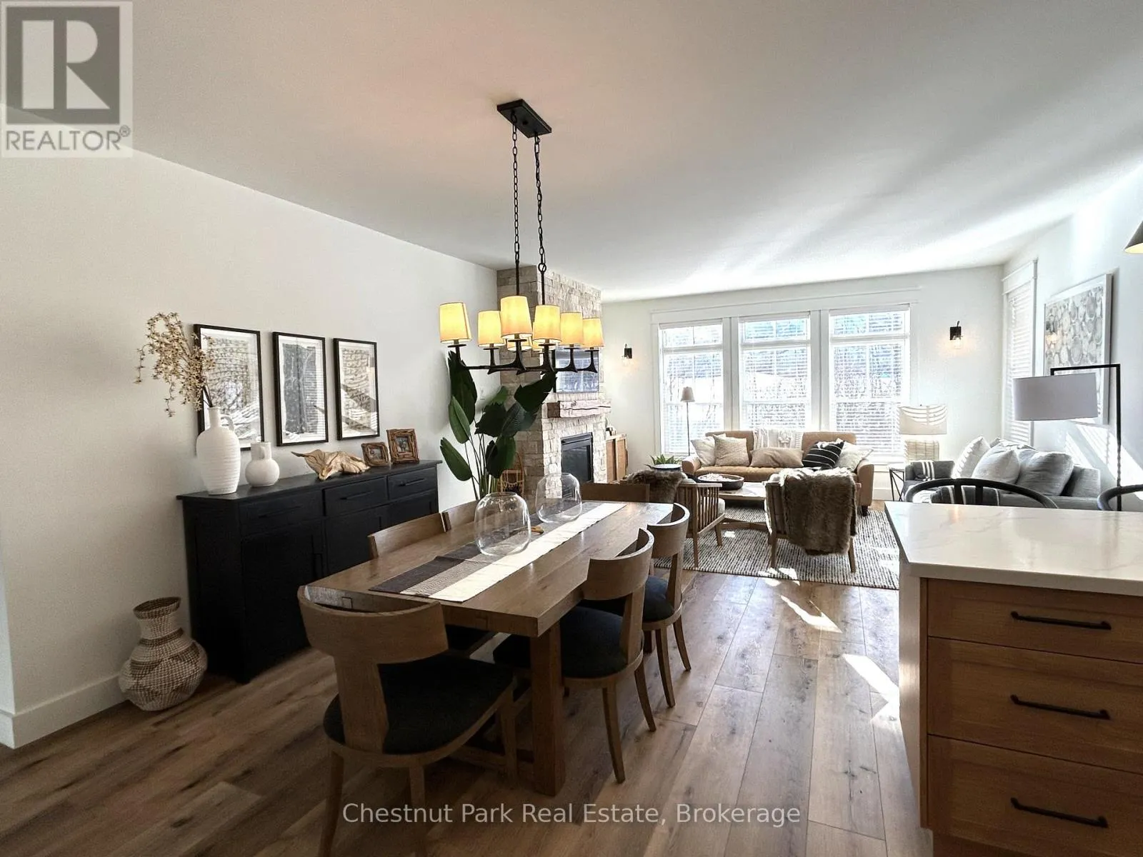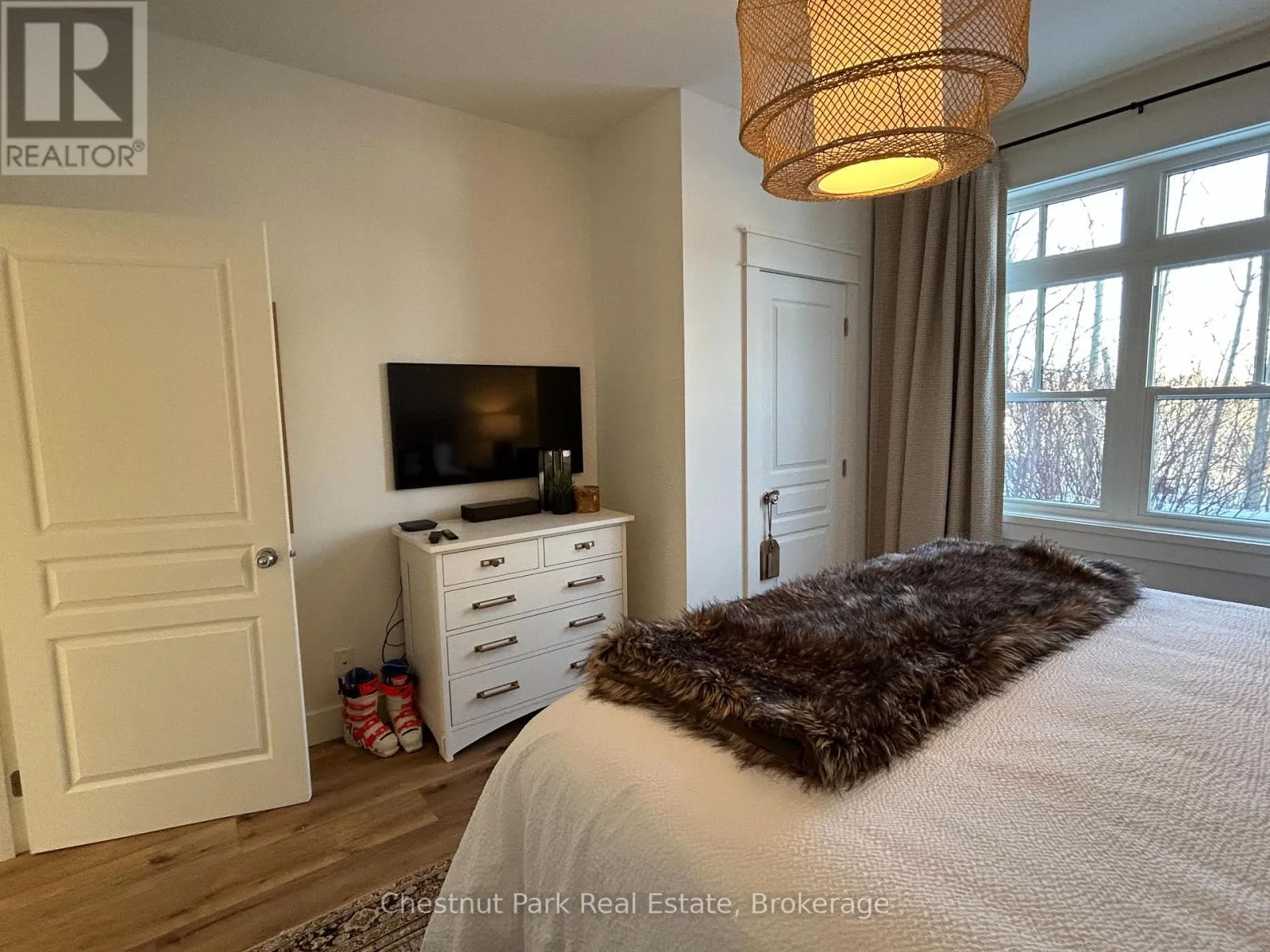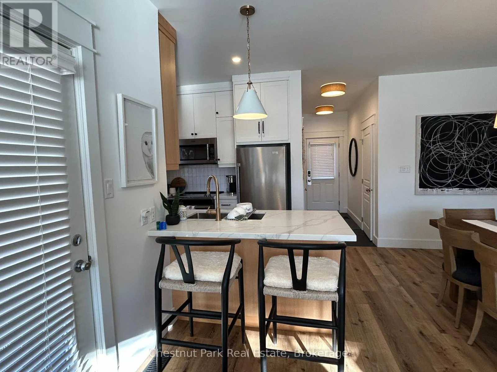 Cross Streets: Jozo Weider and Fairway Court. ** Directions: Grey Rd 19 to Jozo Weider Blvd. to Fairway Court. Welcome to Unit 135 in Rivergrass at Blue, a premium unit in an established development due to its prime location along the Monterra Golf Course. Key Features Include 1) End Unit: Ground floor-no stairs - in one of the most private locations offering direct, year-round views of the ski hills and the golf course. 2) Unmatched Privacy: Located at building's edge, it is surrounded by mature landscaping and trees. Unlike many other units, it does not look out onto a parking lot; its side patio faces nature directly. 3) Exceptional Views: A plethora of windows with direct views of ski hills year-round alongside panoramic golf course vistas. Enjoy the ski hill night lights, seasonal fireworks from the Events Plaza. 4) Professional Interior Design: Exquisite furnishing and decoration, including selections from Restoration Hardware. The open concept is further enhanced by luxury vinyl flooring, upgraded kitchen with high-quality cabinetry, and two fully renovated bathrooms. Both bedrooms are equipped with king-size beds, ample closet space, plus pull out in living room providing accommodation for up to 6 and catering to high-end comfort for owners and guests. 5) Investment Potential: While currently maintained as a personally cared-for, non-rented property, Rivergrass allows for Short Term Accommodation (STA), providing significant revenue potential for investors. 6) Year-Round Recreation: The development includes a seasonal outdoor swimming pool and a year-round hot tub with scenic views of the escarpment and 18th hole of Monterra Golf. 7) Convenience & Access: Complimentary shuttle service available to transport residents and guests to the Village or to the Blue Mountain Private Beach. On site is a dedicated ski and bike tuning room for active enthusiasts. Situated just a short walk from the core of Blue Mountain Village, providing easy access to dining, shopping and entertainment. HST may be applicable. 1% BMVA Entry Fee on closing. Annual fees $0.28/sq.ft. (id:27476)