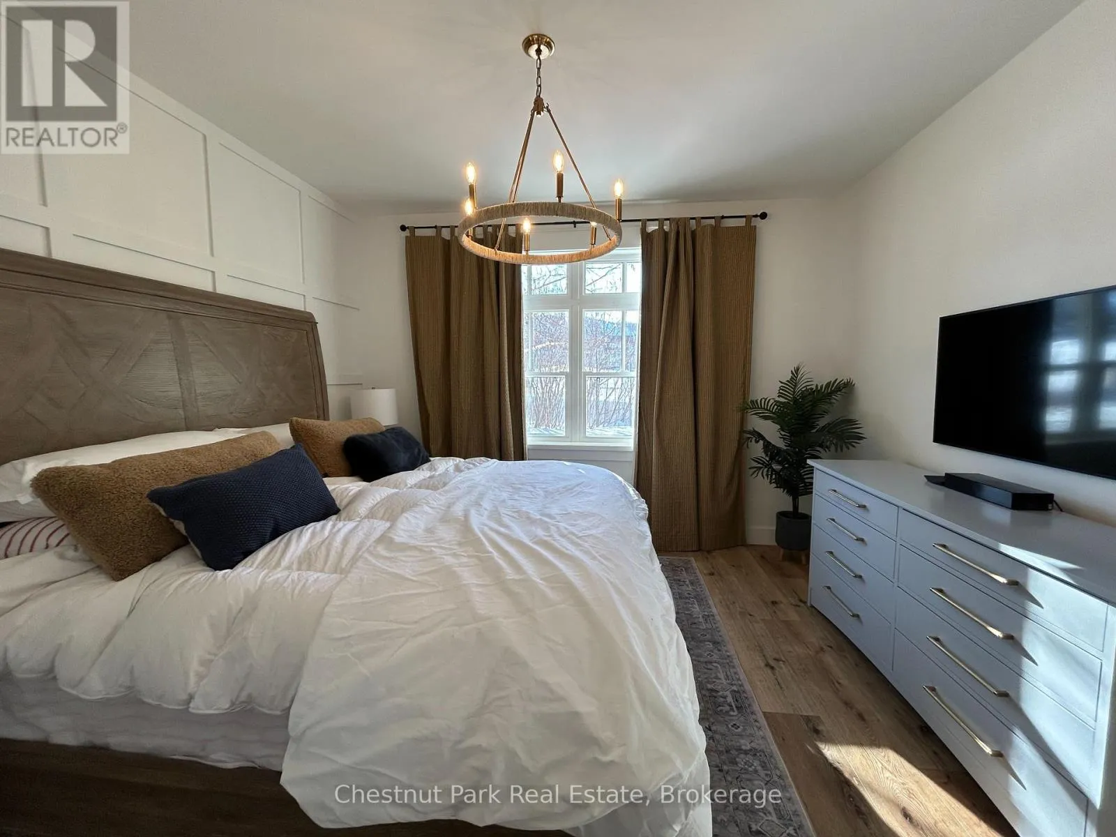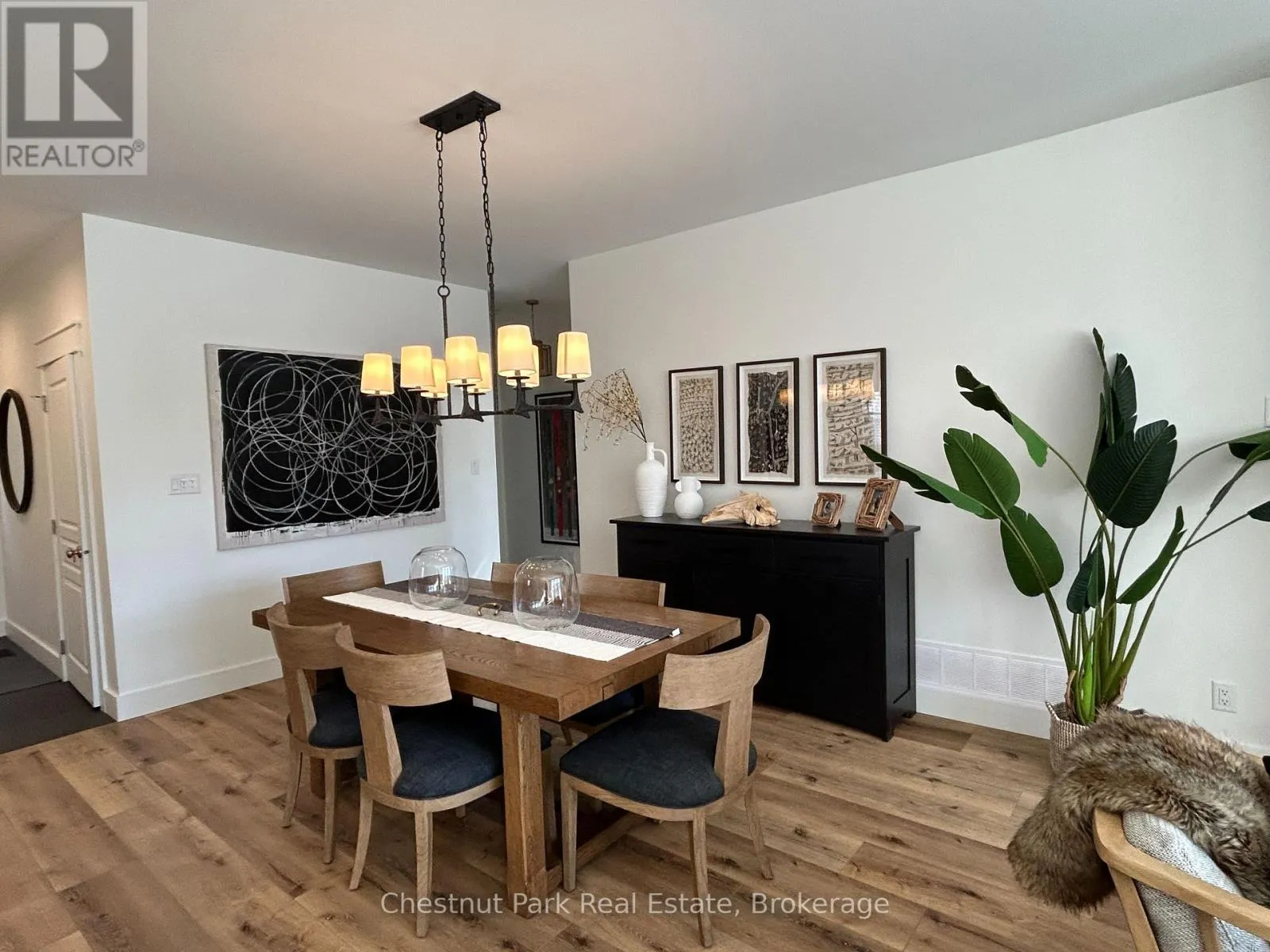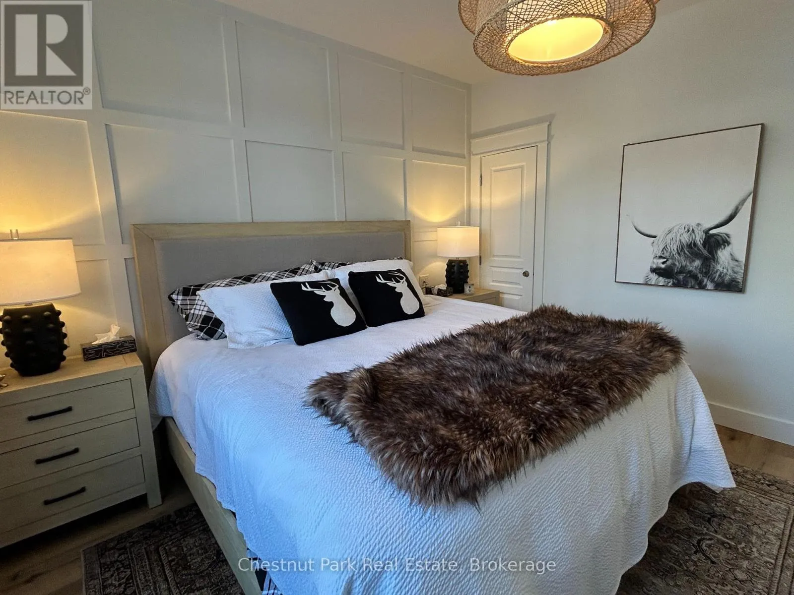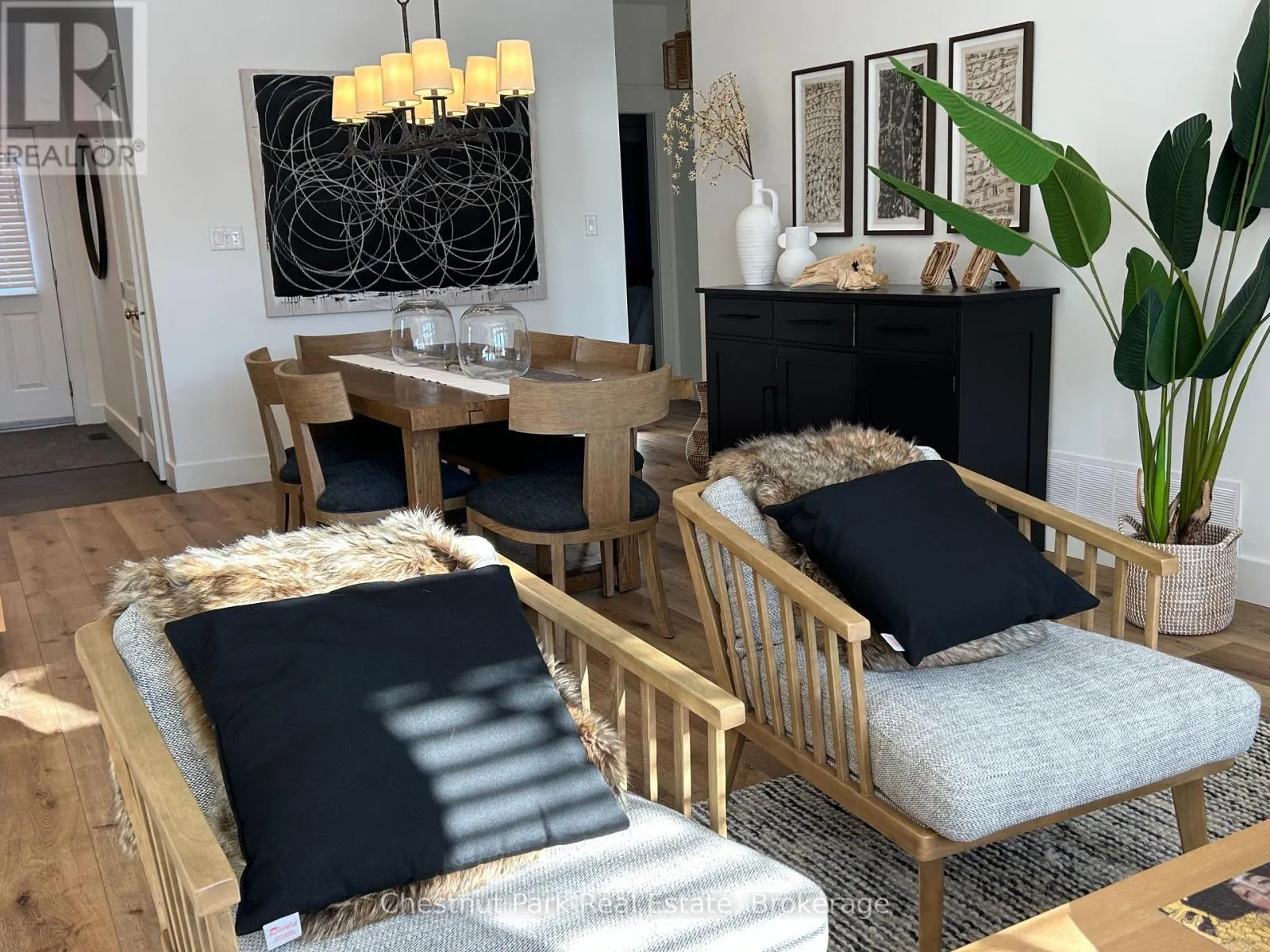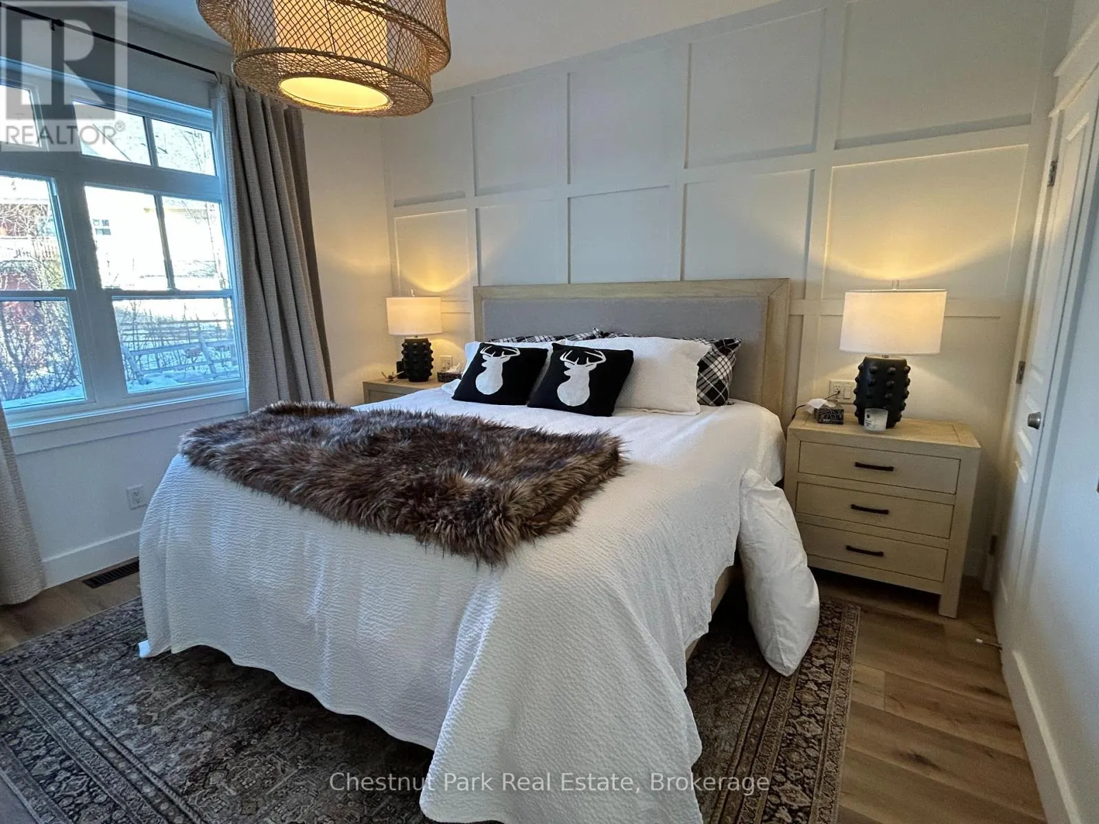 Cross Streets: Jozo Weider and Fairway Court. ** Directions: Grey Rd 19 to Jozo Weider Blvd. to Fairway Court. Welcome to Unit 135 in Rivergrass at Blue, a premium unit in an established development due to its prime location along the Monterra Golf Course. Key Features Include 1) End Unit: Ground floor-no stairs - in one of the most private locations offering direct, year-round views of the ski hills and the golf course. 2) Unmatched Privacy: Located at building's edge, it is surrounded by mature landscaping and trees. Unlike many other units, it does not look out onto a parking lot; its side patio faces nature directly. 3) Exceptional Views: A plethora of windows with direct views of ski hills year-round alongside panoramic golf course vistas. Enjoy the ski hill night lights, seasonal fireworks from the Events Plaza. 4) Professional Interior Design: Exquisite furnishing and decoration, including selections from Restoration Hardware. The open concept is further enhanced by luxury vinyl flooring, upgraded kitchen with high-quality cabinetry, and two fully renovated bathrooms. Both bedrooms are equipped with king-size beds, ample closet space, plus pull out in living room providing accommodation for up to 6 and catering to high-end comfort for owners and guests. 5) Investment Potential: While currently maintained as a personally cared-for, non-rented property, Rivergrass allows for Short Term Accommodation (STA), providing significant revenue potential for investors. 6) Year-Round Recreation: The development includes a seasonal outdoor swimming pool and a year-round hot tub with scenic views of the escarpment and 18th hole of Monterra Golf. 7) Convenience & Access: Complimentary shuttle service available to transport residents and guests to the Village or to the Blue Mountain Private Beach. On site is a dedicated ski and bike tuning room for active enthusiasts. Situated just a short walk from the core of Blue Mountain Village, providing easy access to dining, shopping and entertainment. HST may be applicable. 1% BMVA Entry Fee on closing. Annual fees $0.28/sq.ft. (id:27476)