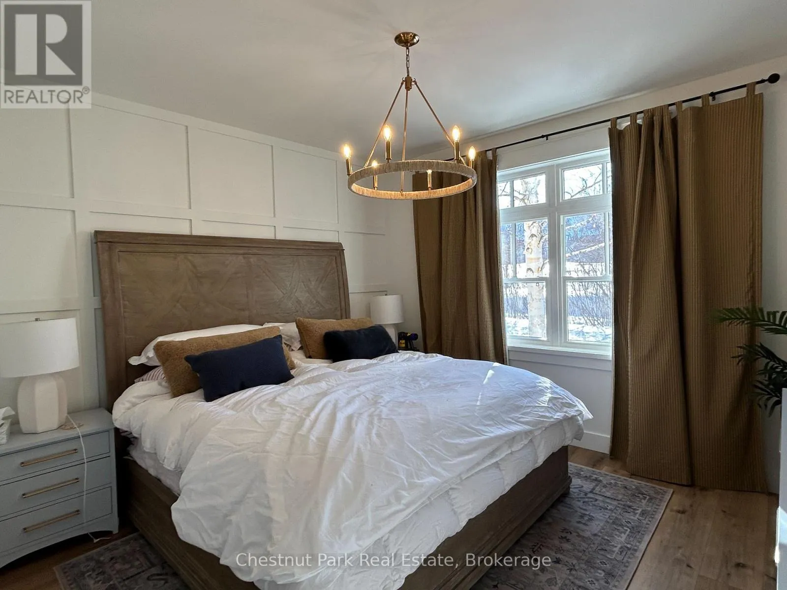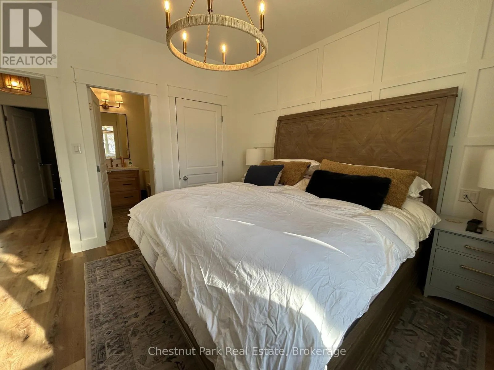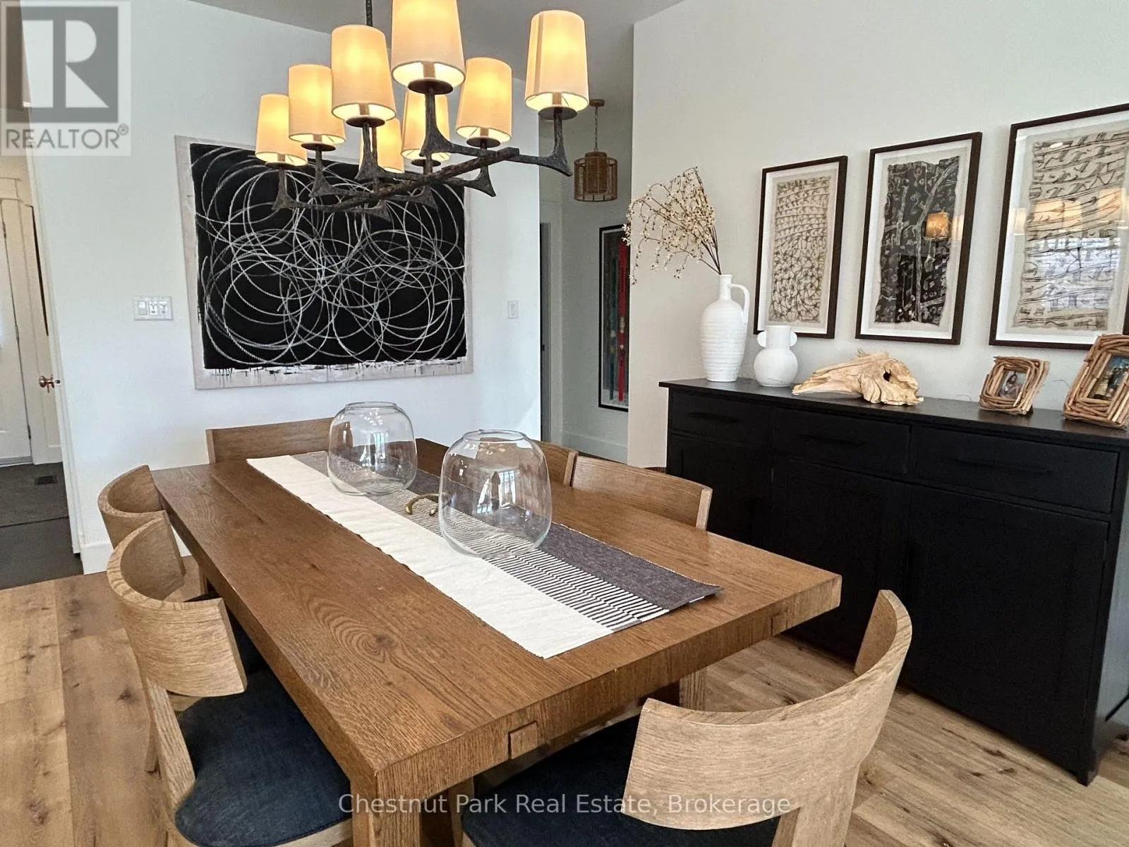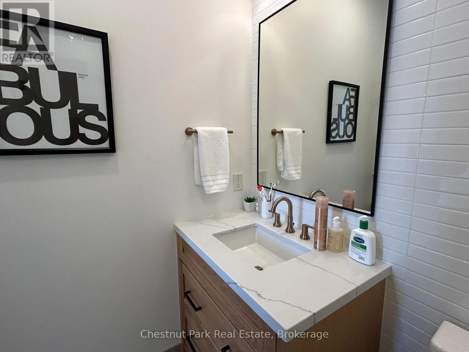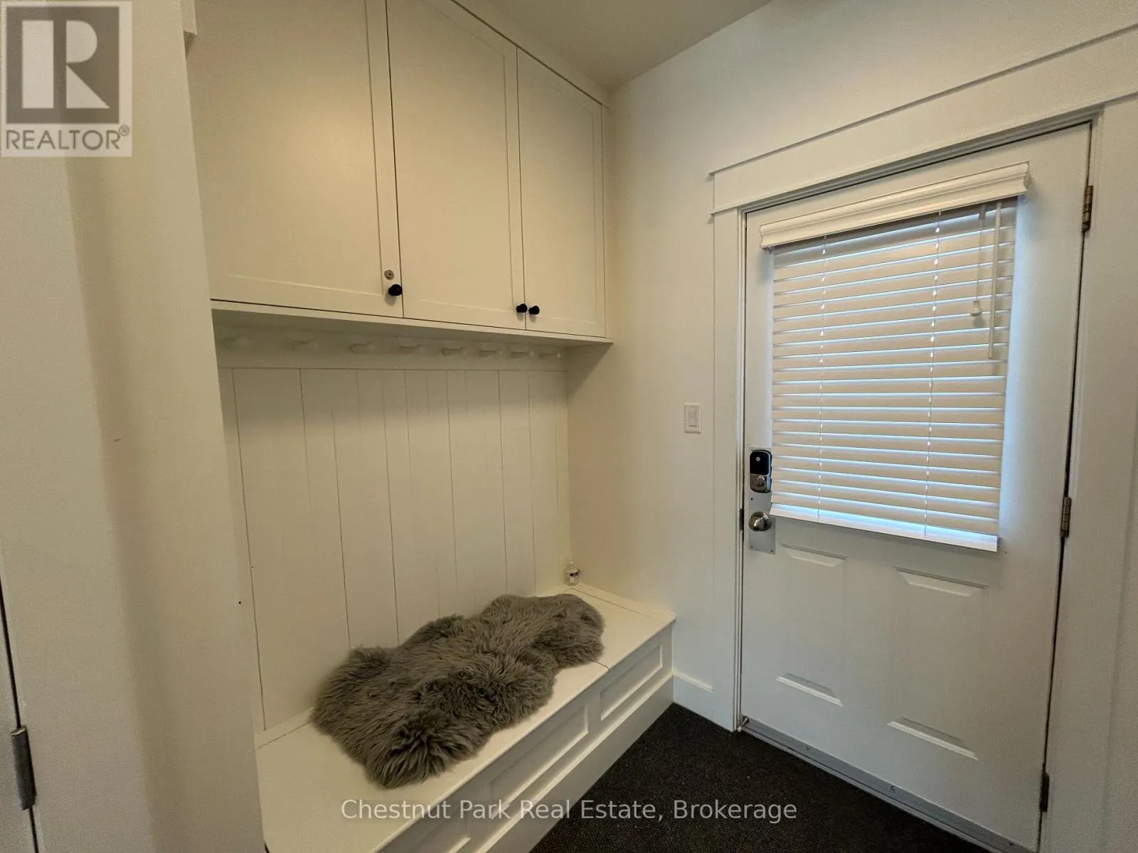 Cross Streets: Jozo Weider and Fairway Court. ** Directions: Grey Rd 19 to Jozo Weider Blvd. to Fairway Court. Welcome to Unit 135 in Rivergrass at Blue, a premium unit in an established development due to its prime location along the Monterra Golf Course. Key Features Include 1) End Unit: Ground floor-no stairs - in one of the most private locations offering direct, year-round views of the ski hills and the golf course. 2) Unmatched Privacy: Located at building's edge, it is surrounded by mature landscaping and trees. Unlike many other units, it does not look out onto a parking lot; its side patio faces nature directly. 3) Exceptional Views: A plethora of windows with direct views of ski hills year-round alongside panoramic golf course vistas. Enjoy the ski hill night lights, seasonal fireworks from the Events Plaza. 4) Professional Interior Design: Exquisite furnishing and decoration, including selections from Restoration Hardware. The open concept is further enhanced by luxury vinyl flooring, upgraded kitchen with high-quality cabinetry, and two fully renovated bathrooms. Both bedrooms are equipped with king-size beds, ample closet space, plus pull out in living room providing accommodation for up to 6 and catering to high-end comfort for owners and guests. 5) Investment Potential: While currently maintained as a personally cared-for, non-rented property, Rivergrass allows for Short Term Accommodation (STA), providing significant revenue potential for investors. 6) Year-Round Recreation: The development includes a seasonal outdoor swimming pool and a year-round hot tub with scenic views of the escarpment and 18th hole of Monterra Golf. 7) Convenience & Access: Complimentary shuttle service available to transport residents and guests to the Village or to the Blue Mountain Private Beach. On site is a dedicated ski and bike tuning room for active enthusiasts. Situated just a short walk from the core of Blue Mountain Village, providing easy access to dining, shopping and entertainment. HST may be applicable. 1% BMVA Entry Fee on closing. Annual fees $0.28/sq.ft. (id:27476)