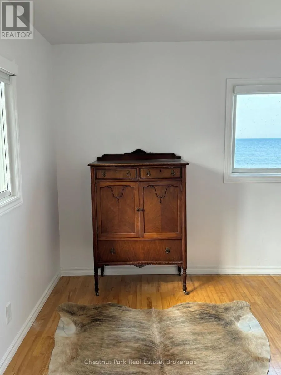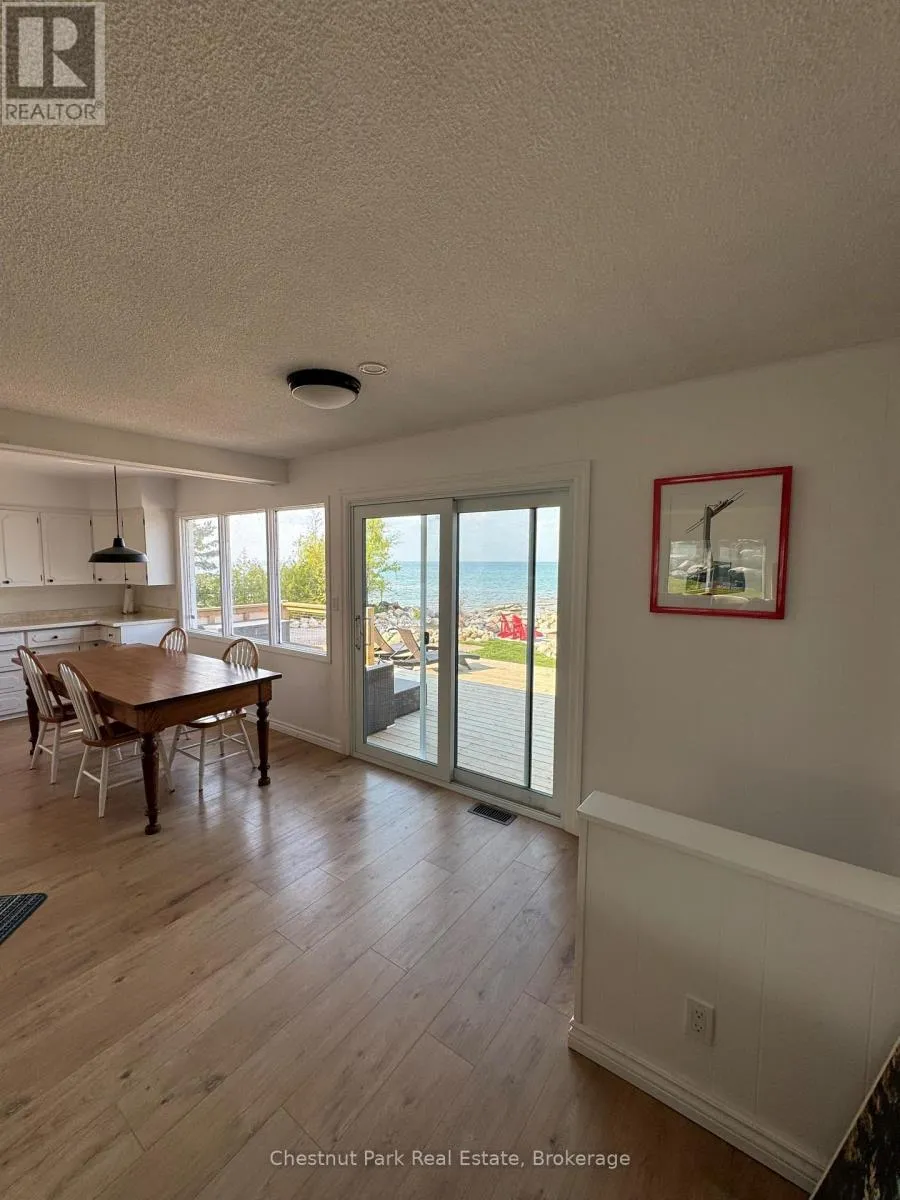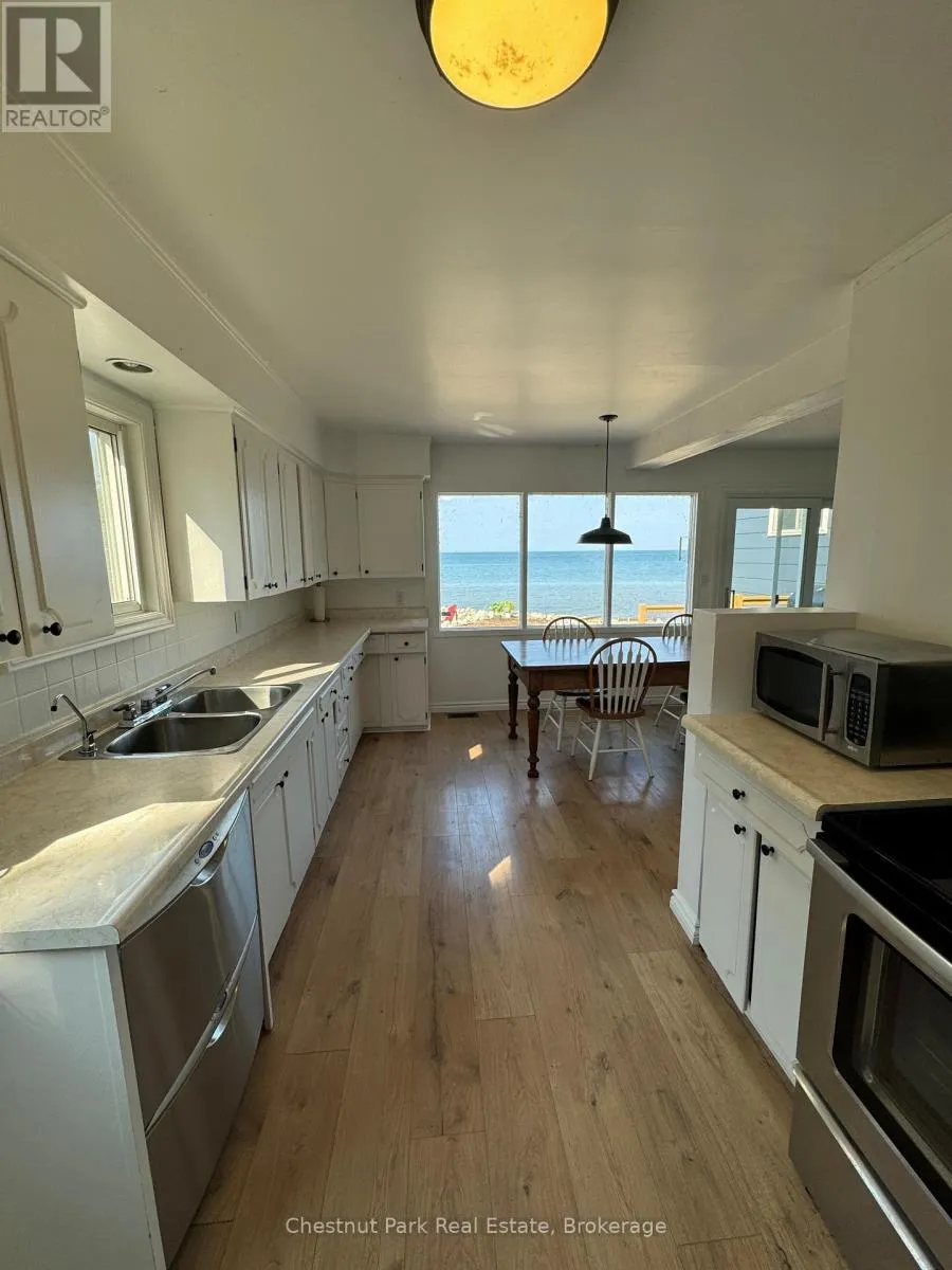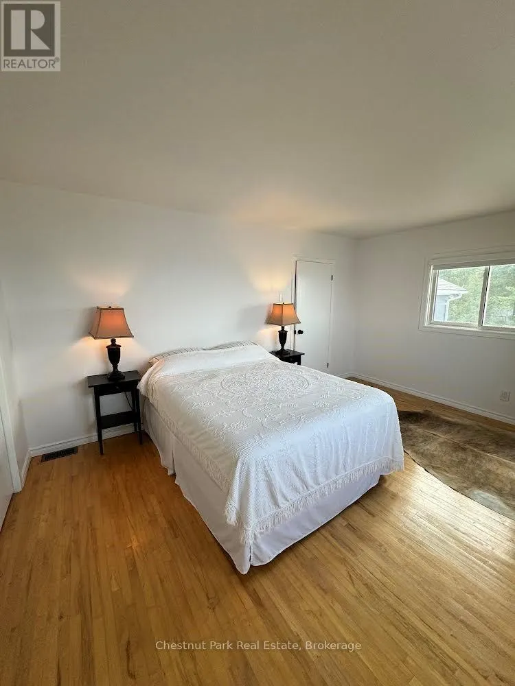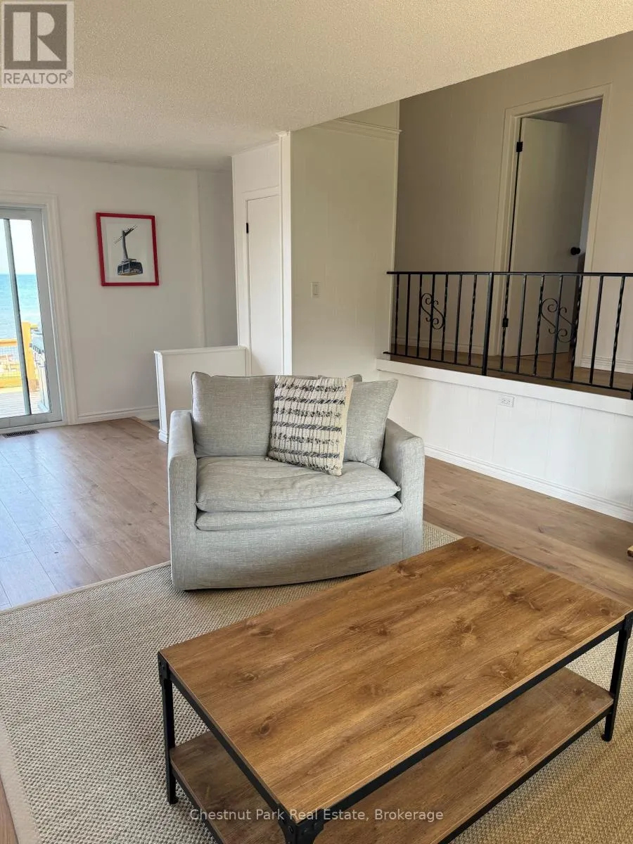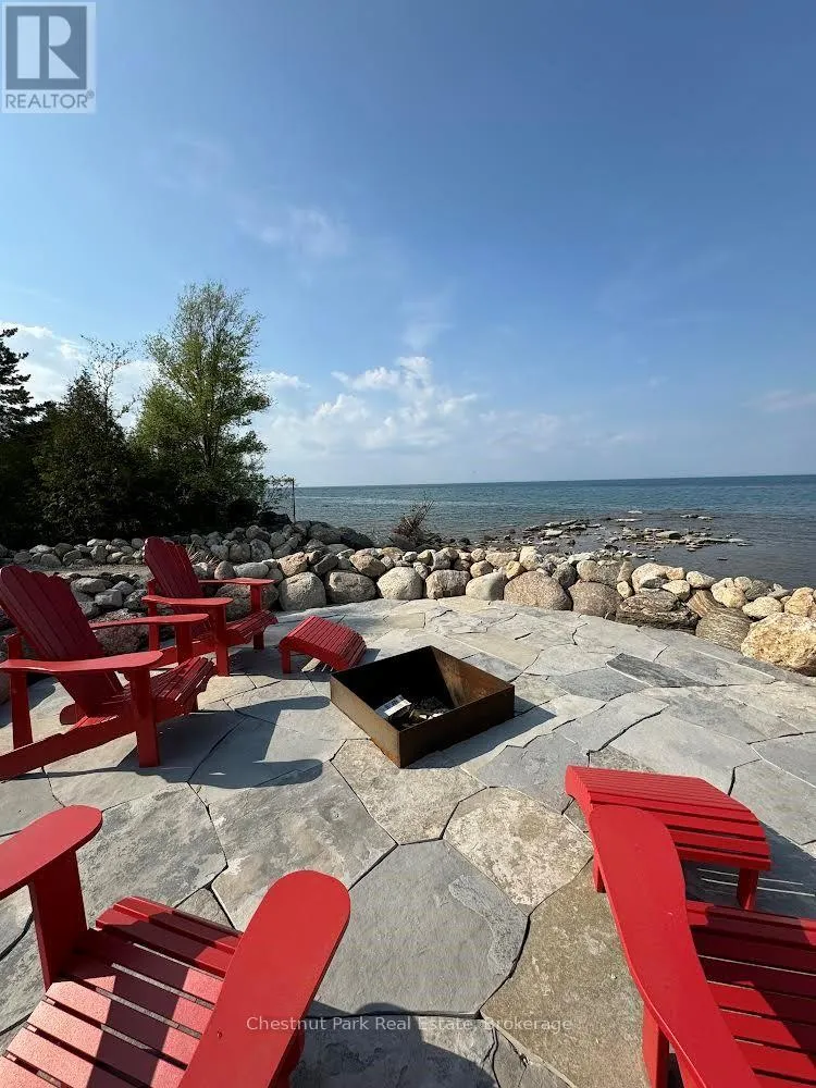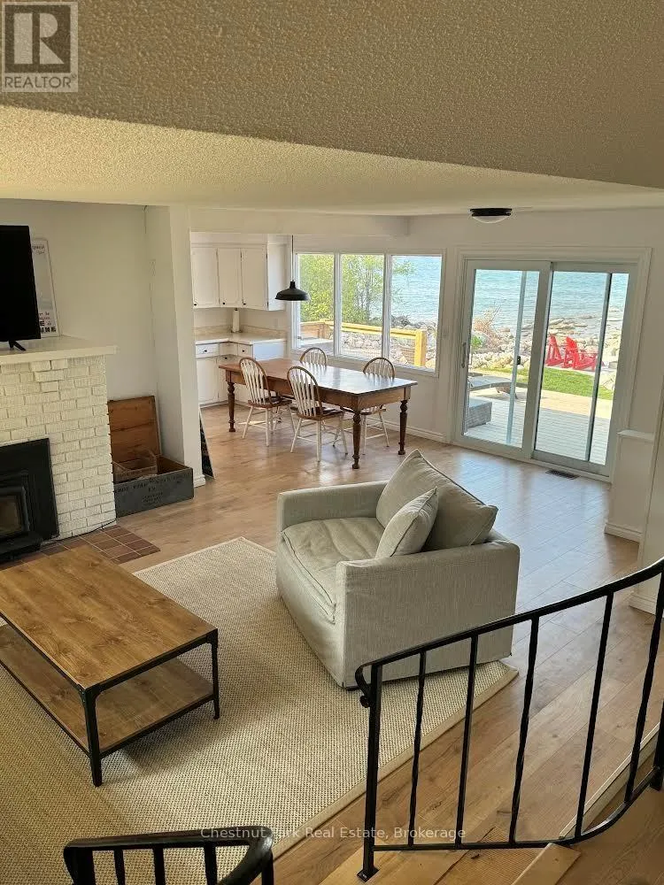 Cross Streets: Hwy 26. ** Directions: Heading west on Hwy 26, property is on the right hand side across from Circle K. ANNUAL lease on the beautiful shores of Georgian Bay! Available May 1'26.This charming Cape Cod inspired gem checks all the boxes! Enjoy 120' of PRIVATE waterfront with boat and beach access, lovely landscaped grounds and gardens, multiple outdoor seating areas, fire pit and an expansive wrap around wooden deck to take in the views! The combined kitchen/dining area is large, open and bright, complete with an oversized picture window and sliding door access to the beautiful deck, yard and waterfront! The adjacent living area offers plenty of seating with a wood burning fireplace and sliding doors to the front deck and large yard. Take a few steps up to the raised second level complete with a large primary bedroom overlooking the water, 2 additional good sized bedrooms (will fit queen sized beds), large linen closet and a 4 piece bath. A BONUS family room on the lower level provides a perfect over flow space with large above grade windows and water views. Parking is plentiful with space for 4 cars in the extra long driveway and one additional space in the detached garage. Please note this property can be leased unfurnished, partially furnished or fully furnished. This four season, waterfront home is conveniently located in Craigleith within minutes to both Collingwood and Thornbury, the area's many ski clubs and the Village at Blue! (id:27476)