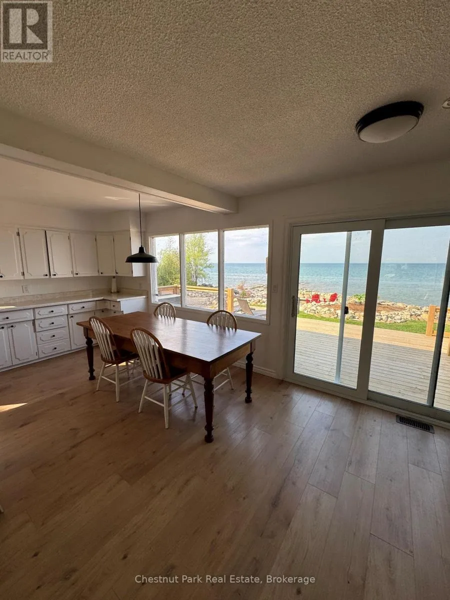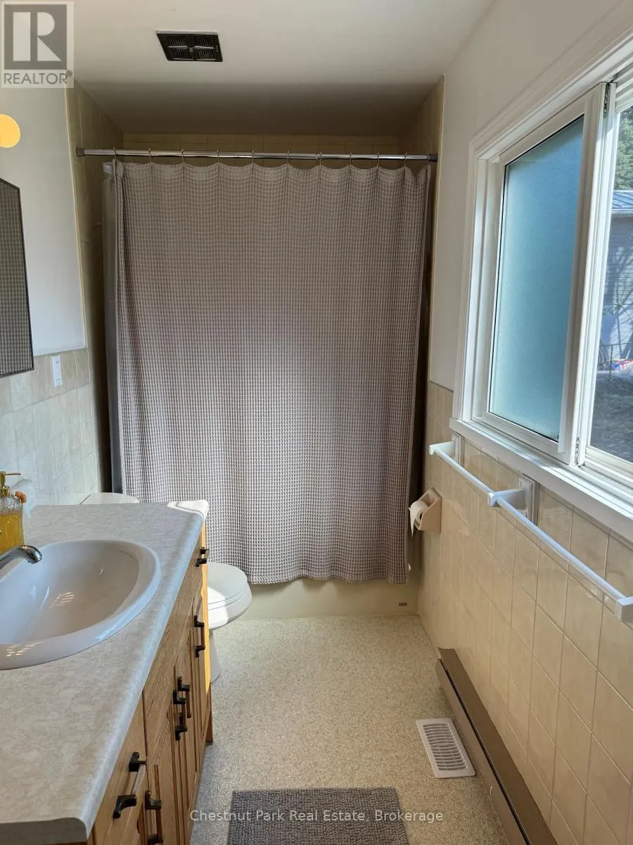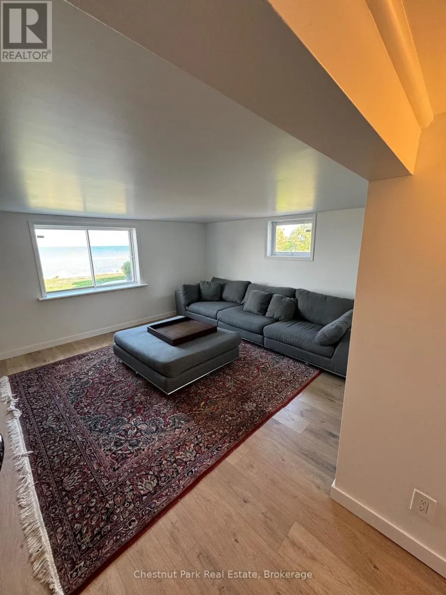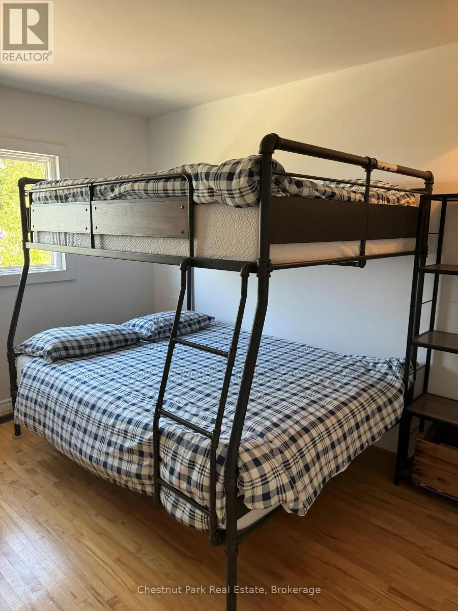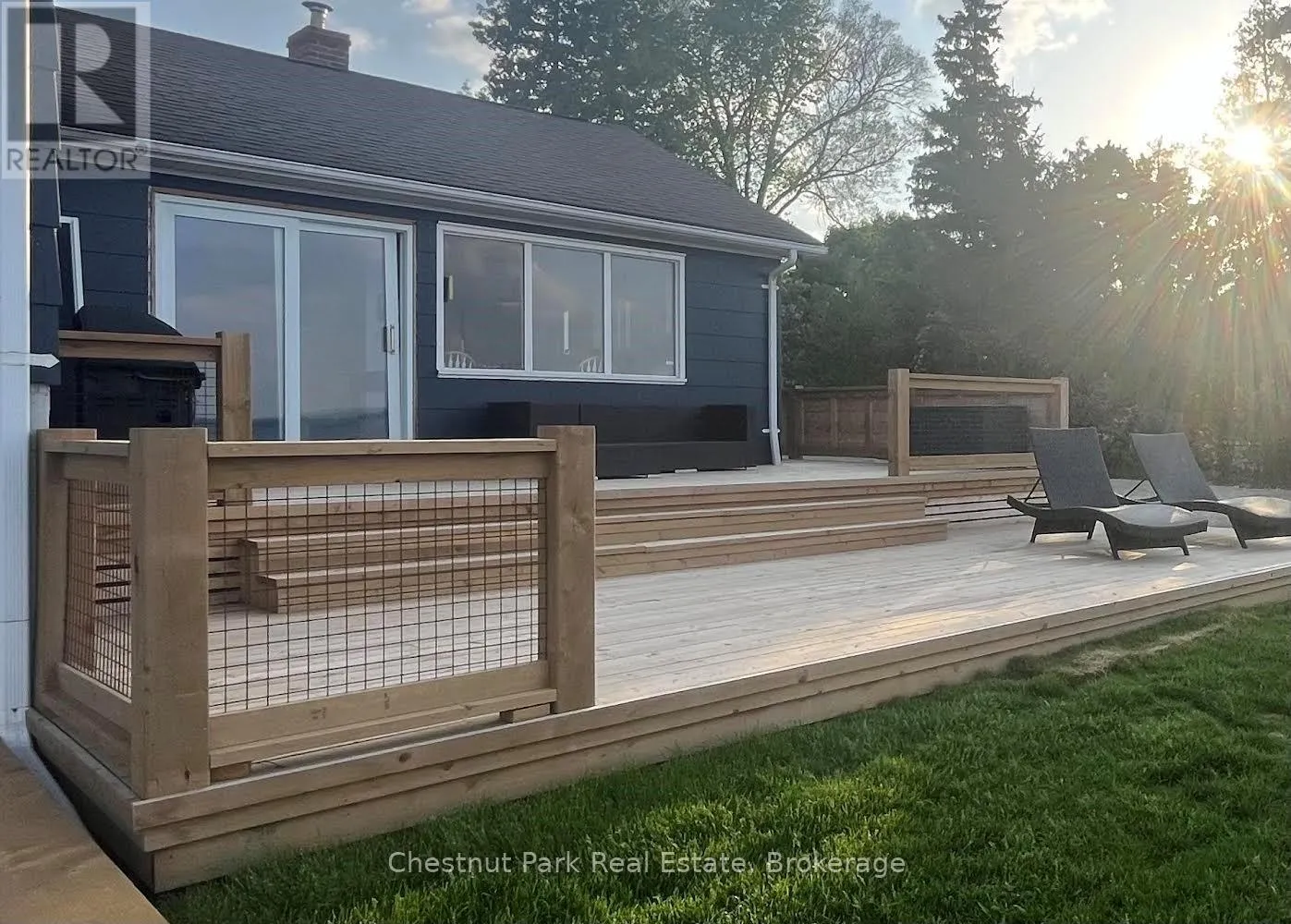 Cross Streets: Hwy 26. ** Directions: Heading west on Hwy 26, property is on the right hand side across from Circle K. ANNUAL lease on the beautiful shores of Georgian Bay! Available May 1'26.This charming Cape Cod inspired gem checks all the boxes! Enjoy 120' of PRIVATE waterfront with boat and beach access, lovely landscaped grounds and gardens, multiple outdoor seating areas, fire pit and an expansive wrap around wooden deck to take in the views! The combined kitchen/dining area is large, open and bright, complete with an oversized picture window and sliding door access to the beautiful deck, yard and waterfront! The adjacent living area offers plenty of seating with a wood burning fireplace and sliding doors to the front deck and large yard. Take a few steps up to the raised second level complete with a large primary bedroom overlooking the water, 2 additional good sized bedrooms (will fit queen sized beds), large linen closet and a 4 piece bath. A BONUS family room on the lower level provides a perfect over flow space with large above grade windows and water views. Parking is plentiful with space for 4 cars in the extra long driveway and one additional space in the detached garage. Please note this property can be leased unfurnished, partially furnished or fully furnished. This four season, waterfront home is conveniently located in Craigleith within minutes to both Collingwood and Thornbury, the area's many ski clubs and the Village at Blue! (id:27476)